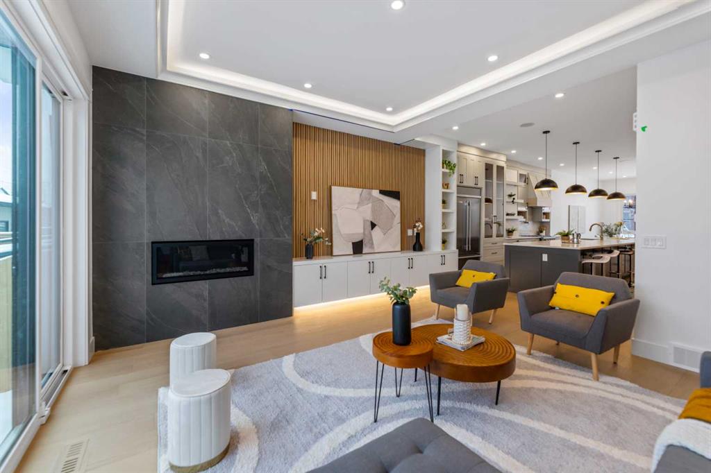 Welcome to 2323 53 Avenue SW — A brand new home with over 3000 sqft of developed space with south facing backyard that brings you luxury, everyday comfort, and convenience. You're welcomed by a bright dining area with a chandelier and a large window for natural light that connects to the main floor featuring a 10-foot ceiling, a well-equipped gourmet kitchen comes with a 15 foot island, quartz countertops, full height cabinetry , and a premium Kitchen Aid appliance package. The open concept connects the kitchen to the living area with a gas fireplace, custom built-ins, and large sliding patio doors that create a perfect space for entertaining. Going through the doors, you are greeted by a large full-size patio and backyard fully fenced and landscaped for your quality family time. Upstairs, the primary bedroom is a luxurious retreat with vaulted ceilings, a walk-in closet, and a luxurious ensuite featuring dual vanities, a freestanding tub, a walk-in shower with a rainfall showerhead, and in-floor heating. Upper floor features a 9-foot ceiling and 8 feet doors, a bonus room, two additional bedrooms, a full bathroom, and a dedicated laundry room with a sink. The fully developed basement includes a rec room with a wet bar, a gym, a full bathroom, and a fourth bedroom ideal for movie nights and hosting guests. Additional features include a speaker system, an AC rough-in, a security rough-in , and a double detached garage. Close to schools, Glenmore Athletic Park, and Tennis Dome. Don't miss this excellent opportunity to own this remarkable home.