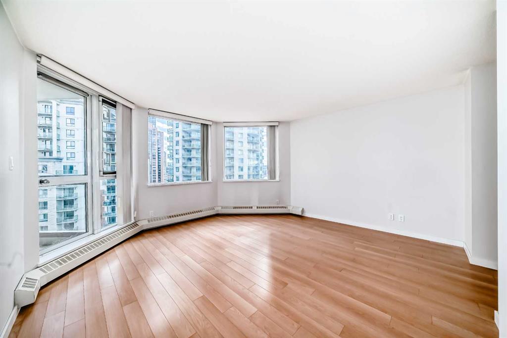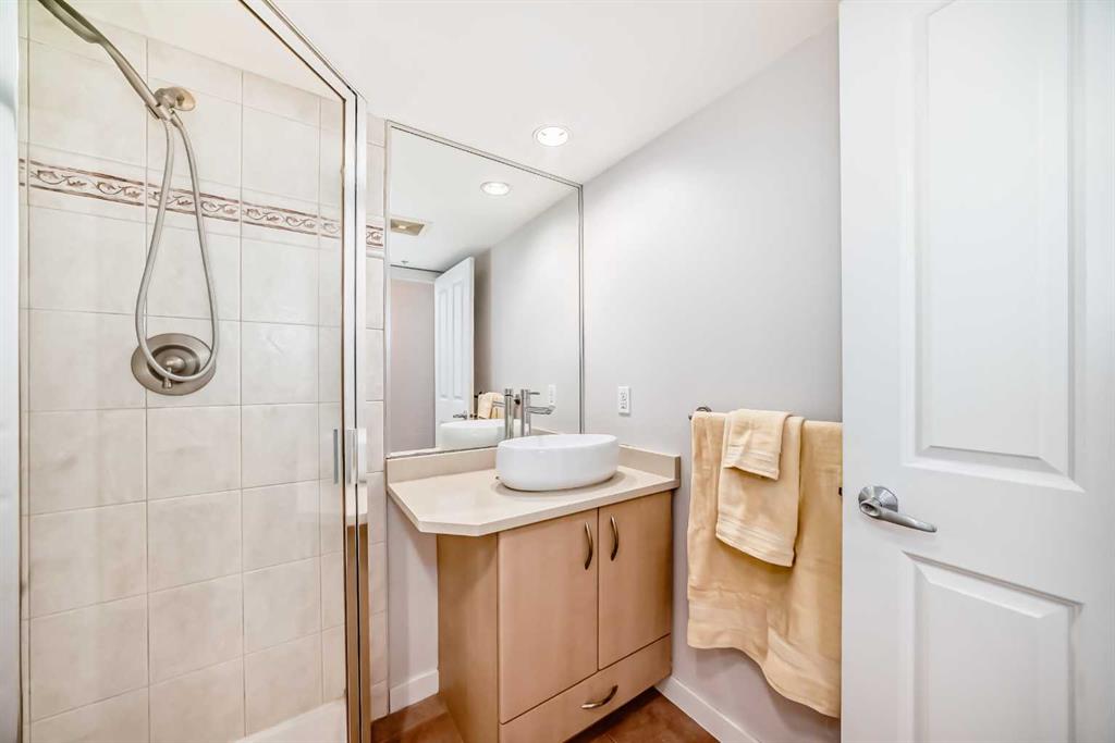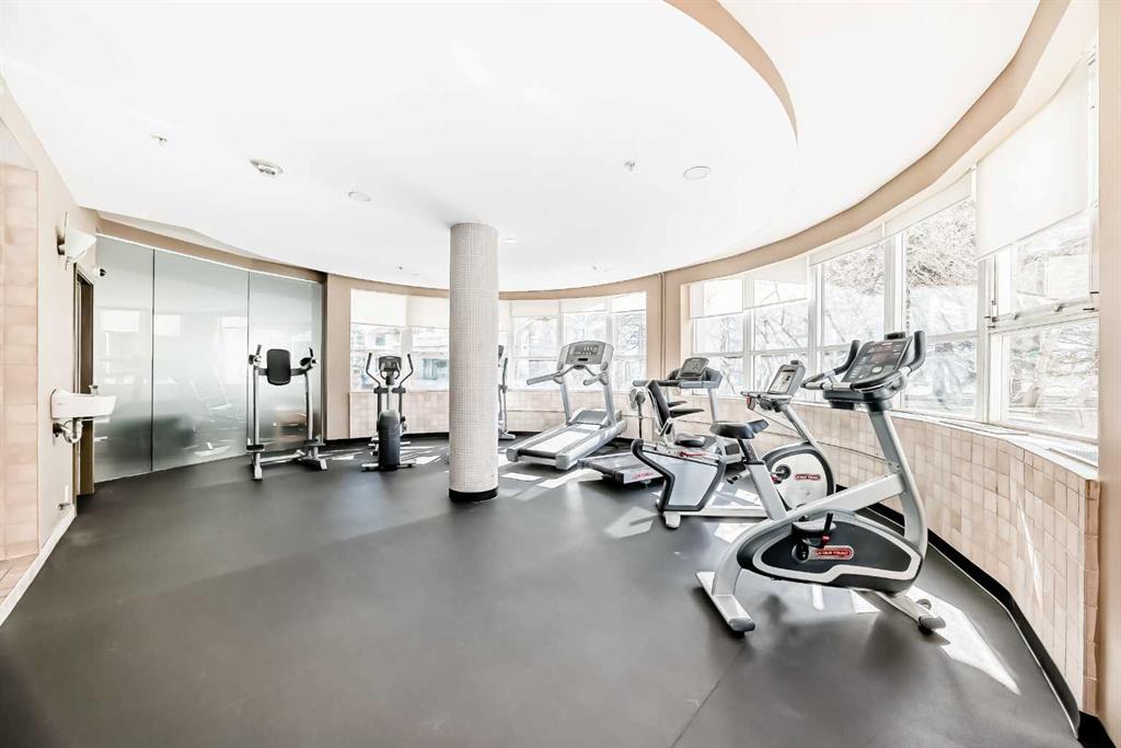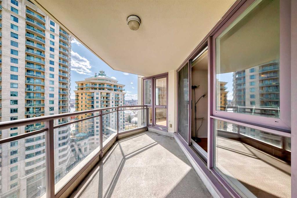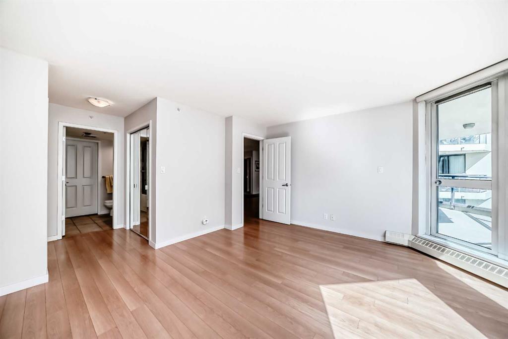 Live the Luxe Urban Dream in Downtown Calgary. Welcome to The Marquis – where sophisticated downtown living meets comfort, convenience, and style. This is the home you’ve been waiting for! Affordable 2-bedroom, 2-bathroom sanctuary nestled along the Bow River in one of Calgary’s most vibrant, sought-after neighborhoods. Step into this moderately updated suite. The welcoming entryway features a two full-size coat closet, opening into a bright and vibrant living space anchored by a stunning marble-tiled gas fireplace – the perfect cozy touch for chilly Calgary nights. Rich maple hardwood floors flow throughout the living area and both bedrooms, complemented by expansive windows that flood the home with natural sunlight and includes a portable room air conditioning for those hot summer days. Love to cook? You’ll fall in love with the chef-inspired kitchen featuring gleaming granite countertops, generous cabinetry boasting under cabinet lighting, ample cupboard space with pull-out pot and pan drawers. Premium Bosch stainless-steel appliances – including a sleek induction cooktop, built- in dishwasher, built-in microwave, and oversized double sink with garburator and upgraded faucet. Whether you’re whipping up dinner for friends or preparing a quiet brunch at home, this kitchen is designed for space. The primary suite is a luxurious retreat, complete with private balcony access, walk-through closets, a 4-piece ensuite, heated tiled floor, granite vanity top and a bonus storage closet for all your essentials. Enjoy the privacy of a smart split-bedroom layout, ideal for roommates, guests, or a home office setup. The second bedroom is perfectly positioned near a stylish 3-piece bathroom, granite vanity top, heated tiled floor and beside a spacious laundry room with extra storage and shelving. Your titled underground parking stall is just steps from convenient bike racks and comes with a separate assigned storage unit. And that’s just the beginning. The Marquis is a solid concrete building (including between suites for peace and quiet), with updated common areas that are both elegant and impeccably maintained. The upscale lobby creates a grand welcome for you and your guests. Amenities include 24 indoor visitor parking stalls, a fully equipped fitness center with change rooms, a tranquil yoga studio, and a stylish party room for entertaining. With a walk score of 95, you’re just steps from the riverfront paths, Prince’s Island Park, charming cafés, unique boutiques, acclaimed restaurants, and only one block to the LRT (in the free fare zone!). The energy of Kensington is just across the bridge, and yes – pets are welcome with Board approval. Downtown elegance. Riverfront tranquility. Urban excitement. It’s all here – and it’s waiting for you!