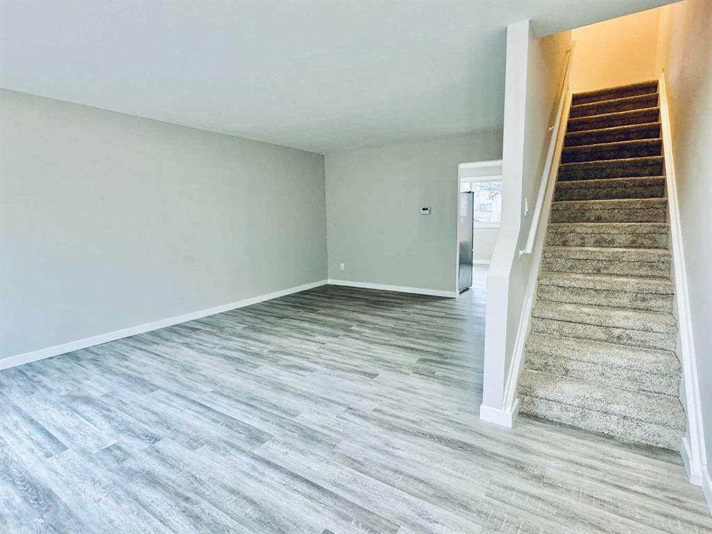 WOW! This Fully Renovated Townhouse backs onto park offers beautiful views and sunny West exposure with plenty of natural light throughout. Great Location: situated near schools, shopping centers and downtown. Recent renovations in March 2025 include a Brand New Kitchen, New luxury vinyl plank flooring throughout main, New Carpet upstairs, New 4-piece Bathroom upstairs, New Interior and Exterior Paints, New Baseboard, and modern lighting throughout. Once you step into this home, you'll find a bright Living Room that flows seamlessly into the kitchen and dining area, perfect for families who like to entertain. Upstairs, the massive master bedroom easily accommodates king-sized furniture, 2 additional good-sized bedrooms with views next to luxurious 4-piece bathroom. The unfinished basement has a laundry area, newer furnace and hot water tank (both replaced in 2017). Step out onto your private patio looking out to the beautifully landscaped greenspace—a serene space to enjoy your morning coffee. This well-managed building has newer windows and 1 assigned parking. Whether you're a first-time buyer or an investor, this unit offers prime location near the Sunridge Mall, Airport and City Centre. Easy Access to Downtown, and major routes like Highway #1 and Deerfoot Trail. Don’t miss this home!