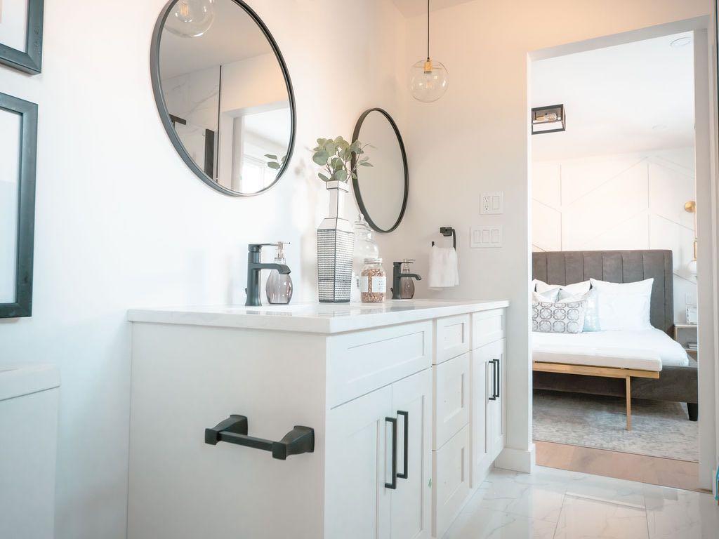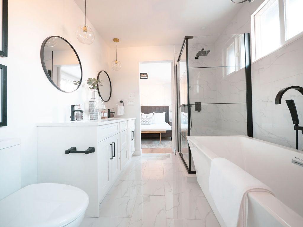 Don't be deceived by the exterior; this home offers surprisingly spacious rooms. The master suite is a true retreat, measuring 14'5"x11'8". It features a luxurious full ensuite, also part of the home's comprehensive renovation, complete with dual sinks, a beautifully tiled glass shower, a separate soaker tub, and a walk-in closet outfitted with custom shelving.