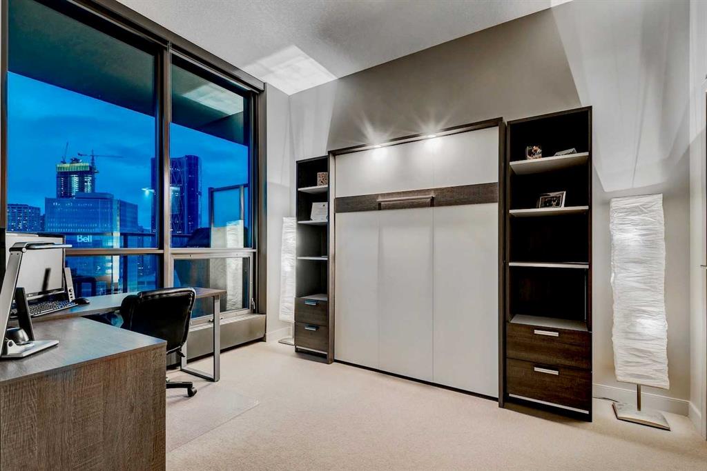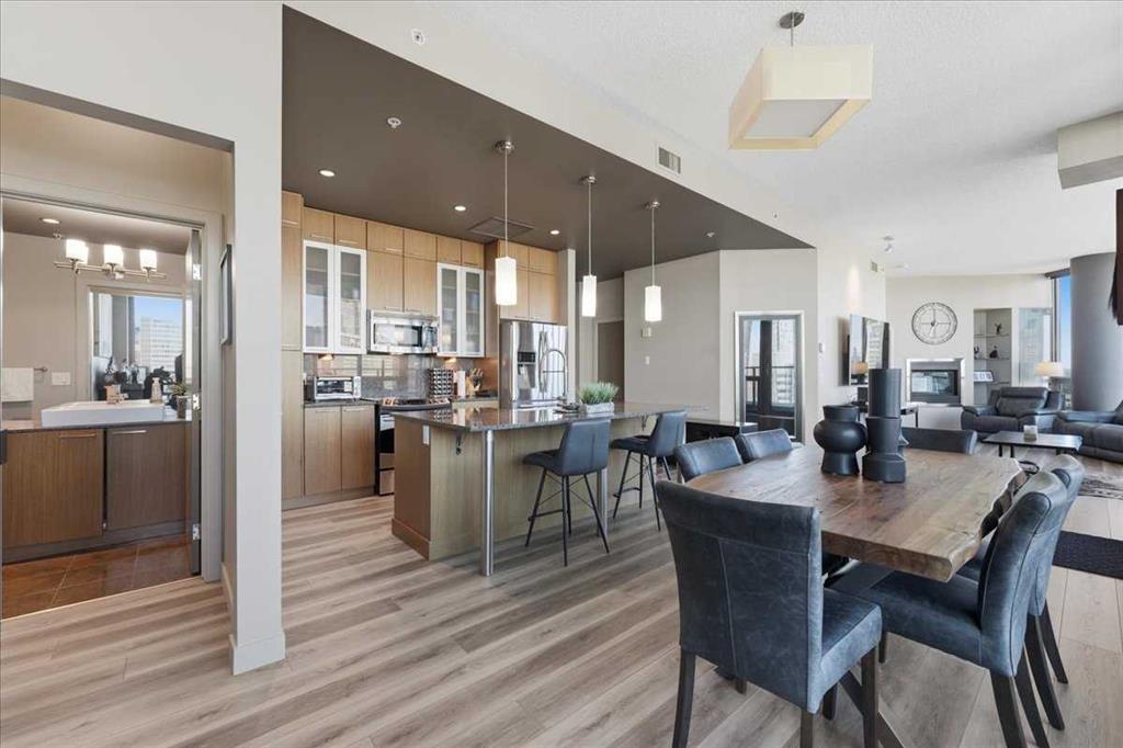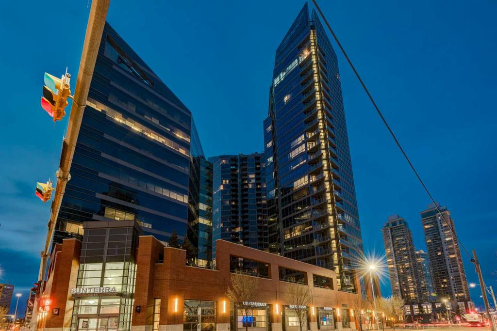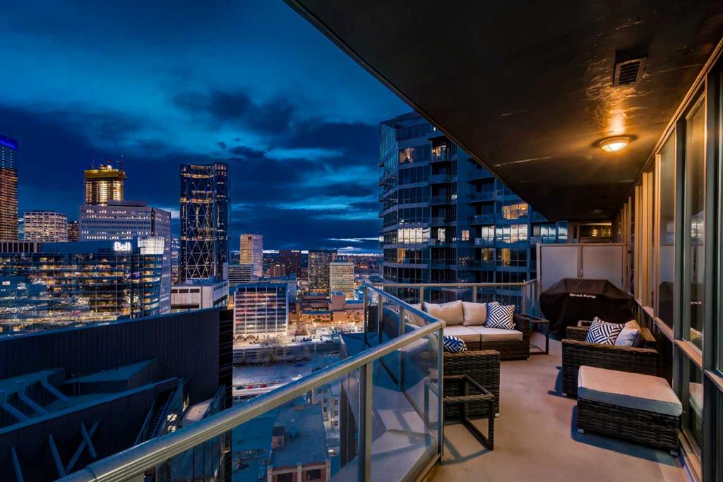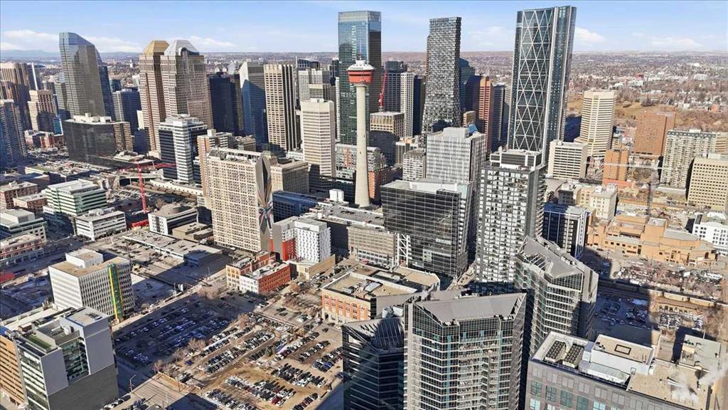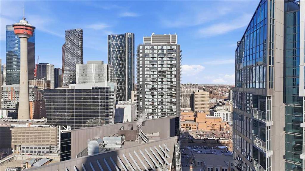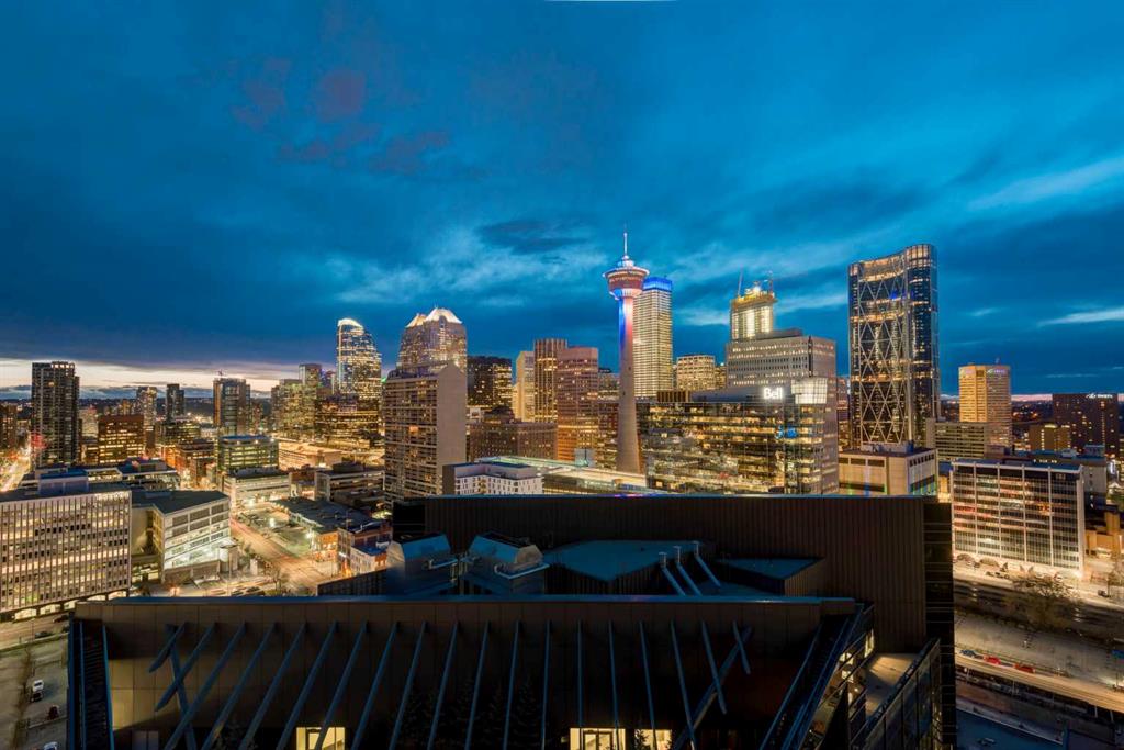 Situated in the heart of Beltline, Keynote One offers ultra convenient downtown living just steps to Stampede Park, BMO Centre, and Calgary's Saddledome. This Sub-Penthouse offers an exclusive EXTENDED balcony, plus TWO TITLED VIP parking stalls - a rarity in this building! With soaring floor to ceiling windows, second balcony off the master bedroom, and breath-taking views of the cities' skyline, this unit is a one-of-a-kind. Upgrades include new Vinyl Plank flooring, washer/dryer, water filtration system (ion filter), and new sink. Open concept, modern and industrial describe the vibe of this layout featuring TWO bed / TWO baths, boasting unbeatable privacy and functionality. Lie in your master retreat, enjoy the two-way fireplace, soak in the first- class views of the Calgary Tower and city skyline. Feel the grandness of the master ensuite with second balcony, double sinks, separate shower, massive tub, and OVER-SIZED double walk -in closet with custom California Closet built -ins. Keynote offers an on-site manager, access to the fully equipped fitness facilities (weights and cardio room), two guest suites, owner’s lounge with TVs, pool table, partial kitchen, BBQs, outdoor patio, plus 15 rooftop oasis, bike storage, and direct access to Sunterra Market. This unbeatable location offers high-quality living, the Plus 15 Skywalk system, and easy access to main thoroughfares for city-wide access. Weather you are looking for your next home or a prime investment opportunity, this is downtown living done right.