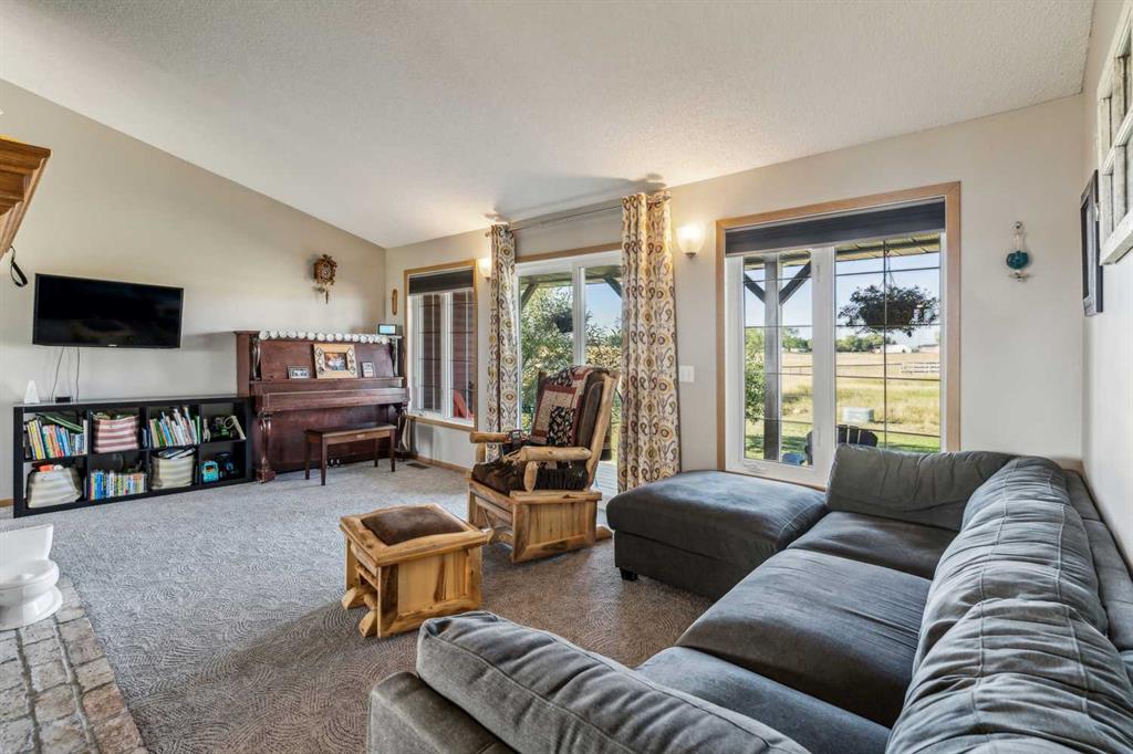 CHECK OUT the amazing AERIAL VIDEO of this property at this link: https://youtu.be/fjUYYL55fkQ. WELCOME to your own slice of country living with city conveniences close by. Situated on approximately 10 acres, this exceptional property offers the space, comfort, and functionality your family needs to live, grow, and thrive. As you arrive, you’ll immediately appreciate the thoughtful layout of this beautifully positioned bungalow, featuring both east- and west-facing decks—perfect for enjoying morning coffee or unwinding with sunset views and a glass of wine. Inside, the main level offers three bedrooms, including a spacious primary suite with double closets and a 3-piece ensuite. The open-concept kitchen boasts ample cabinetry, generous counter space, and a large pantry, flowing seamlessly into the dining area—ideal for family meals and entertaining. A huge living room provides plenty of space for gathering, highlighted by a two-sided gas fireplace shared with the kitchen for added warmth and ambiance. Patio doors lead to the back deck, offering easy access to the yard and a perfect spot to watch the kids play. Downstairs, you’ll find a versatile recreation/play area, an additional 3-piece bathroom, a generous guest space with wall-to-wall closets, a large office or flex room, convenient laundry, and an oversized storage room to keep everything organized. The double attached garage is heated and insulated, complete with a workbench, extensive shelving, and a sink, plus plenty of additional parking outside. For the outdoor enthusiast or equestrian, this property truly shines. The impressive 47’ x 43’ barn features five stalls, a tack room/office, hay storage, and drive-through access. Outside, you’ll find four horse paddocks, pasture space, garden, many recently replaced fences, and a fully equipped outdoor riding arena with night lighting. Two automatic waterers add convenience and functionality. Major updates include new siding, new roof and eaves on both the home and barn (2022), new windows (2011), new well pump (2023) and a brand-new septic field (2024) with a completed Septic Feasibility Report—offering peace of mind for years to come. Located just 5 minutes from Langdon, you’ll enjoy easy access to shops, restaurants, cafes, and everyday services. Calgary is only 15 minutes away, downtown Calgary just 30 minutes, and Strathmore and Chestermere are each a quick 15-minute drive. Nothing to do but move in and enjoy. This is the lifestyle you’ve been waiting for—don’t miss it!