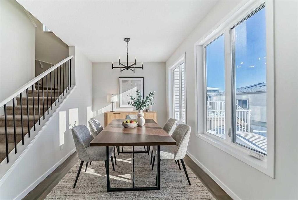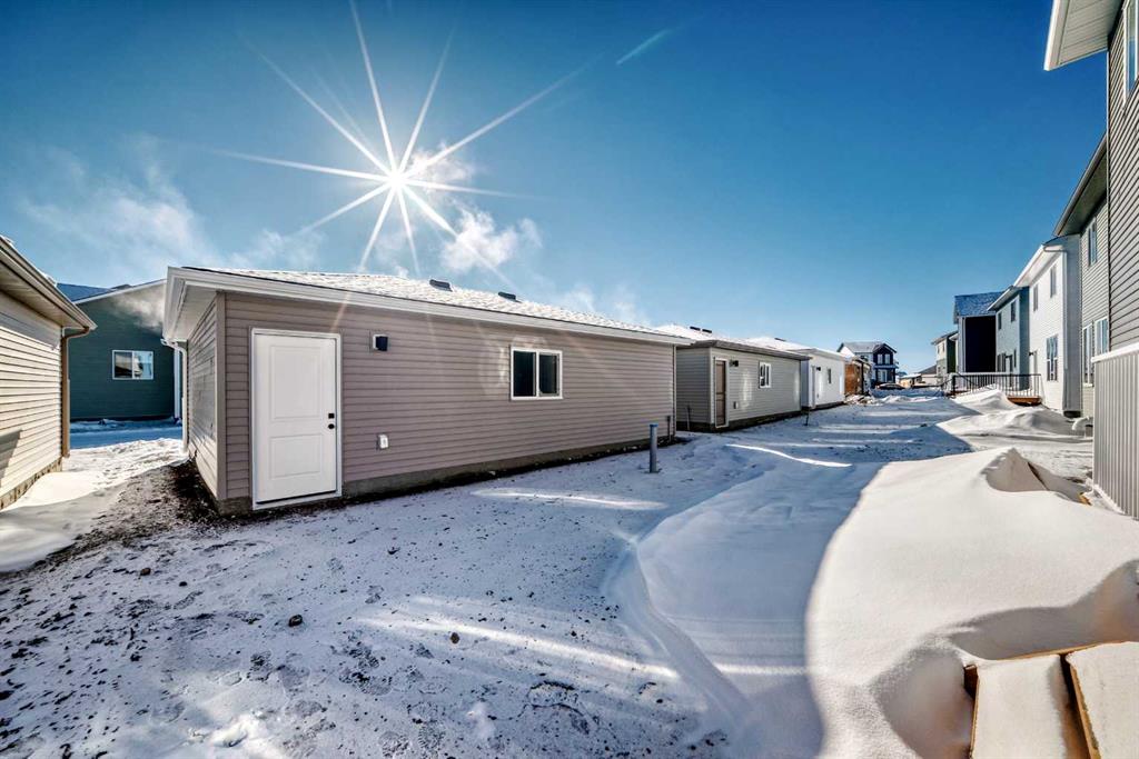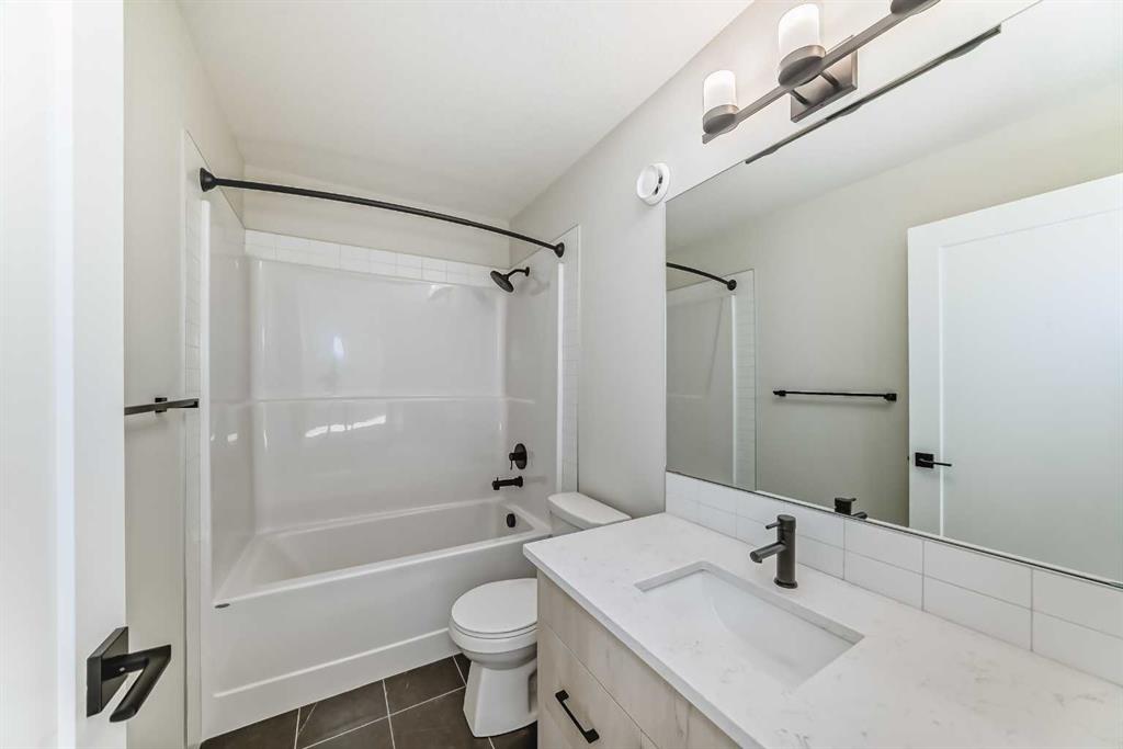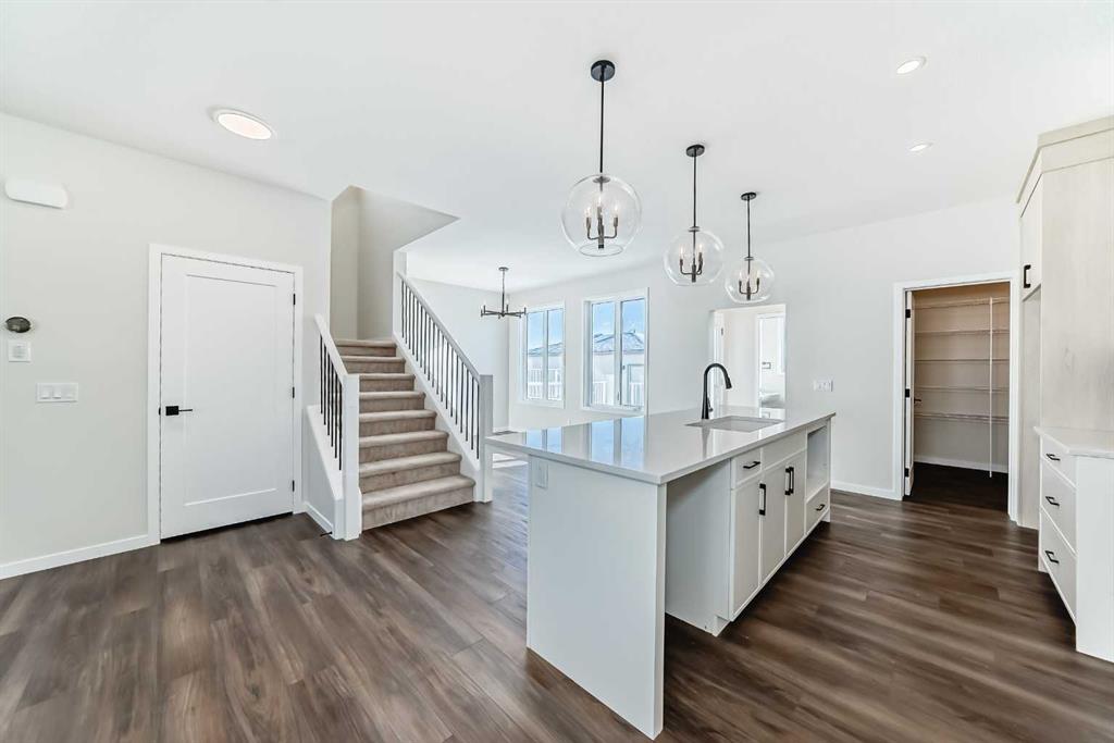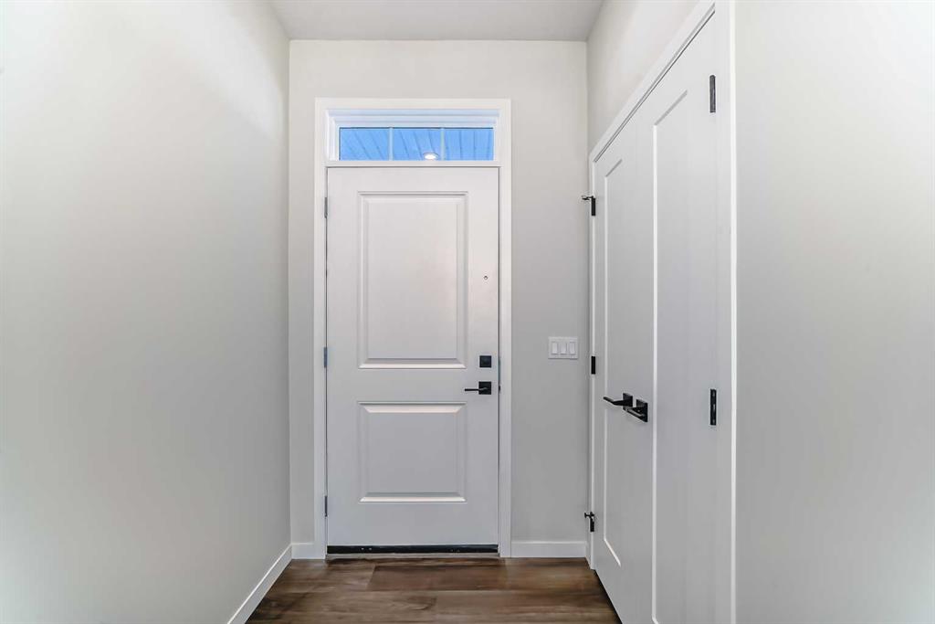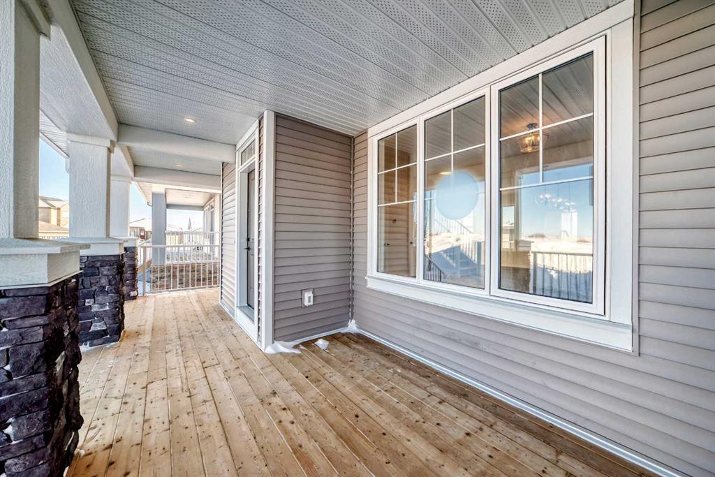 Welcome to the Forrester—a rare, family-friendly porchfront home fronting directly onto the park, paired with a triple detached garage and a driveway/parking setup that can accommodate up to six vehicles. This is the kind of combination that’s almost impossible to find, and it delivers a lifestyle that feels special from the moment you arrive. Start your mornings on the spacious 225 sq ft front porch, coffee in hand, watching the park come to life—perfect for playdates, dog walks, or simply enjoying an open view right outside your front door. Inside, the home is bright and welcoming thanks to large windows at both the front and back, carrying natural light deep throughout the day and every season. The main floor is designed for real life: a generous front living room and a flexible main-floor flex room (office, playroom, craft room—your call) lead into an open-concept layout anchored by a modern galley-style kitchen. You’ll love the elevated finish package here, including two-tone cabinetry, full-height upper cabinets, soft-close doors, quartz countertops, striking black hardware, and an upgraded chimney hood fan with built-in microwave. A large central island makes everyday meals and entertaining easy, while the oversized walk-in “Costco-ready” pantry keeps everything organized. Luxury vinyl plank flooring flows throughout the main level, tying it all together with a clean, contemporary feel. Off the rear entry, the mudroom adds practical function—complete with a private powder room that’s ideal for busy family routines. Cozy evenings are effortless in the open living space with a contemporary gas fireplace (cantilever-style feature), and the home is already set up for outdoor hosting with a gas line for the BBQ. For home chefs, you’ll also appreciate the gas line to the kitchen range—ready for your preferred cooking setup. Upstairs, you’ll find three bedrooms arranged for comfort and privacy, including winged secondary bedrooms that help keep everyone’s space their own, plus a convenient upper laundry room. The owner’s suite is a true retreat with no directly shared walls, a dramatic vaulted ceiling, large bright windows overlooking the park-facing front yard, a spacious walk-in closet, and a spa-inspired 5-piece ensuite with a soaker tub and dual vanities. Finishing touches like metal stair railings add to the home’s modern, upscale feel. Outside, the standout continues: a large triple detached garage, plus an exceptional amount of additional parking—whether it’s guests, toys, or a growing household, this is a game-changer. A park-front location, a triple garage, parking for up to six, and a well-curated interior finish package—this Forrester checks boxes that rarely come together in one home. Living in Vista Crossing means enjoying the best of both worlds: the convenience of city living just a short drive from Calgary, paired with the charm and slower pace of small-town life in Crossfield. This thoughtfully planned community fosters a strong sense of belonging.