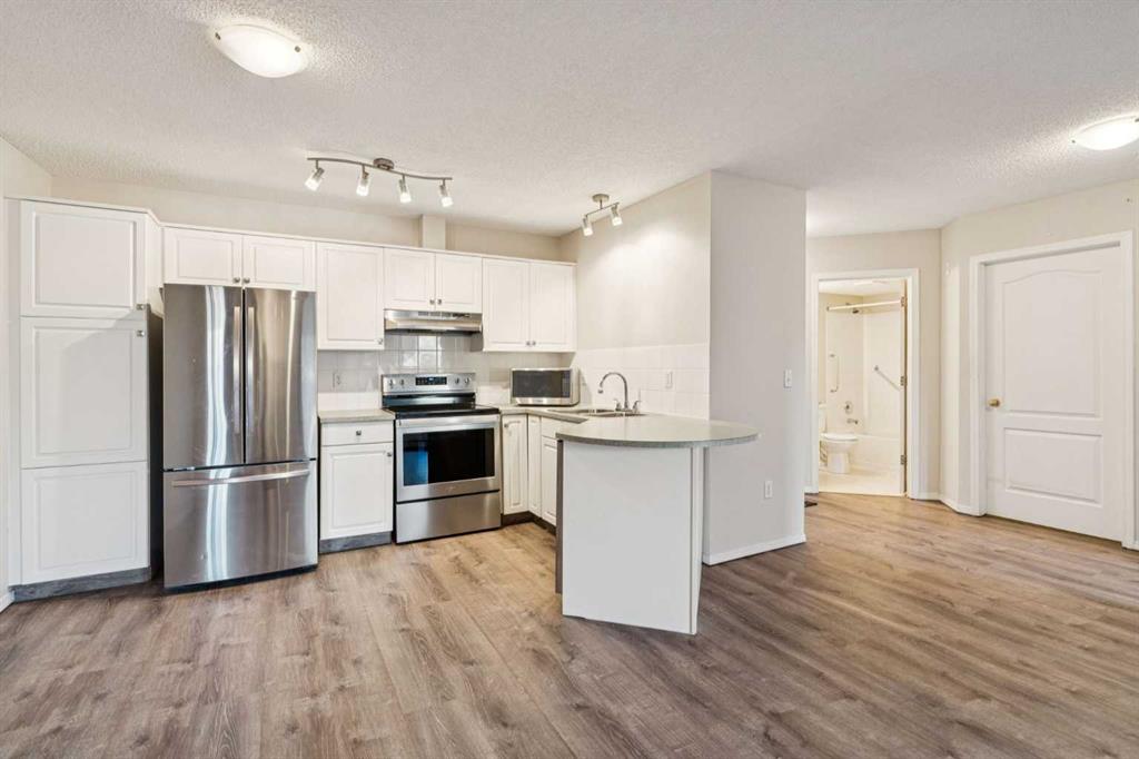 Discover effortless SW Calgary living in the heart of Signal Hill. This bright, updated 2-bedroom, 2-bathroom condo is tucked inside a quiet, well-managed, barrier-free building with secure entry and an elevator. The open-concept design is perfect for everyday living and entertaining, featuring newer flooring, updated appliances, modern light fixtures, and fresh paint—all finished in a clean, contemporary palette that feels instantly inviting. Relax by the cozy corner gas fireplace, enjoy the convenience of in-suite laundry, and unwind on your large, private covered balcony, ideal year round and with an exterior storage locker just steps away.