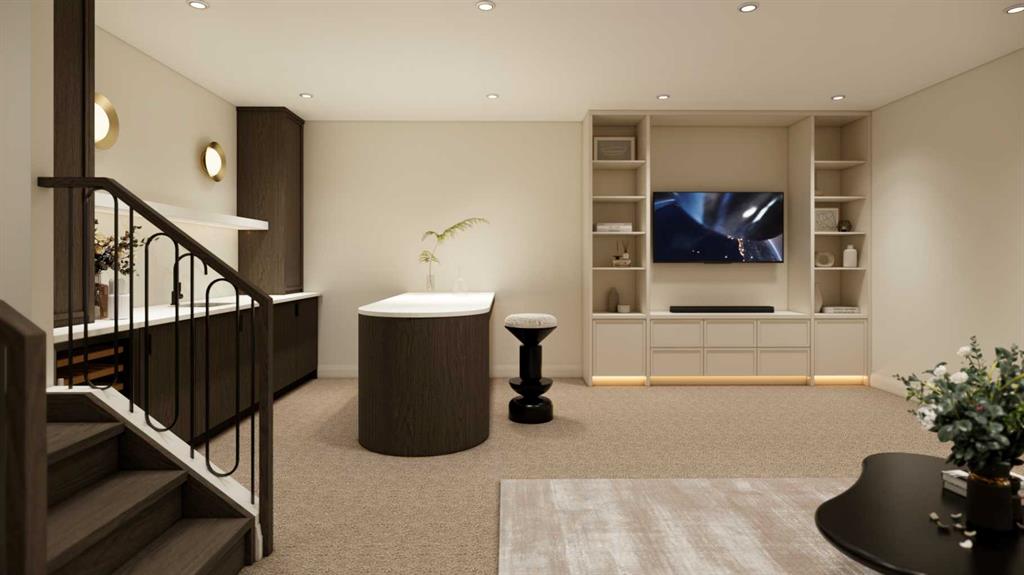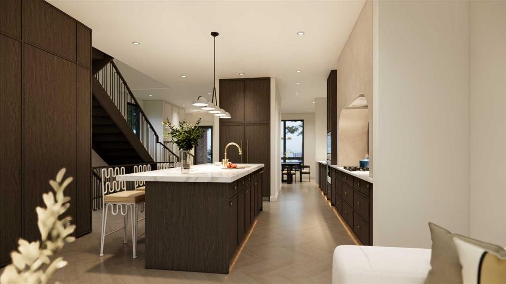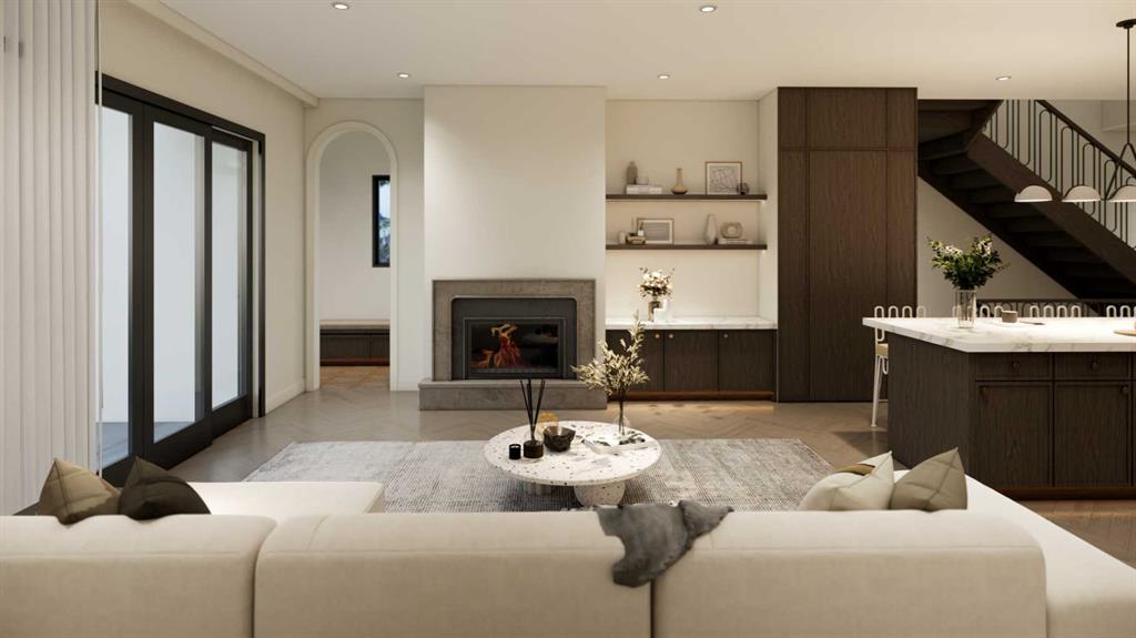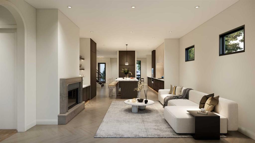 An artisanal masterpiece awaits, steps to Confederation Park, where every detail has been meticulously curated by a builder renowned for impeccable taste. Approaching the home, a large covered front patio welcomes you, setting the tone for a residence that is truly a cut above. Inside, the open~concept main floor is designed for both grand entertaining and everyday living. The front formal dining area features an adjacent wine display and a hidden butler’s pantry, both encased in elegant white oak feature walls, while a tucked away hidden home office seamlessly blends sophistication with functionality. The expansive kitchen with panel ready JennAir appliances blends effortlessly into the living room at the back. Anchored by a striking stone cast gas fireplace hearth and complemented by a discreet powder room and spacious mudroom, this main floor leaves nothing to be desired. Ascending to the upper floor, the master suite impresses with an 18~foot vaulted ceiling and 12~foot double sided stone gas fireplace, offset by a freestanding tub. The ensuite exudes a moody, indulgent vibe with accent lighting, a large steam shower with body jets, and a raindrop shower head. The walk~in closet is the size of a secondary bedroom, filled with natural light from a skylight, lit accent cabinetry and a glass countertop valet stand. Two additional bedrooms, each with tray ceilings, starlights, and backlit crown moulding, also feature their own walk~in closets and ensuites. With a conveniently located (and magazine worthy) laundry room completing this space. The lower level continues the theme of refined living, offering a large living area with projector and screen, a wet bar with island, and an additional versatile home office space with glass wall detailing. A private large fourth bedroom for a family member or guests, includes a massive walk~in closet ideal for additional home storage. Even the mechanical room is a statement piece, finished with diamond checker plate walls and epoxy floors. Throughout the home, thoughtful features abound. The oversized garage is also heated and fully finished with epoxy flooring, and the upper bathrooms are connected to an instant hot water system, All closets are finished in a thermally fused laminate material, complemented again by fully installed air conditioning system, and speaker system throughout. This is a home that marries unparalleled craftsmanship, intelligent design, and luxurious finishes at every turn. From the moment you arrive to the final detail in the basement, this home is a true reflection of bespoke elegance. Est completion May 2026.