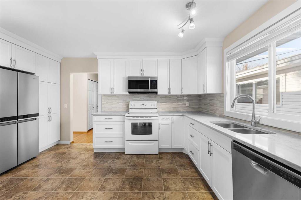 OPEN HOUSE SATURDAY 11-3:30 PM ! COME CHECK OUT A VERY RARE OPPORTUNITY- A TRIPLE CAR GARAGE with a Mechanic pit !!! Welcome to this tastefully maintained 4-bedroom bungalow located in the highly sought-after community of Varsity, one of Calgary’s most established and desirable neighbourhoods. Set on a massive lot with a green belt directly in front, this home offers a rare combination of privacy, space, and unbeatable convenience. Step inside to a warm and inviting main floor featuring a well-designed layout filled with natural light from the updated windows throughout. The updated kitchen is both functional and stylish, offering modern cabinetry, slow close cabinet doors, quality finishes, quartz counters, sufficient counter space and room to gather—perfect for everyday living and entertaining. A total of four generously sized bedrooms, including a primary bedroom with an ensuite, provide flexibility for growing families, guests, or home office needs. The home’s overall condition reflects years of thoughtful care and pride of ownership and has been tastefully maintained. The fully finished basement offers a separate entrance, huge bedroom with a large bedroom window, 4 piece bathroom, laundry and a second flex room that has been used as a bedroom. Entertain all your guests or just hang with your family in this massive family room with cozy wood burning fireplace. A true highlight of this property is the MECHANICS DREAM HEATED TRIPLE CAR GARAGE. This offers a full length mechanics pit, 10.5 ft high overhead doors, over 11 ft high ceilings, and has a toilet! Whether you’re a car enthusiast, hobbyist, or simply in need of exceptional storage and workspace, this garage delivers year-round comfort, space, and versatility rarely found in the area. Outside, the expansive lot offers endless potential for outdoor enjoyment, gardening, and interlocking patio area and all while enjoying the open views and added separation provided by the green belt. The front-facing green space enhances the sense of tranquility and creates a welcoming setting for daily walks and outdoor activities. Ideally located just minutes from Market Mall, Alberta Children’s Hospital, exceptional schools, parks, transit, golf, the University District and U of C. This property combines a peaceful residential atmosphere with exceptional access to amenities. Whether you’re looking to move right in, renovate, or invest in a premier location, this Varsity bungalow presents an outstanding opportunity in a timeless community.