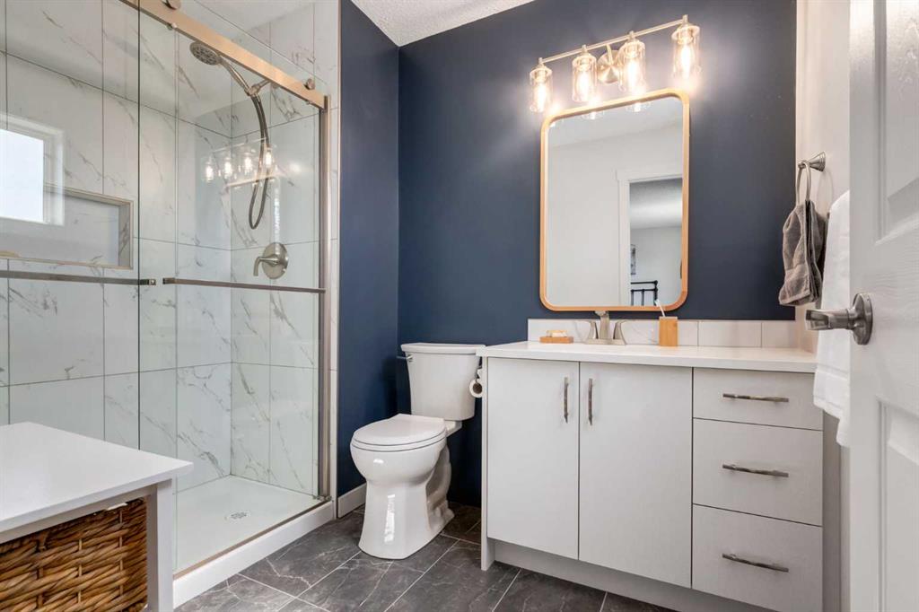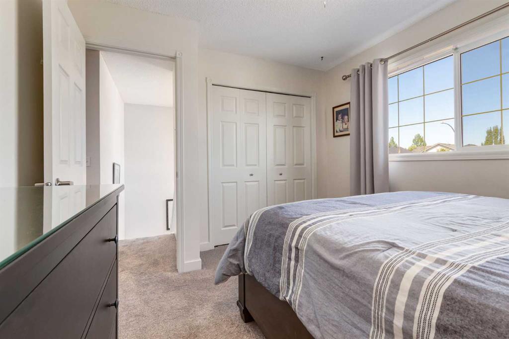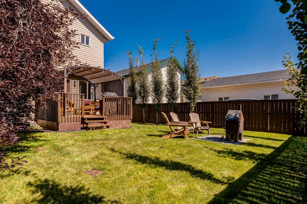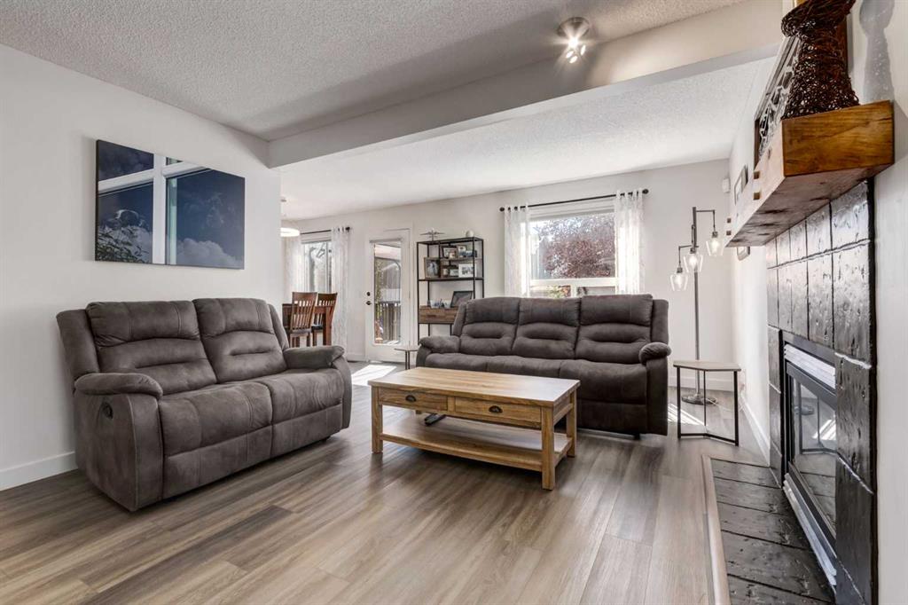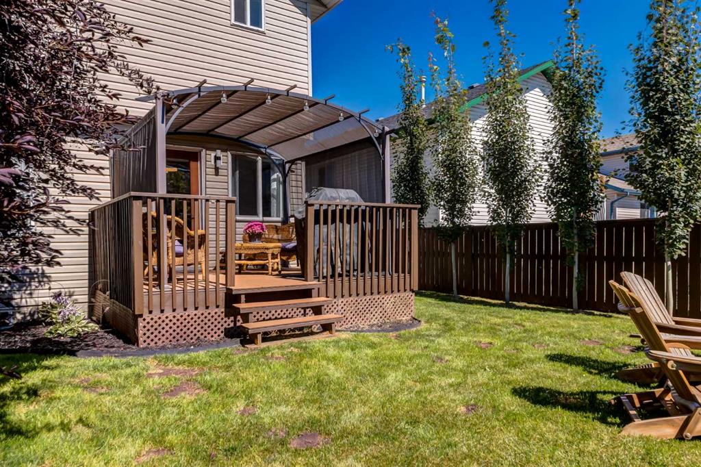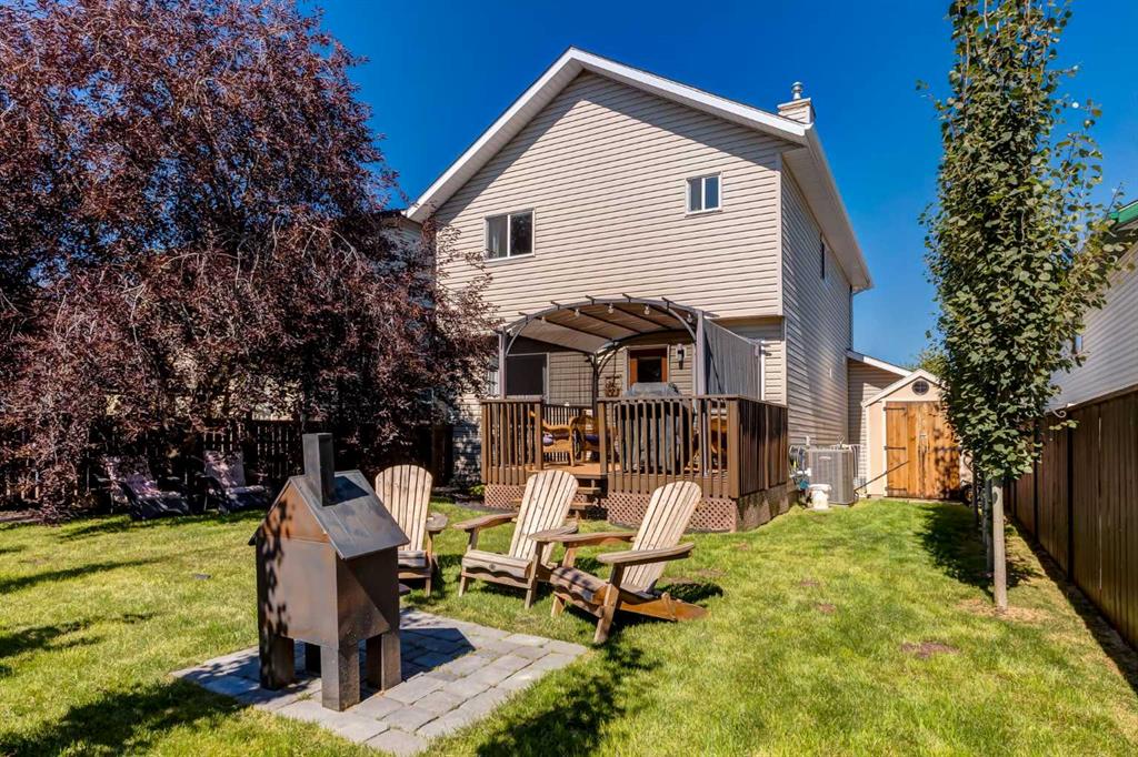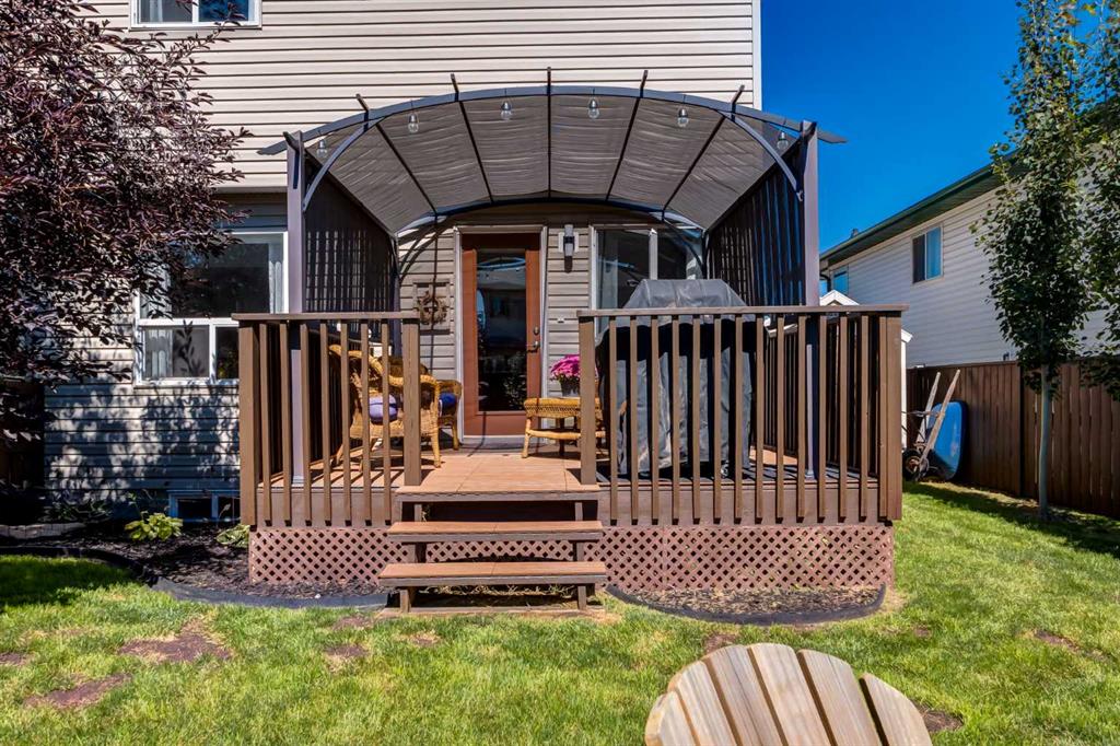Fully Renovated family home in the heart of Airdrie, showcasing over 2,000 Sq. Ft. of developed living space. Set in a mature, established neighbourhood, this home is within walking distance to schools, grocery stores, and an off-leash dog park, plus it’s just steps from a winter outdoor skating rink, open fields with great walking paths, and only 1.5 km from Genesis Place Recreation Centre. Commuters will also appreciate the easy access to Highway 2. From the moment you arrive, you’ll notice the fresh curb appeal with new exterior paint, a custom wooden front door, and updated siding, shingles, and garage door. The landscaping has been enhanced with trees, fencing improvements, and a private back deck complete with a gazebo, perfect for summer entertaining. Inside, the home has been fully refreshed with new baseboards and trim, designer lighting, fresh paint throughout, and all new flooring on three levels, including luxury vinyl plank and ceramic tile. The chef-inspired kitchen is a showstopper with quartz countertops, stainless steel appliances, and a stylish redesign that makes it the perfect space to gather. The main floor also includes a fully updated half bath and laundry room with a brand-new washer and dryer. Upstairs, you’ll find three bright, functional bedrooms, including a spacious primary retreat complete with a walk-in closet and a fully renovated ensuite featuring a modern stand-up shower. A second full bathroom upstairs has also been redone with fresh finishes. The basement is fully developed, offering a fourth bedroom, a cozy rec room with a built-in shelving unit and an included 85” Smart TV, plus a rough-in for an additional bathroom. Additional updates include a new furnace and central A/C, custom window coverings and blinds, and an updated main floor fireplace feature wall. Every detail has been carefully considered to create a move-in ready home that truly stands out