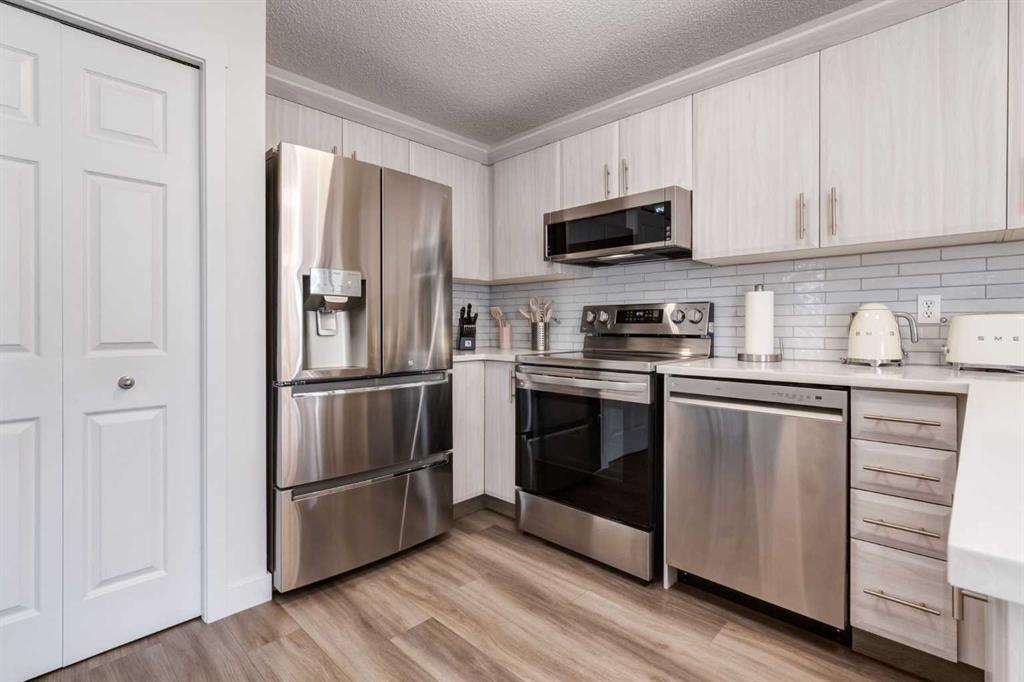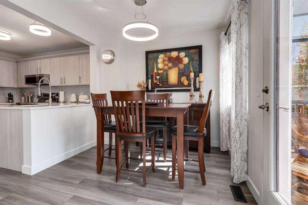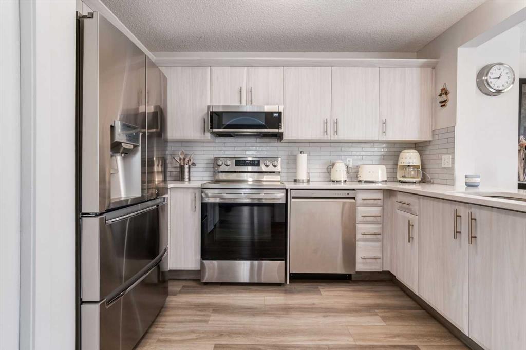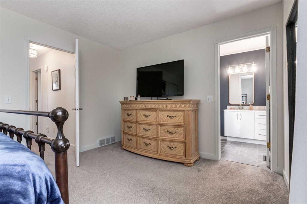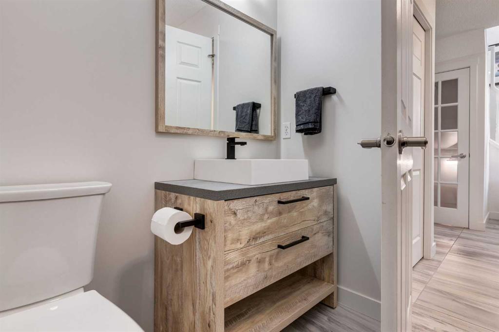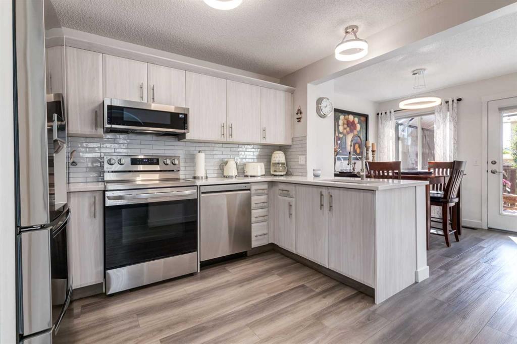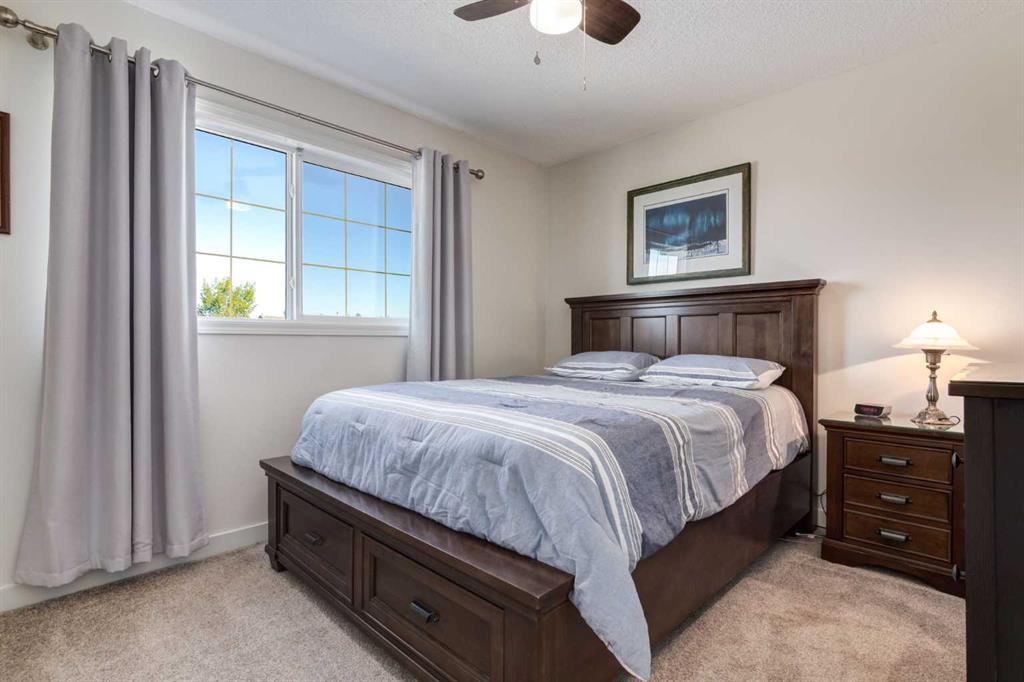 Fully Renovated family home in the heart of Airdrie, showcasing over 2,000 Sq. Ft. of developed living space. Set in a mature, established neighbourhood, this home is within walking distance to schools, grocery stores, and an off-leash dog park, plus it’s just steps from a winter outdoor skating rink, open fields with great walking paths, and only 1.5 km from Genesis Place Recreation Centre. Commuters will also appreciate the easy access to Highway 2. From the moment you arrive, you’ll notice the fresh curb appeal with new exterior paint, a custom wooden front door, and updated siding, shingles, and garage door. The landscaping has been enhanced with trees, fencing improvements, and a private back deck complete with a gazebo, perfect for summer entertaining. Inside, the home has been fully refreshed with new baseboards and trim, designer lighting, fresh paint throughout, and all new flooring on three levels, including luxury vinyl plank and ceramic tile. The chef-inspired kitchen is a showstopper with quartz countertops, stainless steel appliances, and a stylish redesign that makes it the perfect space to gather. The main floor also includes a fully updated half bath and laundry room with a brand-new washer and dryer. Upstairs, you’ll find three bright, functional bedrooms, including a spacious primary retreat complete with a walk-in closet and a fully renovated ensuite featuring a modern stand-up shower. A second full bathroom upstairs has also been redone with fresh finishes. The basement is fully developed, offering a fourth bedroom, a cozy rec room with a built-in shelving unit and an included 85” Smart TV, plus a rough-in for an additional bathroom. Additional updates include a new furnace and central A/C, custom window coverings and blinds, and an updated main floor fireplace feature wall. Every detail has been carefully considered to create a move-in ready home that truly stands out