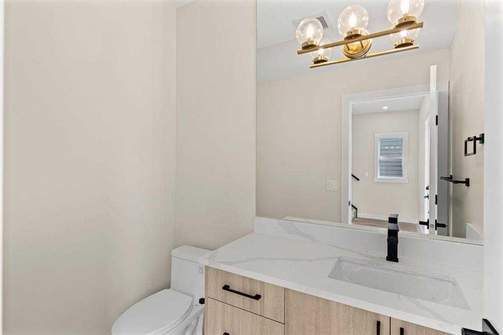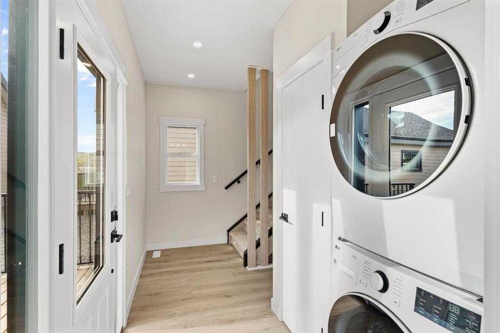 This newly built 3-bedroom, 2.5-bathroom cottage by Exquisite Homes offers over 1,400 square feet of beautifully crafted living space. On the main floor, you’ll find a bright open-concept living room with a Montigo gas fireplace, a stylish chef’s kitchen with quartz counters, high-end stainless steel appliances, a gas range, and floor-to-ceiling cabinetry. There’s also a powder room and stacked laundry for added convenience.
