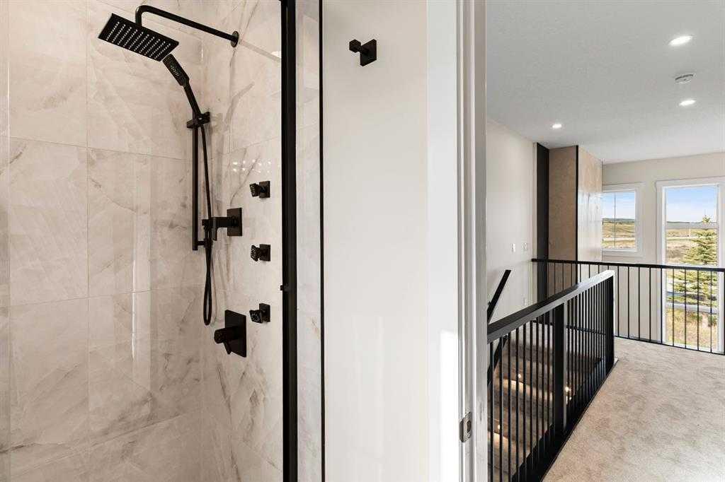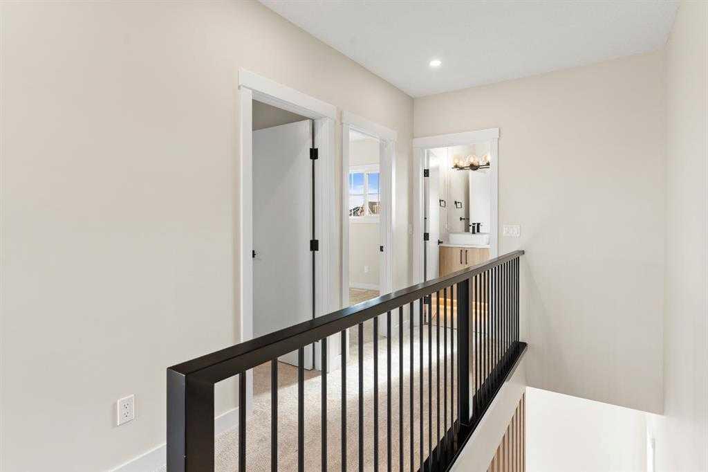 Upstairs, tall glass railings and an open-to-below design give the home a modern, airy feel. You’ll find two spacious bedrooms and a full four-piece bathroom up here—ideal for guests or family.