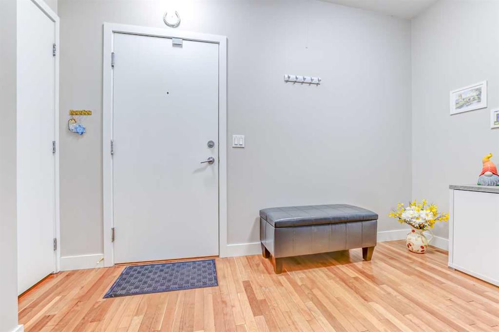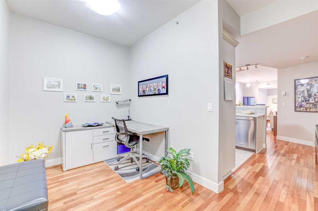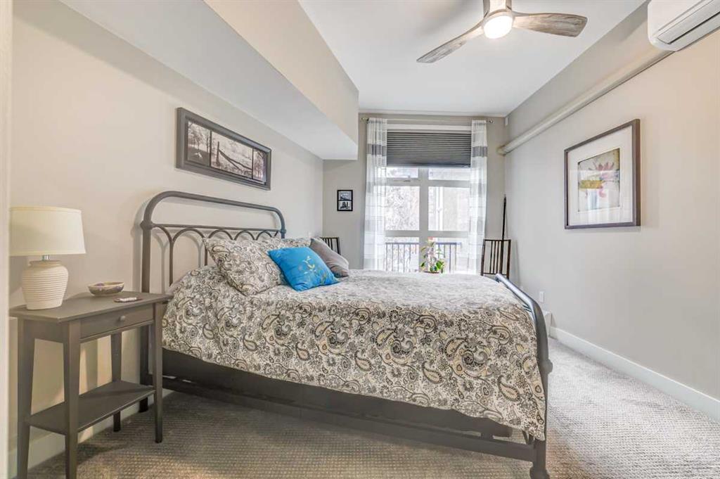 MISSION POSSIBLE! Modern, bright and effortlessly livable — welcome to your Mission retreat at Xolo. This tastefully upgraded TOP FLOOR condo blends clean, contemporary finishes with a smart, open layout. The kitchen shines with sleek cabinetry, corian counters and stainless steel appliances. The den provides study space or dedicated focus for those work from home days. This is a SPACIOUS unit! Hardwood throughout plus cozy carpet in bedroom. Quiet location in the building with only one common wall and no one above. The lovely, bright living room is perfect for entertaining or for lounging after a lively day exploring all that vibrant Mission has to offer. The unique historic character of the area is packed with a variety of dining options, diverse shopping and energetic entertainment venues. yet the relaxing allure of the Elbow River Pathway system is right at hand. Walk, bike, jog, roll out your yoga mat... enjoy nature without the drive. Plenty of upgrades in this home. Appreciate the comfort of in-suite, full-size laundry, titled parking, air conditioning, a fireplace, dual closets in the primary bedroom and an assigned storage locker. Additional updates include custom blinds, ceiling fans, newer carpet & paint, washer/dryer and thermostat. Relax on your private balcony. Or, step out to the street and become instantly immersed in the best of Mission: cafés, river pathways, the iconic 4th Street energy... and downtown is only minutes away. This is a neighborhood with unbeatable walkability. This is a condo with unbeatable charm. This is an opportunity with unbeatable possiblity! Mission possible? Mission complete!!!