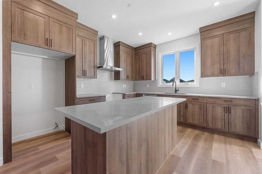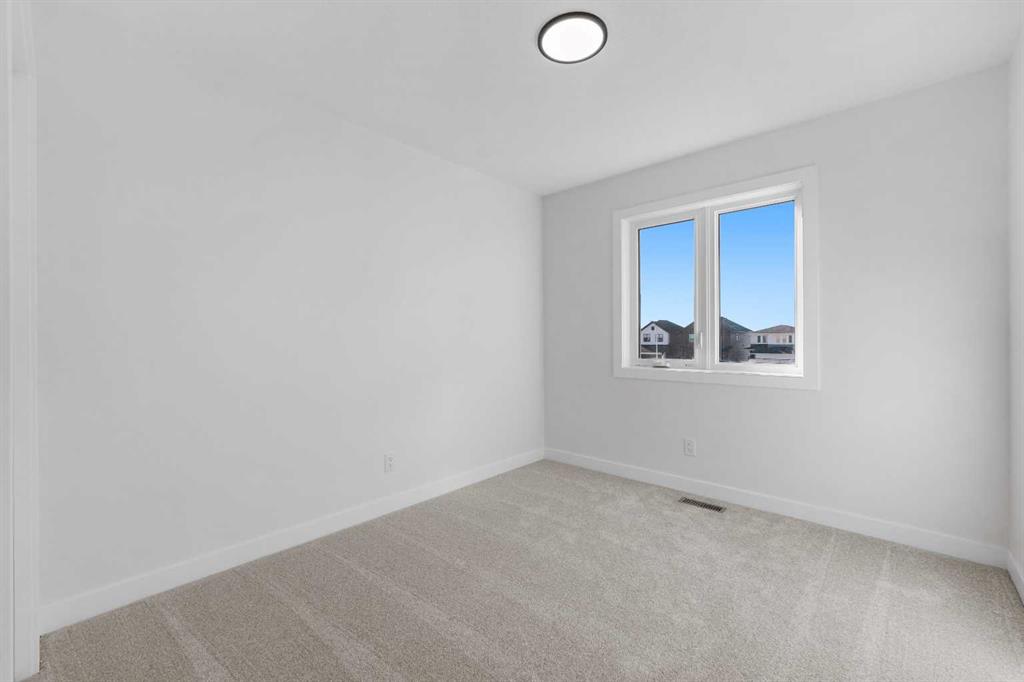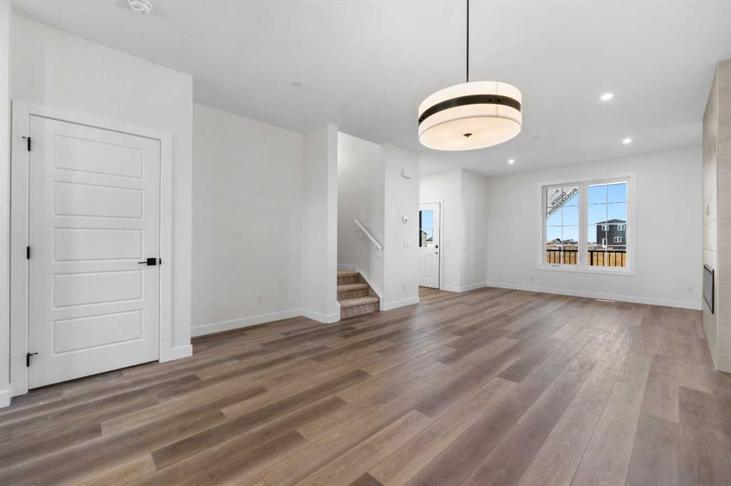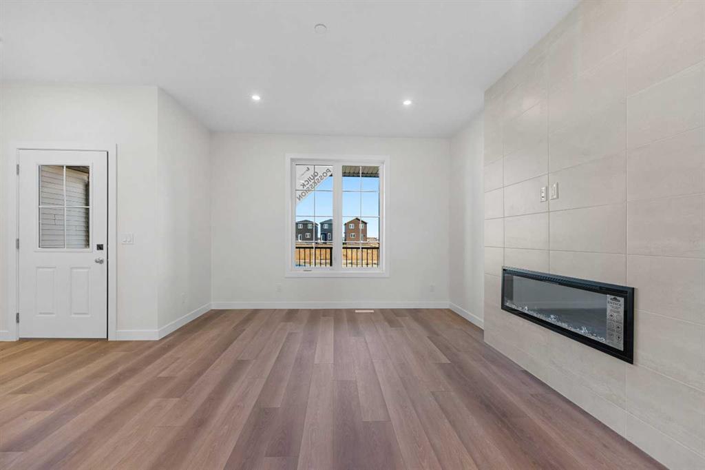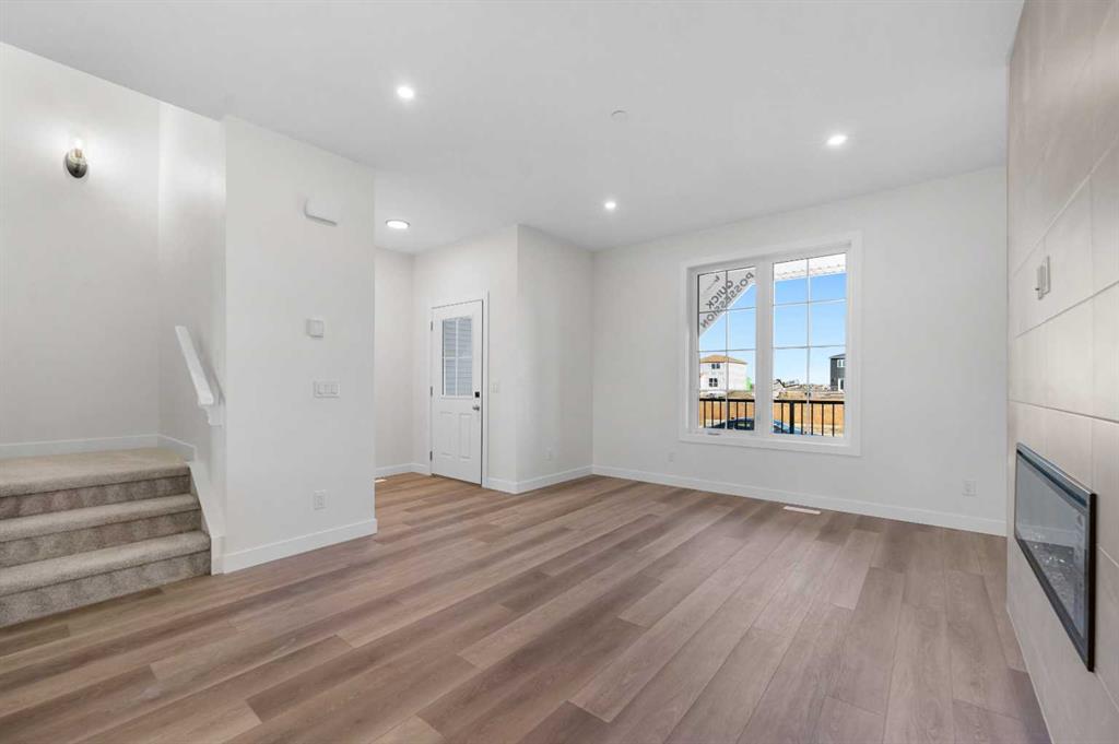 Welcome to this beautifully crafted, move-in ready 2025-built home by Broadview Homes, offering 1,677 sq ft of thoughtfully designed living space. Situated on an east-facing lot with a sunny west-facing backyard and convenient rear lane access with a gravel parking pad, this home combines style, comfort, and functionality. The main level features an open-concept floor plan with high ceilings, an elegant electric fireplace, granite countertops throughout, full-height cabinets, and a modern kitchen complete with a stainless steel gas range, hood fan, and built-in microwave. Upstairs offers 3 spacious bedrooms, 2.5 bathrooms, and a convenient upper-floor laundry room. Enjoy additional upgrades including a 200 AMP electrical panel, precast front verandah, and 9' basement ceilings. The basement is legal suite-ready, with a separate side entrance, second furnace and HRV system, kitchen rough-in, and laundry rough-in – all subject to City of Calgary approval. This is a fantastic opportunity to own a brand-new, luxury home with incredible future income potential in a growing community.