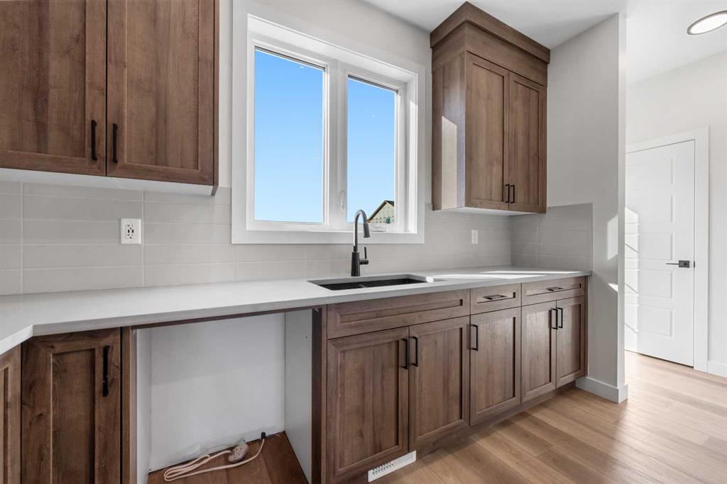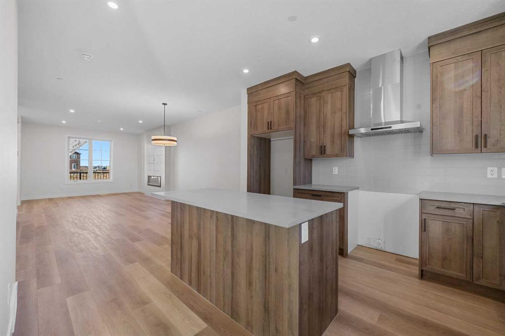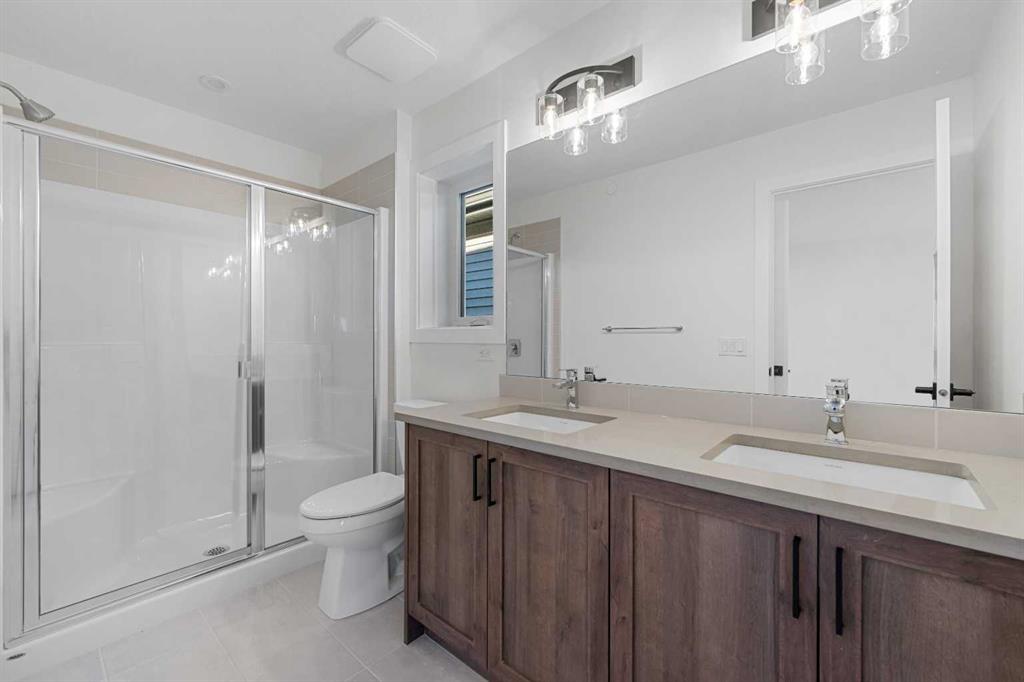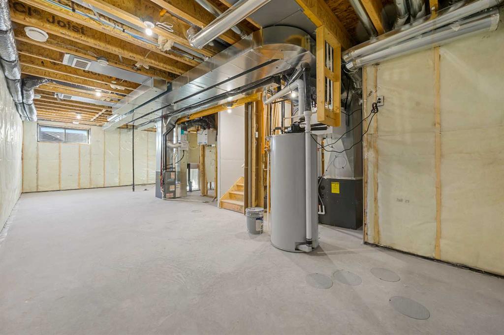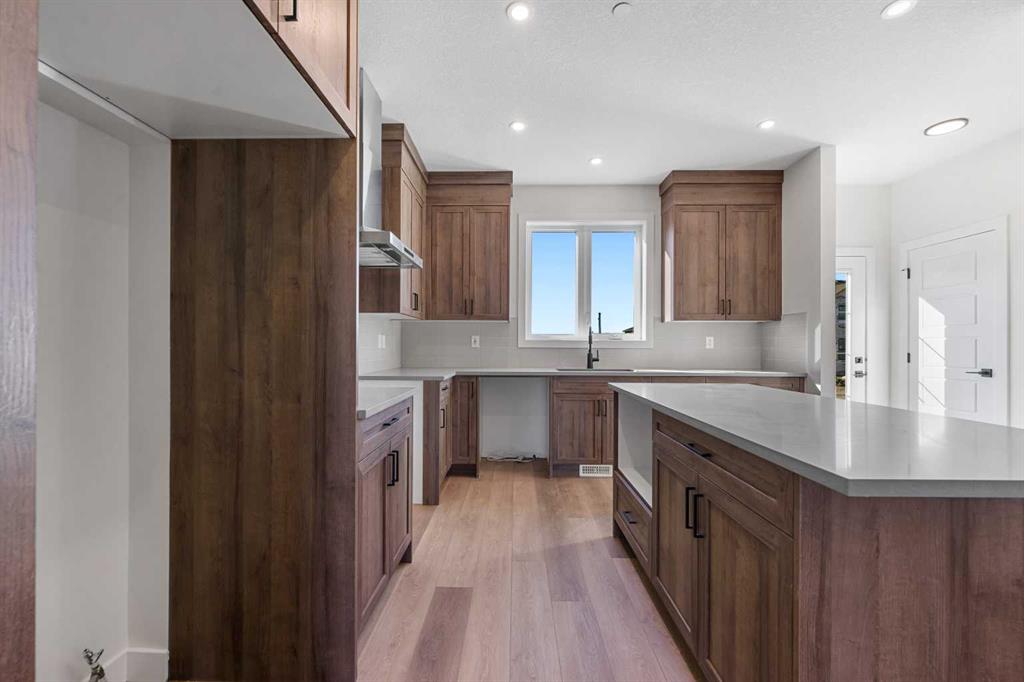 Welcome to this beautifully crafted, move-in ready 2025-built home by Broadview Homes, offering 1,677 sq ft of thoughtfully designed living space. Situated on an east-facing lot with a sunny west-facing backyard and convenient rear lane access with a gravel parking pad, this home combines style, comfort, and functionality. The main level features an open-concept floor plan with high ceilings, an elegant electric fireplace, granite countertops throughout, full-height cabinets, and a modern kitchen complete with a stainless steel gas range, hood fan, and built-in microwave. Upstairs offers 3 spacious bedrooms, 2.5 bathrooms, and a convenient upper-floor laundry room. Enjoy additional upgrades including a 200 AMP electrical panel, precast front verandah, and 9' basement ceilings. The basement is legal suite-ready, with a separate side entrance, second furnace and HRV system, kitchen rough-in, and laundry rough-in – all subject to City of Calgary approval. This is a fantastic opportunity to own a brand-new, luxury home with incredible future income potential in a growing community.