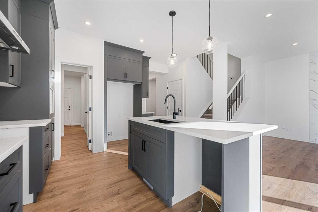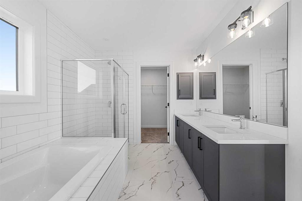 Luxurious Move-In Ready Home | The York by Broadview Homes – 2,109 SqFt of Refined Living | 3 Bedrooms | 3 Bathrooms | Main Level Office | Top of the Line Finishes | Gorgeous Chef's Kitchen | Full Height Cabinets | Stainless Steel Appliances Builder's Package | Quartz Countertops | Kitchen Island | Walkthrough Pantry to Mud Room | Large Windows | Great Natural Light | Grandiose Bedrooms | Upper Level Family Room & Laundry | Unfinished Basement | Double Attached Front Garage. Step into elegance with The York by Broadview Homes, a beautifully crafted move-in ready residence offering 2,109 square feet of thoughtfully designed living space across the main and upper levels. This brand-new contemporary home blends modern luxury with everyday comfort, creating the perfect setting for upscale family living. At the heart of the home, the chef-inspired kitchen is a true showstopper—featuring gleaming granite countertops, 42" upper cabinets with crown molding, soft-close cabinetry, and premium stainless steel appliances, including a gas range. A walkthrough pantry offers direct access to the mudroom and interior garage entry—perfect for effortless grocery drops. The open-concept dining area is ideal for hosting intimate dinners or large family gatherings, while the spacious great room is anchored by a stylish electric fireplace, creating an inviting ambiance. Designed with flexibility in mind, the main level offers a flex room - a great space for a bedroom and 4-piece bath, making it ideal for multigenerational living or a private guest bed. Upstairs, discover three additional generously sized bedrooms, a central bonus room, and a convenient laundry room. The lavish primary retreat is your private sanctuary, complete with a spa-inspired 5-piece ensuite featuring dual vanities, a deep soaking tub, walk-in glass shower, private water closet, and a spacious walk-in wardrobe. Additional upper bedrooms share a well-appointed 4-piece bathroom with a tub/shower combination, and the bonus room is perfect for cozy family movie nights or a relaxed lounge space. The 9-foot basement ceilings and rough-in plumbing offer endless potential for future development. This home is equipped with a 200 AMP electrical panel, two-stage furnace, and triple-car garage, providing ample space for vehicles, hobbies, and storage. Every detail has been carefully curated, from the maple hardwood and luxury vinyl plank flooring, to tile in all wet areas, superior carpeting, pot lights in the kitchen, and custom cabinetry by Wildwood Cabinets. Don’t miss your chance to own this luxurious, move-in ready masterpiece by Broadview Homes. Schedule your private showing today and experience the elevated lifestyle that awaits!