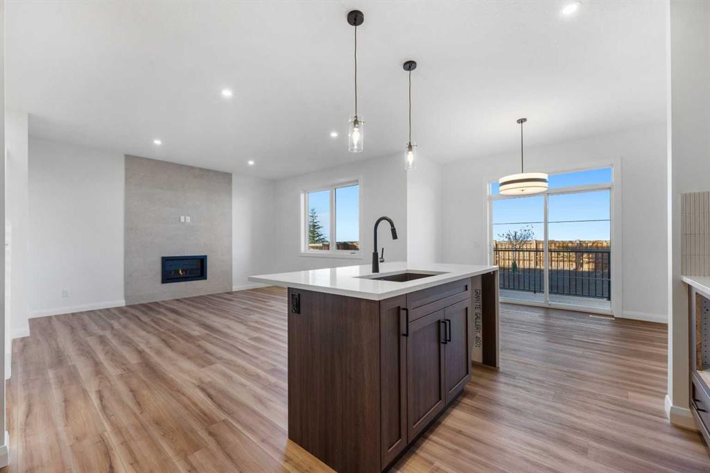 Welcome to The Meritt III, a beautifully crafted home by Broadview Homes, offering 2,087 sq. ft. of upscale, thoughtfully designed living space. With 3 bedrooms, 2.5 bathrooms, and a triple car garage, this home perfectly balances luxury and practicality for modern family life. Step inside through the stunning gel-stained fiberglass front door and be greeted by a light-filled, open-concept main floor. The chef-inspired kitchen is a showstopper with 42” upper cabinets complete with crown molding and soffit to the ceiling, soft-close doors and drawers, and a full suite of stainless steel appliances, including a built-in microwave and designer hood fan. A walkthrough pantry leads directly to the mudroom and interior garage access, making grocery runs effortless. The kitchen flows seamlessly into a spacious Great Room and dining nook, perfect for both entertaining and everyday living. Just outside, a rear deck invites you to extend your living space into the outdoors—ideal for summer evenings and weekend gatherings. Upstairs, you’ll find a large bonus room for family movie nights, a convenient laundry room with ample space for storage and organization, and two generous secondary bedrooms. The primary retreat is a serene escape, complete with a spa-inspired 5-piece ensuite featuring dual vanities, a soaking tub, tiled walk-in shower, and private water closet. The basement offers 9’ ceilings and a separate side entrance, providing incredible potential for future development or an income suite(with city approval). A 200 AMP electrical panel and 2-stage high-efficiency furnace ensure long-term performance and energy efficiency, while designer tile in the ensuite, main bath, and laundry adds a refined finish throughout. This is more than just a home—it’s your next chapter, elevated. Experience the unparalleled quality and style that only Broadview Homes can deliver. Schedule your private showing today—your dream home awaits