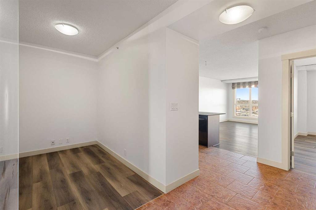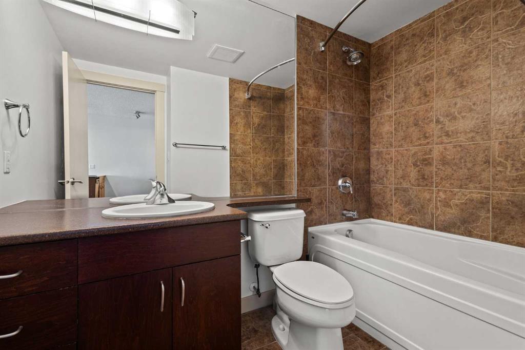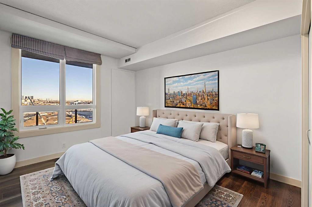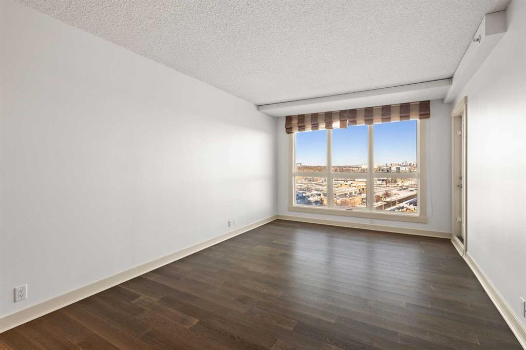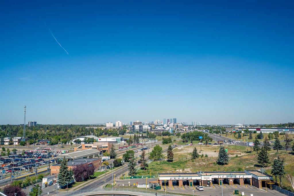 Designed for effortless daily living, this north-facing 10th-floor condo combines skyline views with immediate access to transit and on-site amenities. Featuring 9-foot ceilings, an open-concept layout, freshly painted interiors, and expansive windows, this home feels bright, modern, and move-in ready. The kitchen is designed for both everyday living and entertaining with maple cabinetry, sleek upper storage, black appliances, a brand-new refrigerator (2025), modern fixtures, and a generous breakfast bar anchoring the living space. The bright living room flows seamlessly to a cozy balcony where you can enjoy breathtaking downtown and mountain vistas while grilling on the natural gas hookup, perfect for summer barbecues and year-round enjoyment. The primary bedroom offers comfortable accommodation while the versatile den provides the perfect space for a home office or guest room, plus the convenience of in-suite laundry with a new stacked washer and dryer (2024) simplifies everyday chores. This pet-friendly, professionally managed building offers 24-hour security, heated underground parking, three high-speed elevators, a party room, a modern lobby with updated furniture, a sunroom on the 17th floor, and a serene rooftop garden where panoramic downtown views create the perfect backdrop for relaxation. One of the building’s standout features is direct heated underground access to Save-On-Foods and the Shops at Heritage, along with a pedestrian bridge providing a short walk to the Heritage LRT Station for quick downtown access. For outdoor enthusiasts, nearby bike trails, Glenmore Reservoir, Fish Creek Park, and numerous green spaces offer endless recreation options. Whether you're a first-time buyer, investor, or young professional seeking low-maintenance urban living, this exceptional home delivers comfort, convenience, and style in one of Calgary's most connected neighborhoods. Don't miss this opportunity to make this your new home!
