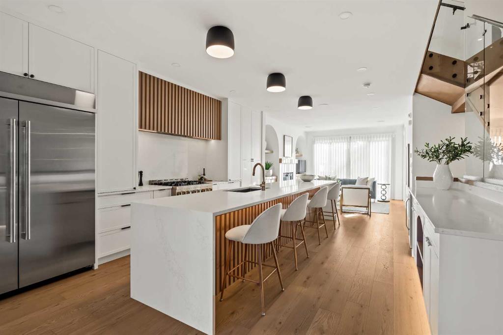 Stunning luxury 3-storey semi-detached residence offering 4 bedrooms, 4.5 bathrooms, a private south-facing backyard, fully air conditioned & ideally located in the heart of highly sought-after Altadore. Showcasing exceptional curb appeal with a gorgeous front elevation, this modern home is filled with natural light from expansive windows & features thoughtful design & high-end upgrades throughout.