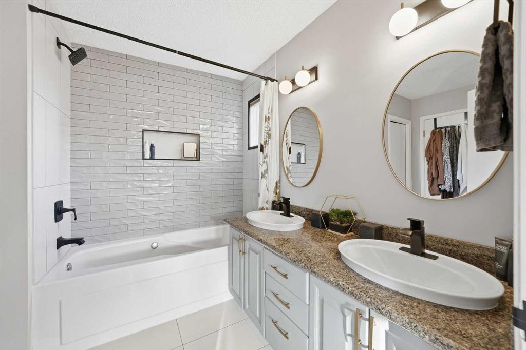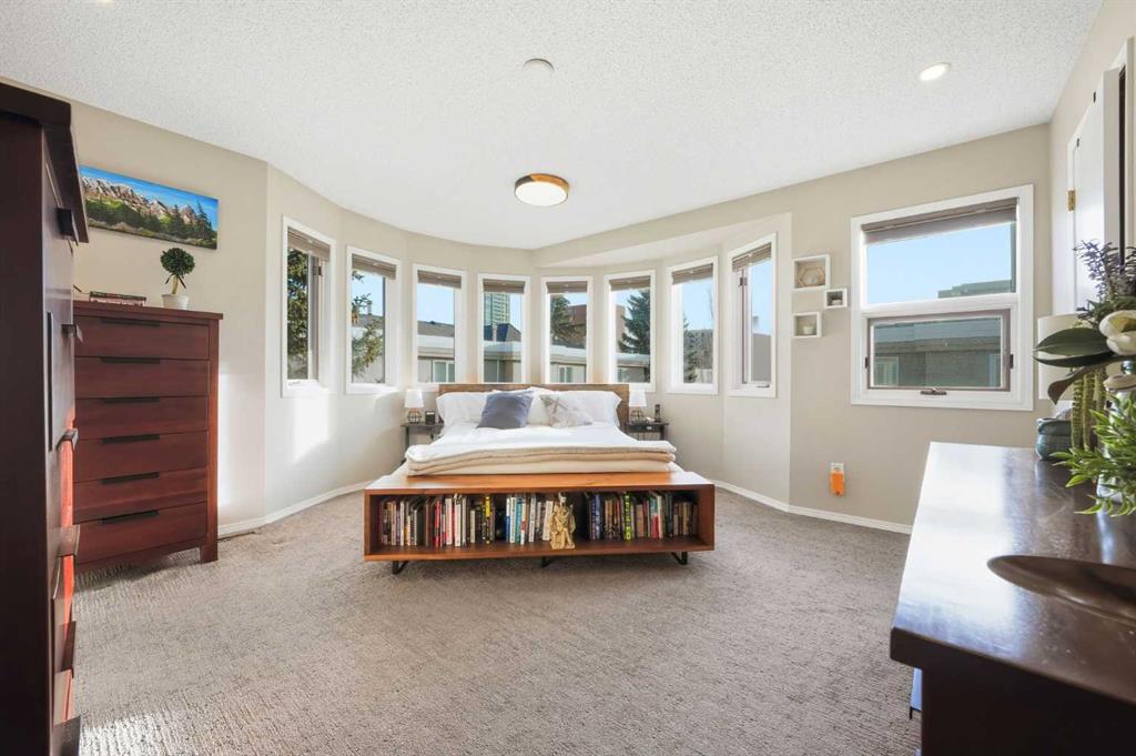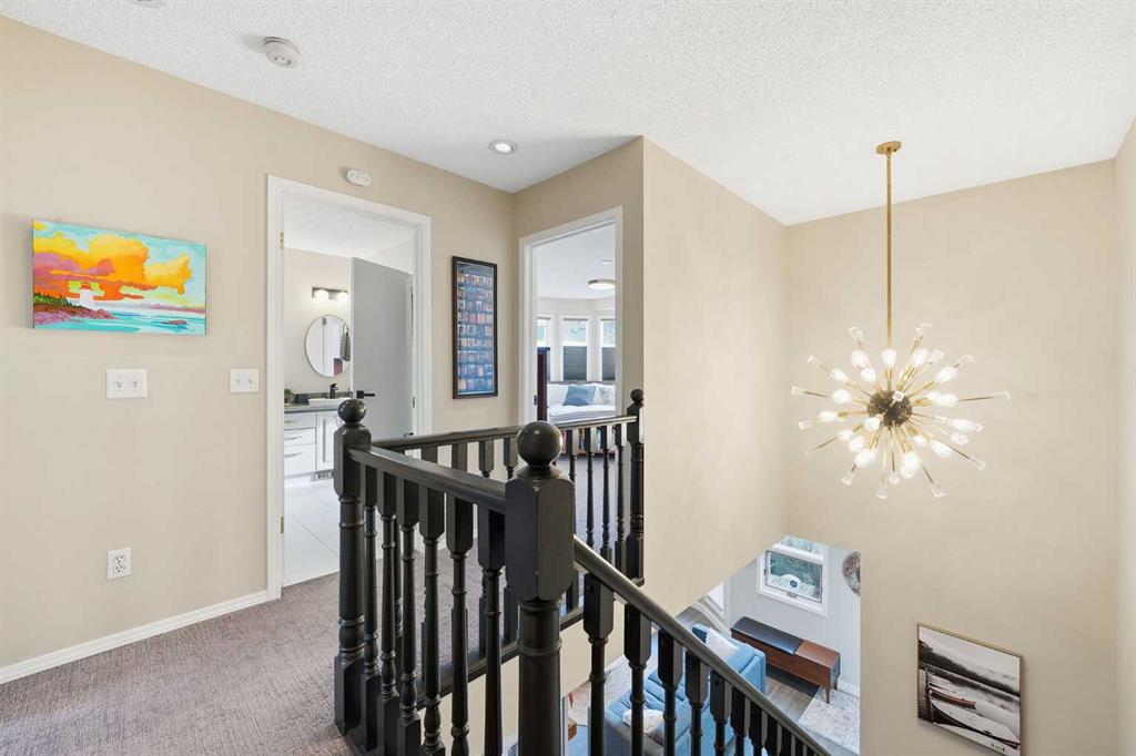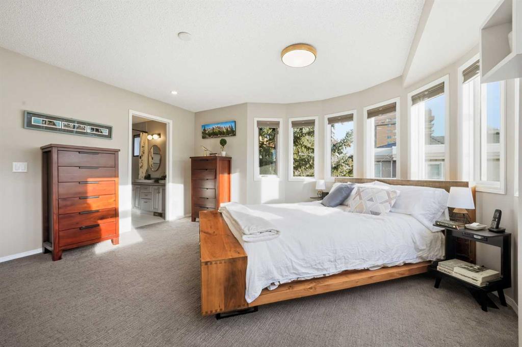 Upstairs, two generously sized bedrooms are complemented by a RECENTLY RENOVATED ENSUITE BATHROOM blending style, space, and elegance. The upstairs closet has been transformed into an impressive and highly functional LAUNDRY ROOM, right next to the two main bedrooms. HIGH-END GRABER BLINDS ARE IN PLACE THROUGHOUT the home providing enhanced comfort, privacy, and visual appeal.