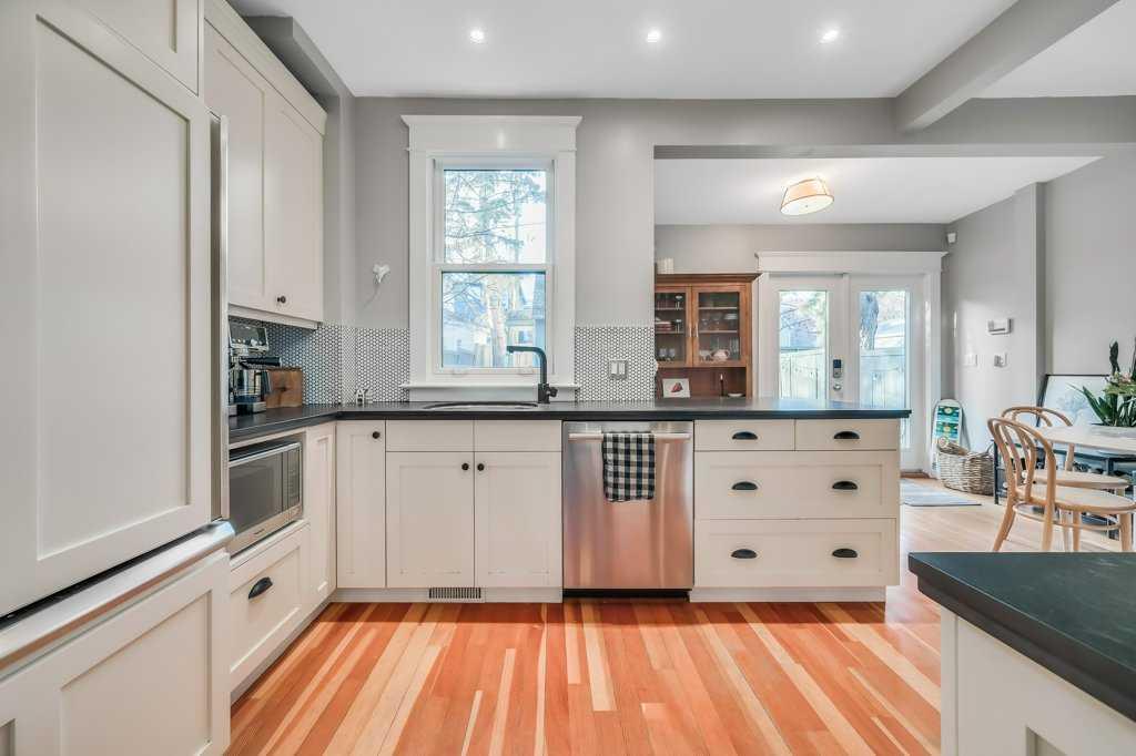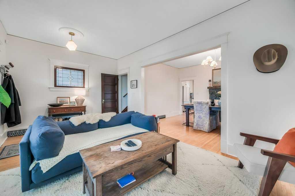 Timeless character and modern comfort come together beautifully in this exceptional two-storey home, perfectly nestled in the heart of Bankview. Built in 1911, this residence tells a story one of craftsmanship, charm, and thoughtful updates that allow you to enjoy the soul of a historic home without sacrificing today’s conveniences. From the moment you arrive, the inviting east-facing front porch sets the tone, offering the perfect spot to enjoy a quiet morning coffee as the neighborhood comes to life. Step through the front door and into a warm, welcoming main floor where original character details shine. The generous living and dining spaces are ideal for hosting friends or cozy family gatherings, highlighted by a decorative fireplace mantle with tiled surround, Schoolhouse Electric lighting, and Hunter Douglas cordless blinds. Upgraded Pella windows fill each room with natural light. The heart of the home is the kitchen—rich in texture and design—with exposed brick, custom cabinetry, a penny tile backsplash, and a Viking 6-burner gas range paired with a premium Vent-A-Hood. Custom banquette seating with hidden storage creates a welcoming space for everyday meals and lingering conversations. From here, step into the west-facing backyard featuring new sod, low-maintenance landscaping, and the convenience of a double detached garage. A charming 2-piece guest bathroom with exposed brick completes the main level. Upstairs, three thoughtfully laid-out bedrooms offer peaceful retreats. The primary bedroom feels like a true escape with its dressing/sitting area and dual walk-in closets. One of the secondary bedrooms opens onto a private patio overlooking the backyard—an unexpected and delightful place to unwind. The third bedroom is great size with a walk in closet. The fully renovated bathroom is spa-inspired, featuring in-floor heat, a tiled walk-in shower with built-in bench, rain and wall-mounted shower heads. Beyond its beauty, this home offers exceptional comfort and efficiency with brand new central air conditioning and a $20,000 insulation upgrade, including fully removing all old insulation and appling two pound spray-foam to the attic with blown-in insulation on top and a fully spray-foamed basement. The balcony was also fully redone with new dura deck, glass railings and new exterior door. Roof shingles, eavestroughs, and downspouts were replaced in 2019. The furnace and hot water tank have also been replaced. The home is truly modernized with all the appropriate and costly repairs done, providing peace of mind for years to come. The basement is undeveloped with a 3-piece bathroom rough-in, offering endless potential to make the space your own. Located just steps from vibrant 17th Avenue SW, you’ll enjoy easy access to all the amenities. The revitalized park at the end of the street invites everything from playground adventures to quiet afternoons with a book. This is more than a home—it’s a lifestyle, and a rare opportunity to own a piece of Calgary’s history