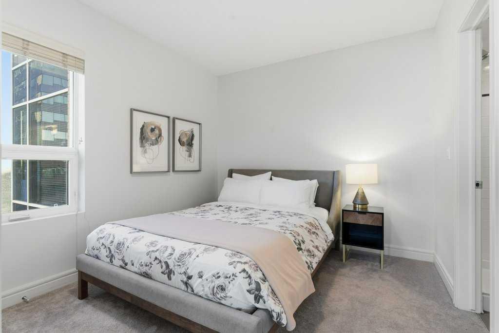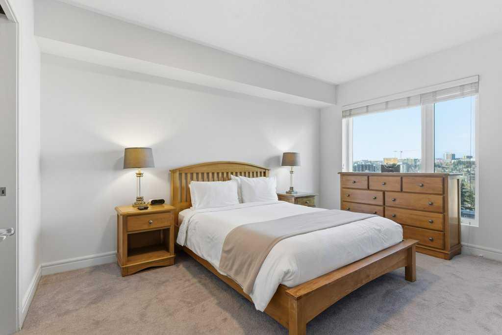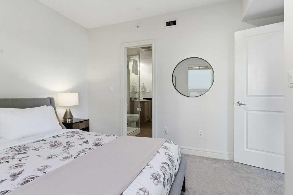 Urban Living at Its Best — Fully Furnished Executive Suite at Five West II. Experience luxury downtown living without the luxury price tag. This stylish, fully furnished 8th-floor executive suite in Five West Phase II delivers unbeatable river and city views — including the Bow River, Peace Bridge, and Kensington — by day and by night. The smart open-concept layout is designed for real life in the city. Host friends comfortably, work from home, or enjoy a cozy night in front of the gas fireplace with your favorite wine. Floor-to-ceiling windows flood the living and dining area with natural light, highlighting the sleek kitchen featuring Legacy cabinetry, granite counters, and stainless steel appliances. The spacious primary suite offers room for a king-size bed, a walk-in closet, and a private ensuite with modern finishing. A generous second bedroom with a cheater ensuite is perfect for guests or a home office. You’ll love the thoughtful extras too — front entry work-nook or storage option, in-suite laundry, air conditioning, and laminate flooring throughout. Titled underground heated parking + storage locker. Five West II brings elevated amenities to your doorstep, including a residents’ lounge with billiards and full kitchen, outdoor terrace, car wash bay, and full-time concierge service. Step outside and you’re moments from the Bow River pathways, Prince’s Island Park, top-tier dining, boutique shopping, transit, and downtown energy. This turnkey suite shows beautifully and offers the ultimate downtown lifestyle — views, convenience, comfort, and sophistication. Move in and start living your best city life.
