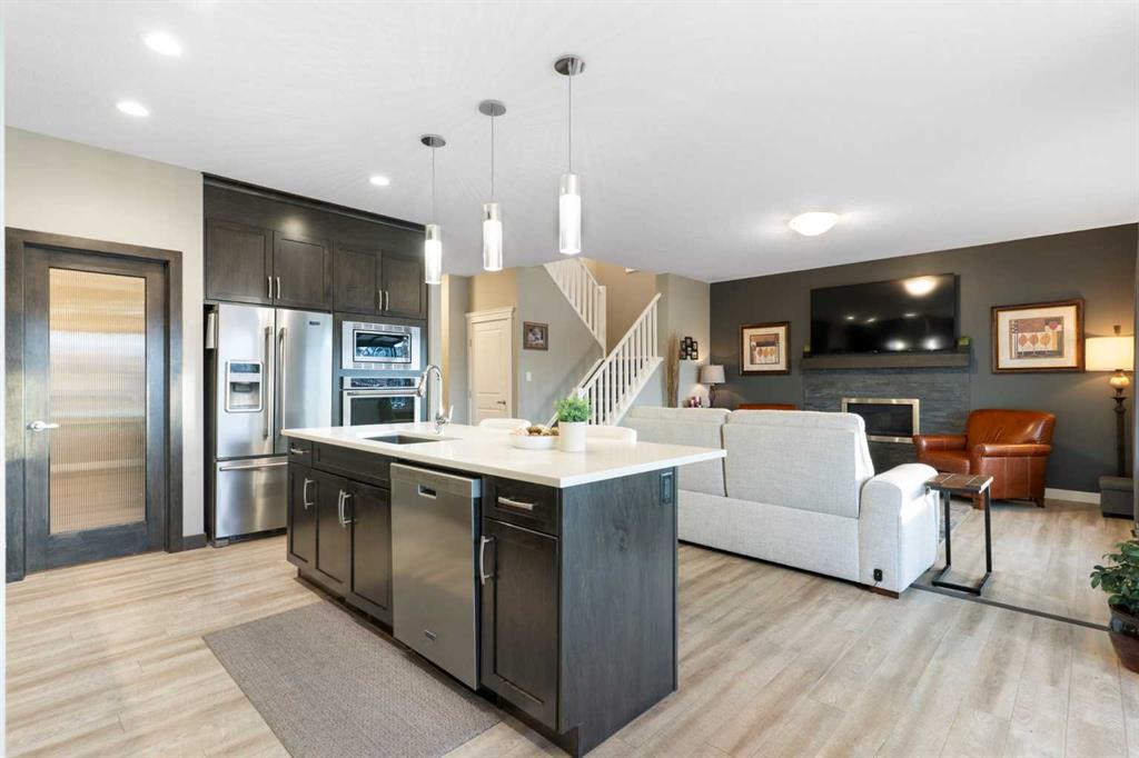 Backing onto peaceful greenspace and wetlands, this beautifully maintained two-storey home in Fireside offers a rare combination of privacy, functionality, and thoughtful upgrades throughout. With a fully finished walkout basement and partial mountain views, this home is designed to enjoy every season.