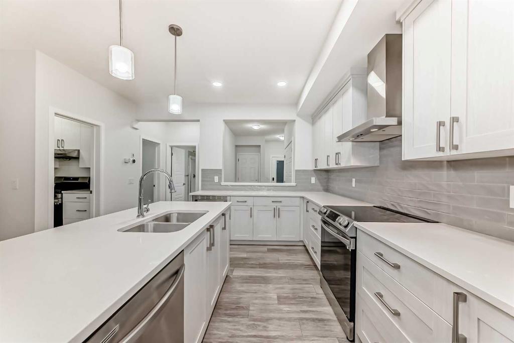 Welcome to 165 Savanna Passage NE, a 2023 built stunning fully upgraded two-storey home with a double front-attached garage and over 3000 square feet total finished area. This beautiful property features a total of 7 bedrooms and 4 full bathrooms, including a main floor bedroom with a full bath, perfect for guests or multigenerational living. The chef-inspired kitchen includes a spacious central island with granite countertops, stainless steel appliances, and an electric range, while the fully equipped spice kitchen offers a gas range and extra prep space. The upper floor boasts 4 bedrooms, 2 bathrooms, a vaulted ceiling bonus room, and convenient upper-level laundry. The fully developed legal basement suite comes complete with 2 bedrooms, a 3-piece bathroom, a separate entrance, and its own dedicated furnace, ideal for rental income or extended family. Additional upgrades include 9-foot ceilings on both the main floor and basement, central A/C, a water softener, and low-maintenance landscaping featuring rock, stone, and concrete (no grass). Located in Savanna, a family-friendly neighbourhood close to schools, playgrounds, parks, shopping centres, restaurants, grocery stores, and transit, this move-in-ready home is under builder warranty and available for immediate possession. A rare opportunity to own a modern, income-generating property in one of NE Calgary’s most desirable communities. Call to book your private showing today!