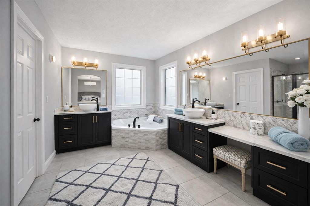 Upstairs, a west-facing bonus room offers access to the front balcony, giving you sunrise coffees and sunset views over the valley. Four bedrooms complete the upper level, including a peaceful primary suite with French doors, a second fireplace, a jetted tub, dual sinks, and a walk-in shower.
