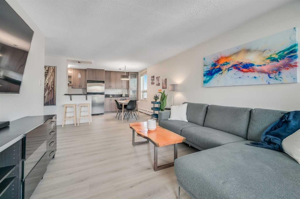 The Ultimate Turn-Key Urban Sanctuary at Centro 733 | 8th Floor Views & All-Inclusive Living. Where sophisticated modern design meets the effortless energy of downtown living in the heart of Calgary’s most vibrant district—the Beltline. This isn’t just a condo; it is a meticulously maintained executive residence that offers an unparalleled lifestyle for the urban professional or a high-yield opportunity for the savvy investor. Positioned on the 8th floor, this bright, north west-facing corner unit is flooded with natural light through expansive windows, framing breathtaking city skyline views that transform into a sparkling backdrop of lights every evening. The thoughtfully designed open-concept layout features two spacious bedrooms and 1.5 bathrooms, maximizing both private comfort and social functionality. The primary suite serves as a quiet retreat, complete with a private 2-piece ensuite for added convenience. The secondary bedroom is perfectly versatile, ready to serve as a guest room, or a dedicated home office for those who work remotely. At the heart of the home lies a stylish gourmet kitchen that will delight any chef, featuring sleek granite countertops, custom cabinetry, a built-in wine rack, and a raised breakfast bar. A newer electric stove complements the high-end stainless steel appliances, while brand-new luxury vinyl plank flooring flows throughout the entire unit, providing a modern, durable, and cohesive aesthetic. Every wall has been freshly painted creating a move-in-ready space that feels brand new from the moment you step through the door. What sets this property apart is the incredible value and simplicity it offers. In an era of rising costs, you can enjoy total peace of mind with a monthly condo fee that is truly all-inclusive. Your heat, water, and electricity are all covered, allowing for predictable monthly budgeting with no hidden surprises—you know exactly what your living costs are every single month. Furthermore, this is a rare "plug-and-play" real estate opportunity. To make this transition even more seamless, the owner can offer the property fully furnished. From the stylish furniture and curated decorations down to the very last kitchen utensil, everything could be included in the sale. For a first-time homebuyer, this means moving in with nothing but a suitcase. For the investor, this unit is primed to launch as a high-end Airbnb or executive rental from day one. Beyond the unit, residents enjoy access to an onsite fitness center, a social room for gatherings, secure storage lockers, and optional private bike storage. The building is pet-friendly. Outside your door, the best of Calgary awaits. You are mere steps from the iconic 17th Avenue, home to the city’s trendiest cafés, award-winning restaurants, boutique shops, and lush urban parks. Whether you are commuting to the downtown core on foot, biking along the extensive pathway system, or enjoying a night out at a local pub, everything you need is within reach. Come on buy!
