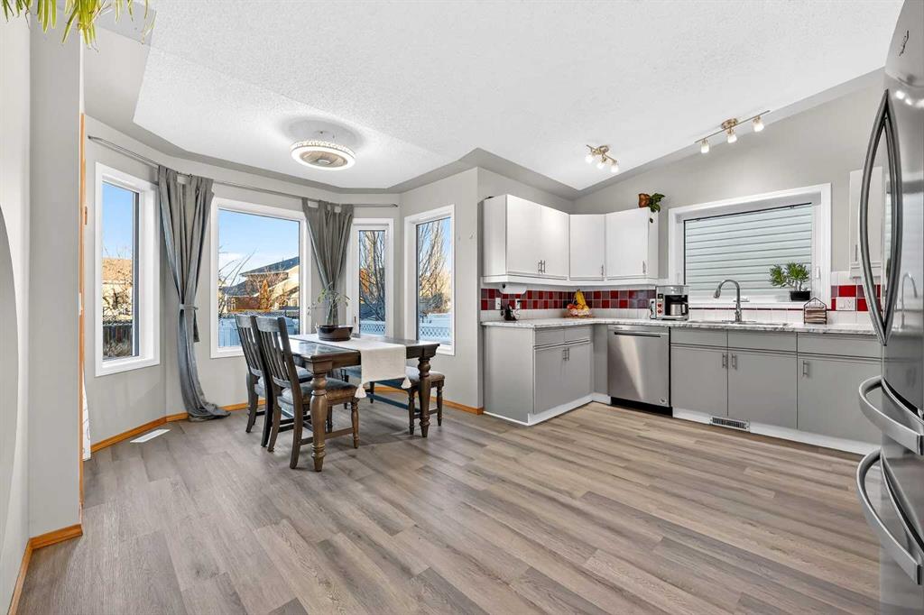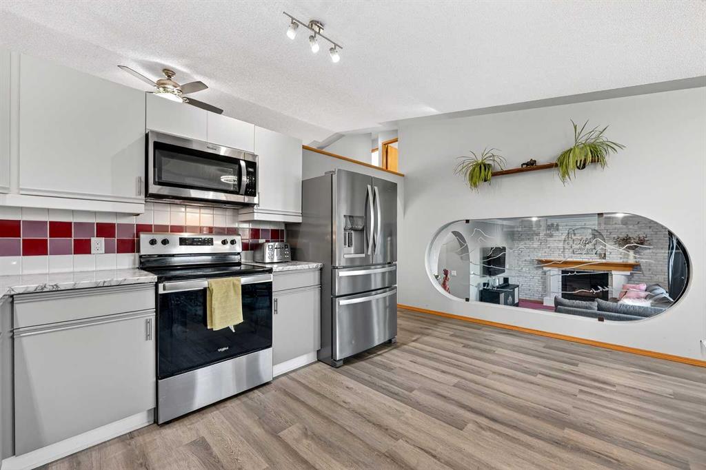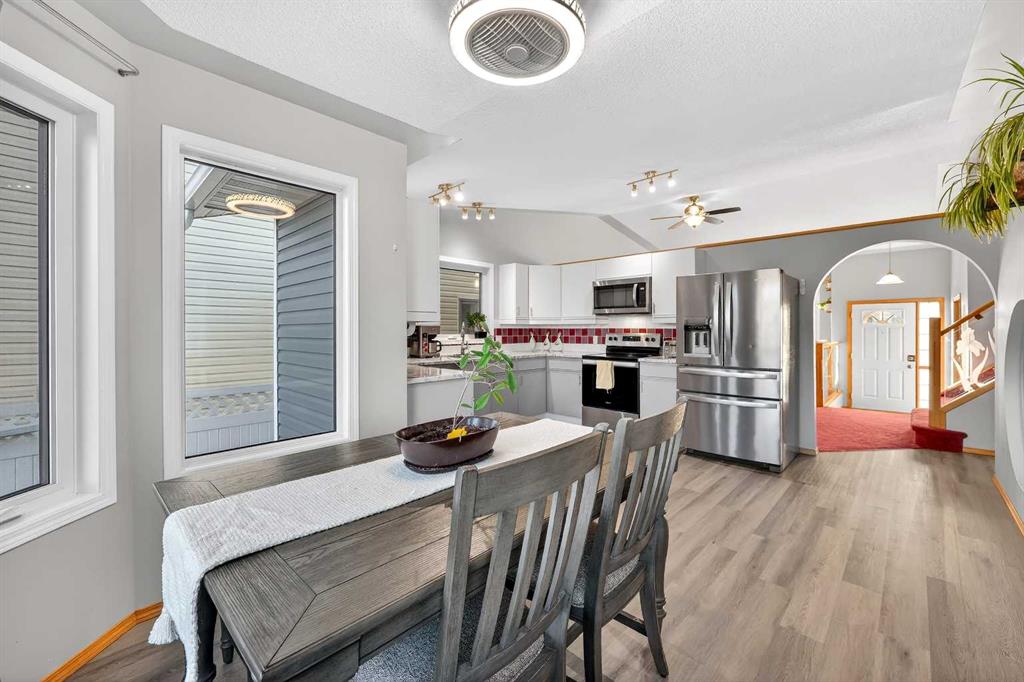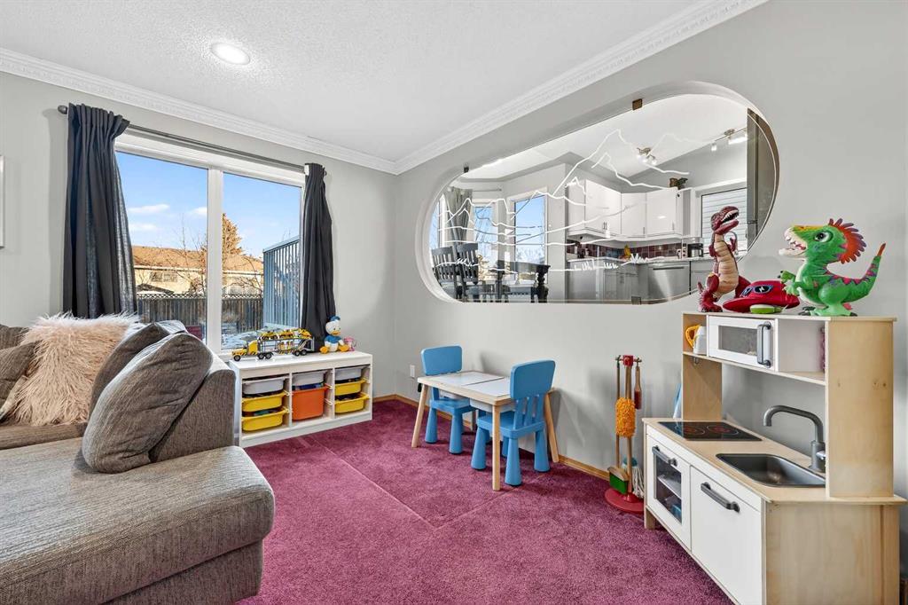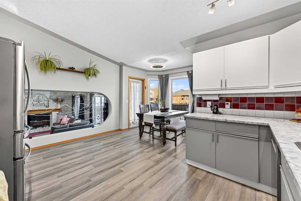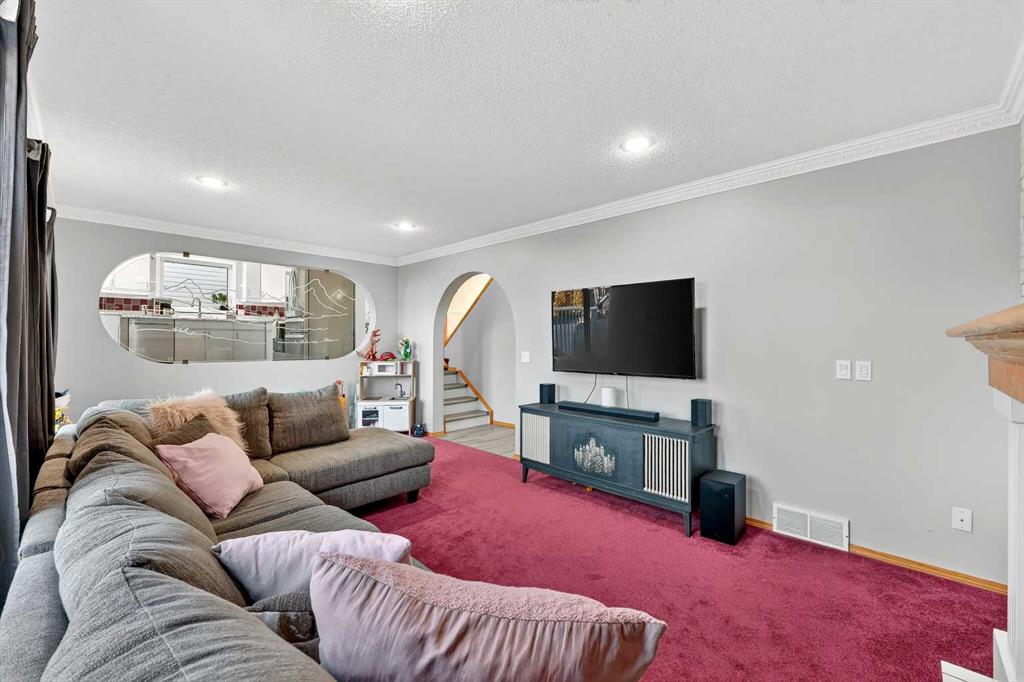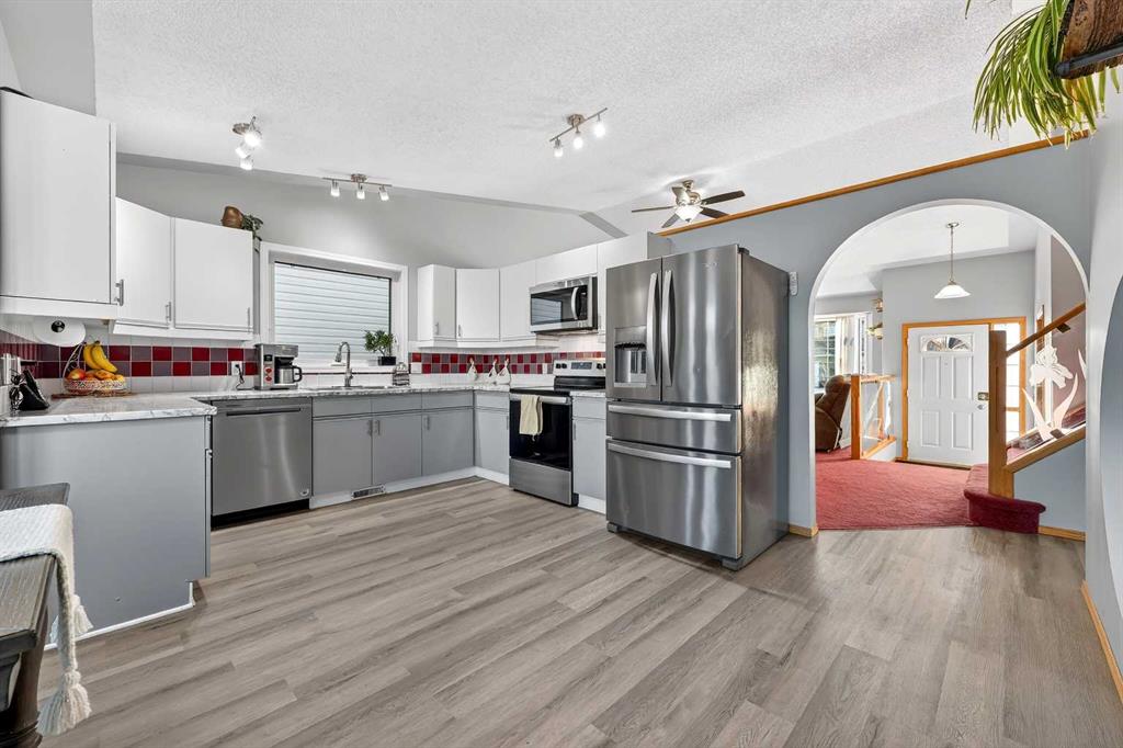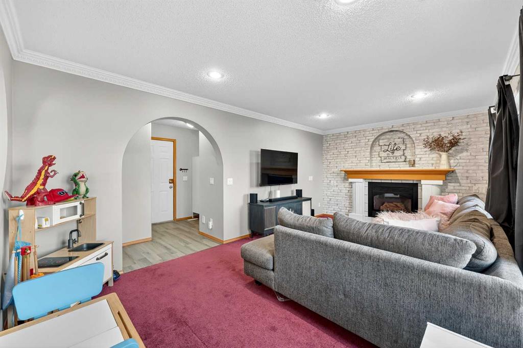 They don’t make them like this anymore !! This splendid 3 bed/2.5 bath large family home has been lovingly maintained and updated through the years and offers features unique to other 4-level splits. A wide and inviting entrance leads to an expansive main floor with vaulted ceilings, front living room, formal dining room, and updated kitchen featuring new vinyl flooring, stainless steel appliances (2024), updated counters, and trendy two-tone cabinets. Stunning glass wall insert looks into the third level family room – excellent for watching the little ones while preparing lunch! Upper level offers a king-sized primary bedroom with large walk-in closet & closet organizers and updated 3-piece ensuite with oversized shower! Secondary bedrooms are of generous size and share an updated full bathroom with full vanity (both drawers and cupboards!) and plenty of counter space! Skylight and glass inserts in the railings to the upper landing provide even more light and openness! The third level is a cozy place with a huge family room and updated 2-piece bathroom & laundry combination. Over-sized windows, updated gas fireplace and plenty of room for toys or crafts makes this area a family favourite! Level four is almost fully developed and presents ANOTHER space to socialize! The rec room is perfect for the gaming teenager, and the flex room is ideal as an exercise room, has a plumbed sink and rough-in for a future fourth bathroom! Unlike other 4th levels, this one has windows! If that isn’t enough, wait until you see the incredible storage in the 5’ tall crawl space! Wow! Other upgrades and features include New Vinyl Flooring in all bathrooms and kitchen, New Toilets, Sinks & Faucets, Newer windows (2013), H2O tank (2016), Roof & Siding (2014) and Newer lighting! New exterior doors are on order and will be installed prior to possession! Check out the sweet Over-sized, Heated and Fully Finished garage! New dedicated electric panel with 220, New garage door & door opener and New lighting! The front yard provides a sprinkler system and a nice patio to sit in the morning while the backyard features an expansive brick patio and lots of space for play. With a lot over 5000 sq.ft, there is plenty of room to build an additional detached garage with back lane access. Current owner already has City permits and plans, even a carriage house above is an option! Located on a quiet street 5 minutes to Deerfoot, schools, walking paths and shopping, the family-friendly neighbourhood of Meadowbrook is the perfect place to start or grow your own! (Exterior discoloration above garage in photos is dirt and will be cleaned when weather improves).