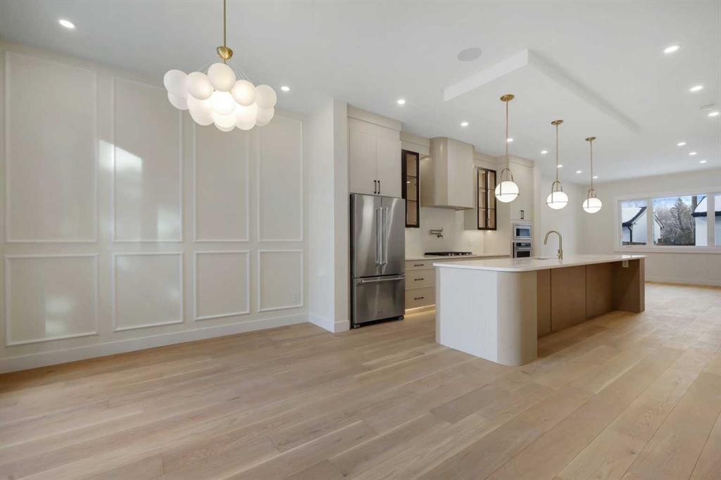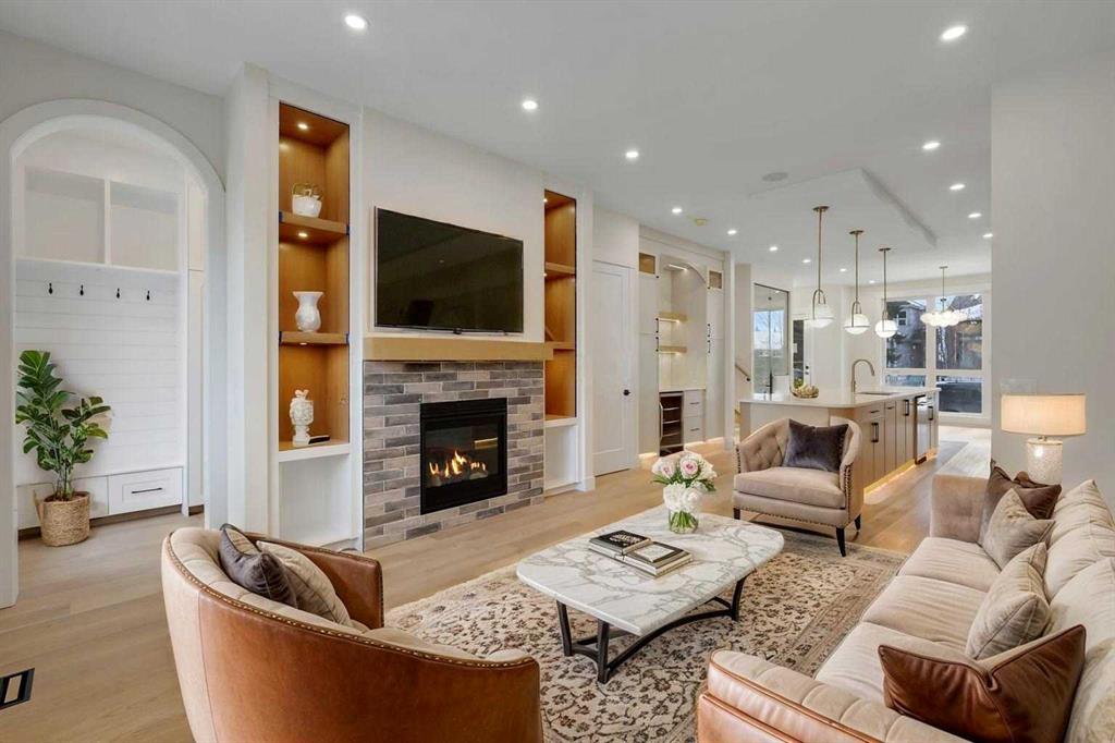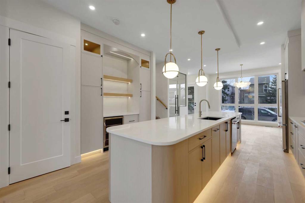 Nestled on a beautiful tree-lined street in Mount Pleasant, this stunning luxury infill is designed with both growing families and professionals in mind. From the moment you step inside, you’re greeted by a spacious foyer with custom built-ins, setting the tone for a home that balances elegance and functionality. The main floor features soaring 10-ft ceilings and an open concept layout, with a bright dining area that seamlessly flows into a chef-inspired kitchen complete with a 14-ft island, built-in appliances, coffee bar, and a convenient pocket office. The cozy living room centers around a gas fireplace, while a mudroom and powder room add practicality to the rear of the home. Upstairs, the vaulted primary retreat includes a walk-in closet and a spa-like 5-piece ensuite with in-floor heating, steam shower, freestanding tub, and dual vanities. The basement offers a 2-bedroom legal suite (subject to City of Calgary approval), perfect for extended family or rental income. A fully fenced and landscaped backyard, plus a double detached garage, complete this incredible property. This exceptional home offers the perfect blend of urban convenience and natural beauty. Just minutes from Confederation Park, you'll enjoy easy access to walking paths, playgrounds, and expansive green space—an ideal retreat without leaving the neighbourhood. Commuting is effortless with quick connections to 16th Avenue, 4th Street, downtown, and Kensington. Families will appreciate the close proximity to highly regarded schools, while nearby coffee shops, local eateries, and weekend markets enhance the vibrant, community-focused lifestyle that defines this sought-after inner-city neighbourhood.