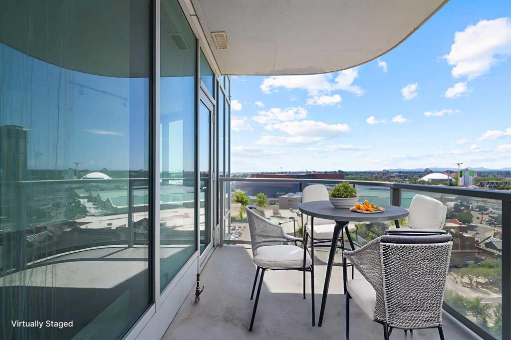 Welcome to luxury living in the iconic Arriva tower located in the arts and entertainment district! This move-in-ready 2 bed, 2 bath, 2 parking stall, corner unit boasts panoramic city views and an abundance of natural light through its floor-to-ceiling windows, and is available for immediate possession. Positioned on a high floor, this modern space is designed for both comfort and style, with an open-concept layout that takes full advantage of its prime corner location. The sleek contemporary kitchen is a chef’s dream, featuring quartz countertops, a gas cooktop, integrated refrigerator, built-in oven, and ample cabinetry that keeps the look clean and sophisticated. Entertain in the spacious dining and living area while soaking in Calgary’s skyline views from every angle. Both bedrooms are generously sized, offering excellent separation for privacy. The primary suite is a true retreat with a walk-through closet and a large spa-inspired ensuite that provides extra counter space and a deep soaker tub. The second bedroom is ideal for guests, a home office, or a roommate, complete with its own full bathroom just steps away. Convenience is maximized with in-suite laundry, two titled underground parking stalls, and a separate assigned storage locker — a rare find in urban living! The Arriva is renowned for its top-tier amenities, including a beautiful rooftop patio to enjoy summer evenings, a stylish guest suite for out-of-town visitors, a well-appointed party room, and professional concierge service that adds an extra layer of comfort and security. Situated in the heart of the Beltline, you’re just steps away from Stampede Park, the Saddledome, trendy cafes, renowned restaurants, and the vibrant arts and entertainment scene that downtown Calgary has to offer. Whether you’re a professional seeking a lock-and-leave lifestyle or looking for a spacious urban home, this stunning corner unit is ready to welcome you home. Don’t miss your chance to own in one of Calgary’s most sought-after high-rises — book your private tour today!