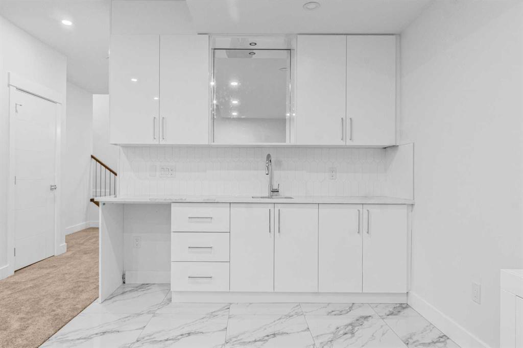 Discover this stunning brand-new semi-detached infill, perfectly blending modern style with classic finishes on a quiet, tree-lined street. With over 2,900 sq ft of living space, this home offers more room than the average semi-detached, making it ideal for a growing family—plus it’s close to top-rated schools & parks. The main floor is flooded with natural light from oversized South facing windows and features an open layout perfect for entertaining. Enjoy the spacious front dining room, a large central kitchen island, and sliding patio doors that connect the rear living room to the backyard. Upstairs, the luxurious primary suite offers vaulted ceilings, beautiful windows, a nearly 100 sq ft walk-in closet, and a spa-like ensuite. Two additional bedrooms, a stylish 4-piece bath, and a convenient laundry room complete the upper level. The finished basement includes a large rec room and a fourth bedroom—ideal as a guest suite, office, or gym. Outside, enjoy a private backyard and double detached garage, all just steps from 4th Street amenities, several parks, schools, and also downtown. Amazing value and quality build!