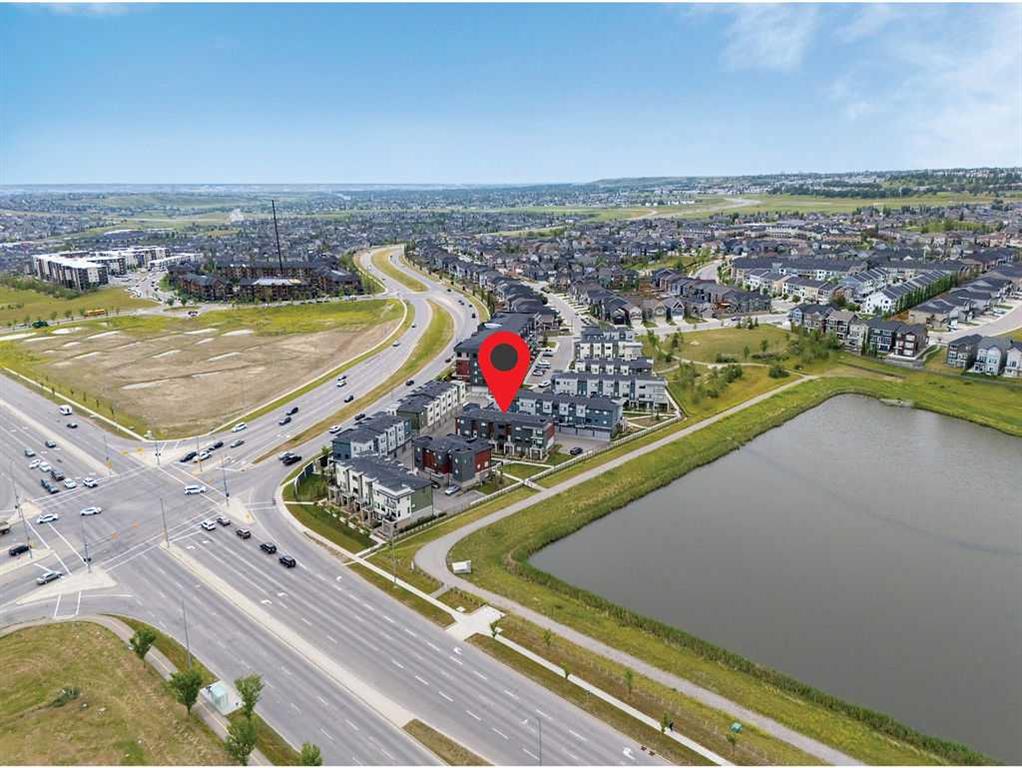 Welcome to this exceptional, fully upgraded townhome located in the highly desirable Diseno Development of Sherwood in NW Calgary. Offering 1,565 sq. ft. of thoughtfully planned living space, this sun-filled home is perfectly positioned just steps from the community park and pond, providing tranquil views and a peaceful setting, while still being within walking distance to the everyday conveniences of Sage Hill Crossing. From the moment you enter, you’ll appreciate the modern design and attention to detail throughout. The entry level features a versatile flex or bonus room, ideal for a home office, fitness area, media room, or hobby space—perfect for today’s flexible lifestyle. Access to the side-by-side double attached garage adds both functionality and everyday convenience. The main living level is bright, open, and designed for both entertaining and comfortable daily living. Large windows allow natural light to pour in while showcasing picturesque park views. The contemporary rear kitchen is a standout, complete with quartz countertops, upgraded stainless steel appliances, ample cabinetry, and a functional layout that opens seamlessly to the dining area. The spacious living room sits at the heart of the home, creating an inviting space to gather with family or unwind at the end of the day. Step out onto either the front or rear private balcony to enjoy morning coffee, evening sunsets, or outdoor entertaining. Upstairs, the well-appointed upper level offers three generously sized bedrooms and two full bathrooms. The bright and airy primary suite serves as a private retreat, featuring a walk-in closet and a luxurious ensuite with a walk-in shower and modern finishes. The additional bedrooms are spacious and versatile, ideal for family members, guests, or additional workspace. This home was built with a full builder upgrade package and includes laminate flooring on the main level, window coverings throughout, and enhanced exterior finishes with Hardie Board siding, stucco accents, and brick detailing, giving the property timeless curb appeal. Pride of ownership is evident throughout this beautifully maintained residence. Ideally located close to public transportation, major roadways, schools, parks, and shopping at Beacon Hill and Sage Hill Plaza, this townhome offers the perfect balance of comfort, style, and convenience. An excellent opportunity to own a modern, move-in-ready home in one of NW Calgary’s most sought-after communities.