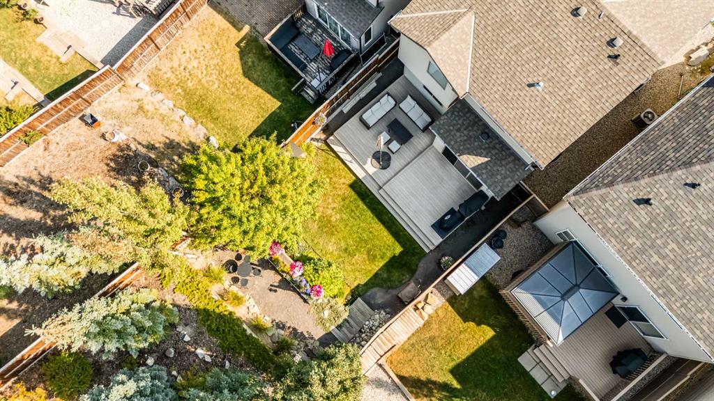 Located on a quiet crescent in the desirable community of Springbank Hill, this two-storey home offers over 2,800 square feet of thoughtfully developed living space, a double attached garage, and a private west-facing yard. With four bedrooms and three-and-a-half bathrooms, the layout is well suited for both everyday living and entertaining. The main floor is defined by rich hardwood flooring, nine-foot ceilings, and large windows that fill the space with natural light. A spacious entryway welcomes you inside, where a graceful archway connects the foyer to the open-concept living, dining, and kitchen areas. The kitchen is both functional and refined, featuring granite countertops, stainless steel appliances including a gas range, a corner pantry, generous cabinetry, and a central island with seating. The living room is anchored by a cozy gas fireplace, while the dining area offers easy access to the back deck through sliding doors. Completing this level are a two-piece powder room and a combined mudroom and laundry area conveniently located off the garage. Upstairs, plush carpet leads to a large bonus room with a vaulted ceiling, creating a comfortable space for relaxation or play. The primary bedroom is set apart as a true retreat, accessed through double doors and offering a walk-in closet along with a well-appointed four-piece ensuite that includes a soaker tub and a standalone shower. Two additional bedrooms are generously sized, one with its own walk-in closet, and are served by a four-piece bathroom. The fully developed basement adds valuable versatility, enhanced with upgraded soundproofing. A massive recreation room provides ample space for media, games, or gatherings. An additional bedroom with French doors and a walk-in closet can also function as a fitness room or home office. A four-piece bathroom and a separate storage room complete the lower level. Additional features include air conditioning for warm summer nights, a radon mitigation system, and a garage that comfortably accommodates a standard truck. The private backyard is a standout feature, thoughtfully designed for enjoyment throughout the seasons. Facing west and surrounded by mature trees, it offers a sense of seclusion rarely found. A large composite deck leads to tiered terraces that create multiple outdoor living areas. The yard is home to an abundance of flowers, berry bushes and hops. Aspen Landing, with its shops, restaurants, and services, is just a ten-minute walk away. The home is minutes from Guardian Angel School, Calgary Academy, Rundle College, Ernest Manning, and Ambrose University, as well as the West Side Rec Centre, WinSport, and Pinebrook Golf Club. Parks, playgrounds, pathways, and convenient access to 17th Avenue, Stoney Trail, and the 69th Street LRT station make commuting easy, with downtown Calgary reachable in approx 20 minutes. Book your showing today and take time to explore the floor plans and 3D tour for a closer look ahead of your visit.