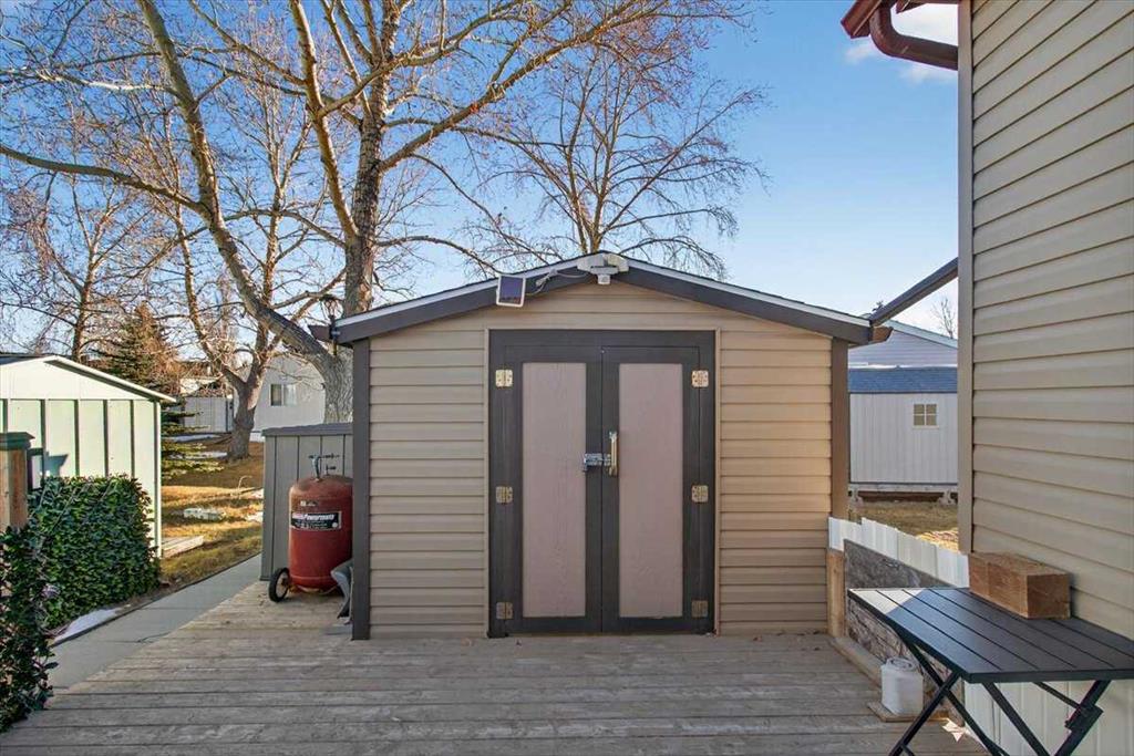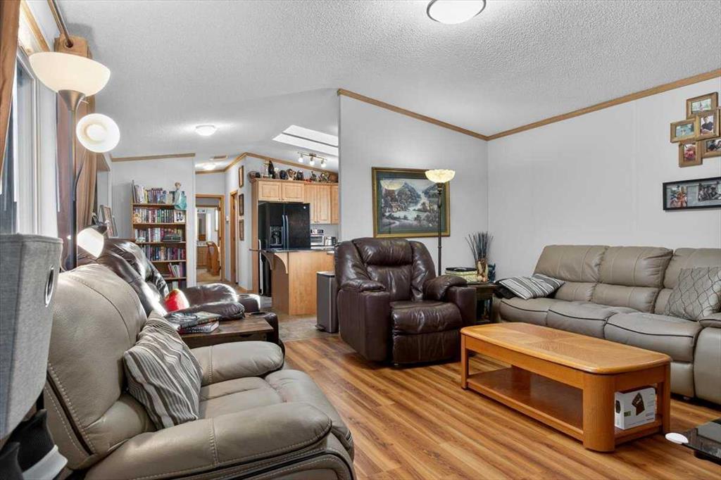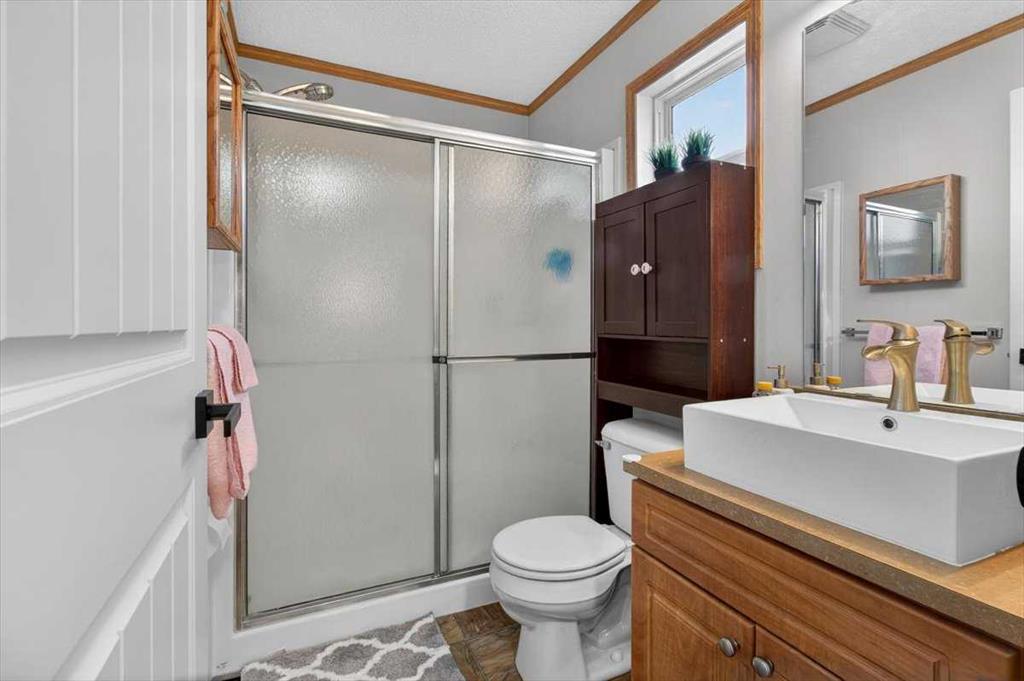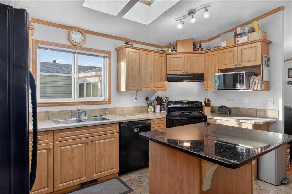 Welcome to this beautifully maintained and move-in ready 3-bedroom, 2-bathroom home featuring an addition, covered carport, and AIR CONDITIONING! This is the largest unit currently available and 2012 is the newest year too. Located in Watergrove Park, one of Calgary’s most desirable and exceptionally managed 45+ communities, this property offers a wonderful combination of comfort, convenience, and community living. Enjoy access to fantastic amenities including a pool, hot tub, sauna, gym, community library, party room with kitchen, and even additional laundry facilities. For those who travel or need extra space, RV, boat, and trailer storage is also available. Inside, you’ll find a bright and open floor plan with vaulted ceilings that enhance the spacious feel. The central kitchen is the heart of the home, featuring a large island, walk in pantry, plenty of beautiful wood cabinetry, and two skylights that fill the space with natural light. The thoughtful layout offers a generous dining area and a cozy living room—perfect for entertaining or relaxing.The primary suite is expansive, complete with a walk-in closet and a large ensuite featuring a soaker corner tub. On the opposite side of the home, two additional bedrooms and the main bathroom provide comfortable space for guests or hobbies. The addition offers a versatile bonus room currently used for storage, with access to a private back patio and a well-built storage shed. There’s even extra storage space under the front porch for your outdoor or seasonal items. Notable updates include a 2-year-old hot water tank and a regularly maintained furnace. Your monthly lot fee covers water, sewer, recycling, garbage pickup, and full use of all clubhouse amenities. With Crowfoot Crossing just steps away, you’ll love the easy access to grocery stores, medical clinics, restaurants, banks, and even a movie theatre. The Crowfoot LRT station is nearby as well, making this one of the most connected and convenient locations in the city. This is a welcoming, active, and friendly community you’ll be proud to call home.