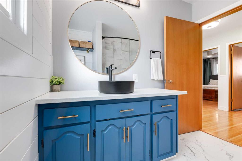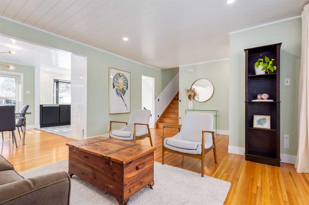 Located on a serene, tree lined street in the heart of one of Calgary’s most desirable northwest communities; this beautifully renovated four level split offers a perfect balance of timeless mid century character and modern design. With over 1,950 square feet of thoughtfully developed living space, this home is filled with natural light and showcases hardwood flooring, shiplap ceilings, warm wood paneling and a welcoming, well curated aesthetic throughout. The main level features a bright, open concept layout ideal for both everyday living and entertaining. At the heart of the home is the stunning designer kitchen, complete with two tone cabinetry, quartz countertops, premium stainless steel appliances and generous preparation and gathering space. The adjacent living and dining areas flow seamlessly, creating a comfortable and inviting environment. Upstairs, you will find three spacious bedrooms and a beautifully updated full bathroom. The lower level adds exceptional versatility, offering a fourth bedroom or home office, a renovated three piece bathroom and a functional combined laundry/mudroom designed to keep daily life organized. One level below, the cozy family room features a stylish electric fireplace with a wood slat accent wall; an ideal space for movie nights or relaxing evenings. Additional flexible space on this level is well suited for a playroom, home gym, or hobby area. Step outside to enjoy the private, south facing backyard, surrounded by mature, fruit bearing trees and lush landscaping. This outdoor space is perfect for entertaining, family activities or simply relaxing in the sun. Completing the home is an exceptional parking and storage setup, including a double detached garage plus a single attached garage, providing ample flexibility year round. What truly sets this home apart is its prime location in sought after Charleswood; a peaceful, family oriented community known for its mature trees, rolling terrain and proximity to key amenities. Enjoy easy access to the University of Calgary, top rated schools, Nose Hill Park and Confederation Park, C-Train transit, Triwood Arena and Community Centre, Brentwood Village, Market Mall and more. This is a rare opportunity for families, professionals, or anyone seeking a beautifully updated home in a vibrant yet tranquil setting. View the video tour via the media link and book your private showing today!