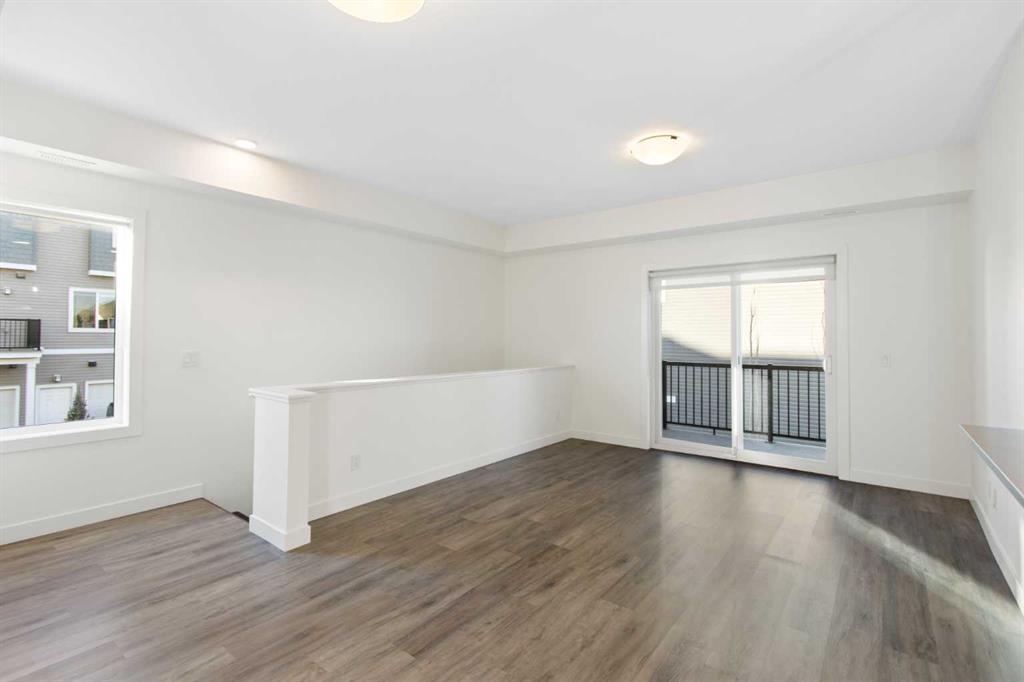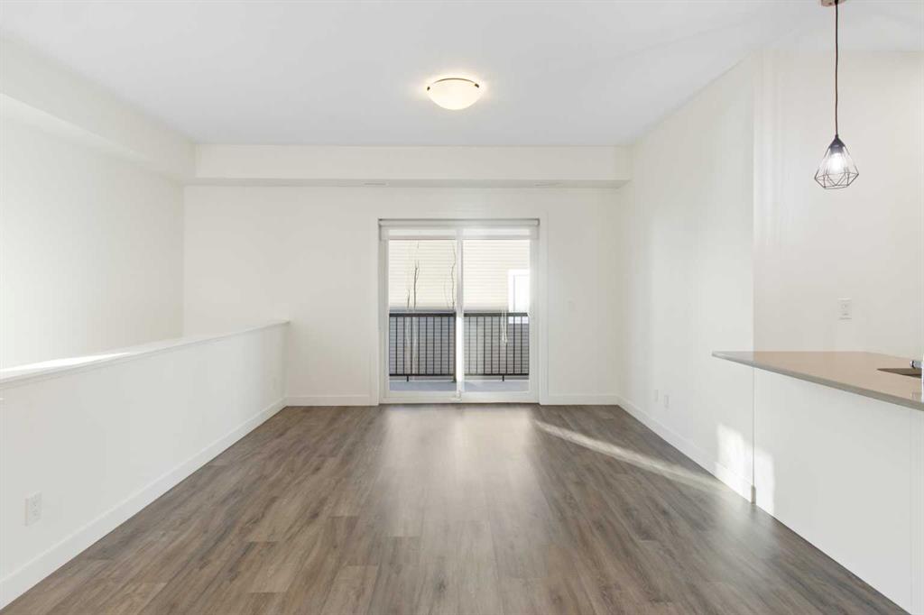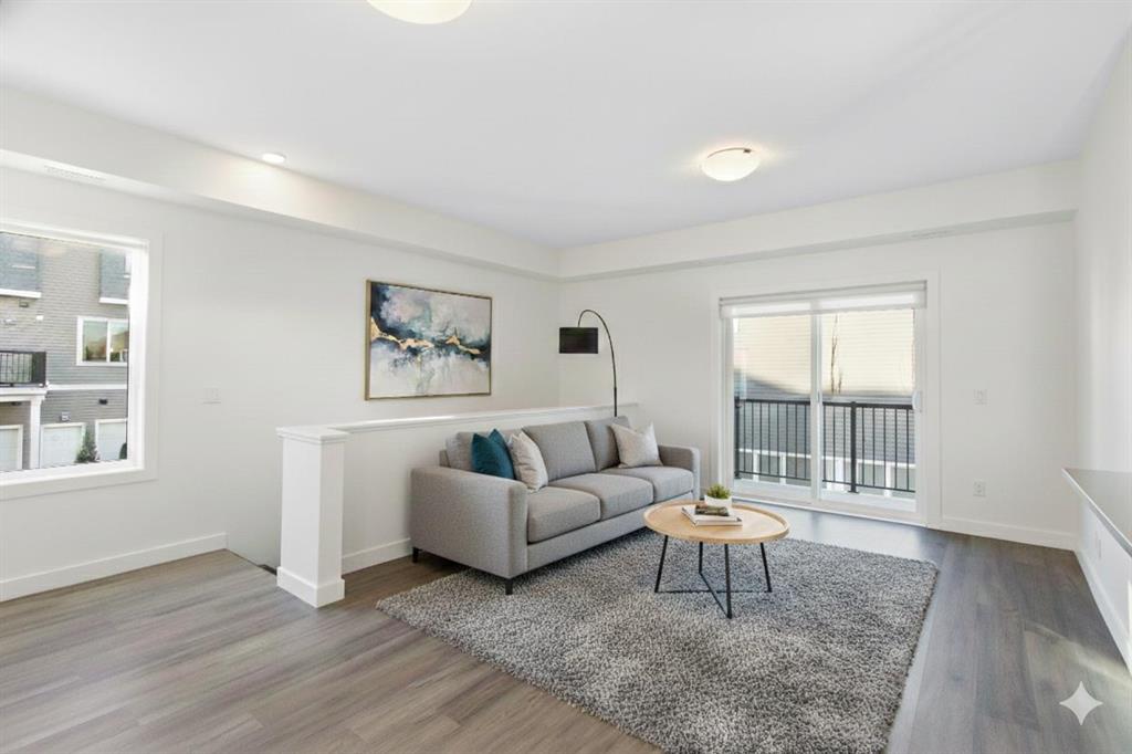 2 Bedroom 2 Bath END unit townhouse with a garage that offers the perfect blend of style and function, with most of the layout conveniently situated on a single level. Step inside and up 1 flight of stairs to the main floor and you will discover an open-concept living area with and a fully equipped kitchen boasting quartz countertops, soft-close drawers, and stylish two-tone cabinets highlighted by pendant lighting. An adjacent, flexible space is perfect for a spacious dining area or a home office. This home has two large bedrooms and two full bathrooms. The primary bedroom features a massive walk-in closet and a 4-piece ensuite. A spacious laundry room adds to the convenience. This unique floor plan is designed to feel like a modern apartment but with the added benefits of a main floor storage/flex area and direct access to an oversized, extended single-car garage.This home is perfectly situated to offer the best of both convenience and community. It's located right next to a future school site, with transit options directly at your doorstep for effortless commuting. Enjoy a short two-minute walk to Bow Valley High School, and a quick five-minute trip to the Spray Lakes Sports Centre for all your recreational needs. For bigger city amenities, you're only 20 minutes from South Calgary, and the mountains are within easy reach, with Canmore just a 40-minute drive away.