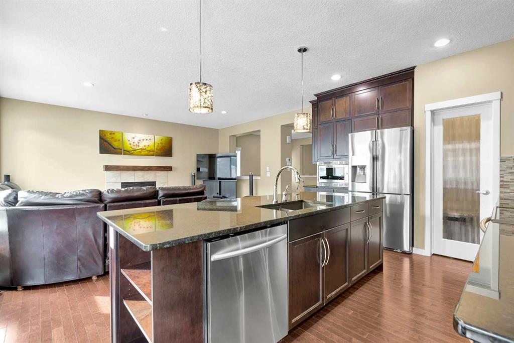 **Open House: Sun, Feb 22, between 1 pm and 4 pm**. Designed for comfort, style, and energy efficiency, this modern 2-storey smart home built by Morrison in Nolan Hill is loaded with premium upgrades throughout. Offering almost 2,400 sq. ft., the home features 3 bedrooms, 2.5 bathrooms, a main-floor office, and an oversized double garage. A solar panel system provides significant long-term savings (an estimated ~$1,200/year in solar credits) and powers a Level 2 EV charger. Additional highlights include central A/C, a fully fenced, low-maintenance south-facing stone backyard, high-efficiency two-zone furnace, radon mitigation system, recirculating hot water pump, whole-home dechlorination, and a security system. Proudly maintained by the original owner, this home shows 10/10: bright and move-in ready. The open-concept main floor boasts 9-ft ceilings, upgraded hardwood and tile flooring, a versatile den/home office, and a stunning chef’s kitchen with stainless steel appliances (oversized fridge), full-height cabinetry, granite countertops, large island, reverse-osmosis drinking water system, upgraded hood fan, and walk-in pantry. The space flows effortlessly into the spacious living area with a gas fireplace and the dining area, which opens onto a south-facing deck and backyard with gas BBQ hookup—perfect for summer entertaining. A convenient 2-piece powder room completes the main level. Upstairs offers upgraded carpet, upper-level laundry, a spacious primary retreat with walk-in closet and 5-piece ensuite, two additional bedrooms with walk-in closets, a full bath, and an expansive bonus room ideal for family movie nights. The unfinished basement with large windows awaits your personal touch. Further upgrades include Hunter Douglas blinds, Kinetico water softener, new water heater (2024), new roof (2025), and a new updated garage door(2025). Ideally located near parks, pathways, schools, Sage Hill shopping and dining, and major roadways, this home offers exceptional energy-smart living in a prime NW location. Book your showing today and experience this remarkable home for yourself.