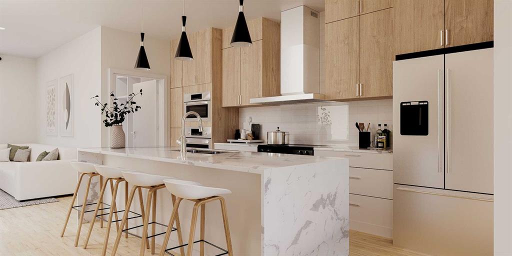 Welcome to 1129 Sailfin Heath | The Pinnacle of Harmony Living. Experience the perfect synthesis of Rocky Mountain adventure and sophisticated urban luxury in this exquisite early spring possession home by StreetSide Developments. Nestled just 45 minutes from Canmore in the award-winning community of Harmony, this residence stands as a masterclass in modern design, featuring over $40,000 in curated upgrades. The heart of the home is a gourmet chef’s sanctuary, boasting waterfall quartz countertops, sleek slab-style cabinetry, and an upgraded wine center tailored for seamless entertaining. As a fee-simple property, you enjoy the freedom of full ownership with no condo fees, while benefitting from a turn-key exterior that includes premium Hardie Board cladding, full fencing, professional landscaping, and a double detached garage.