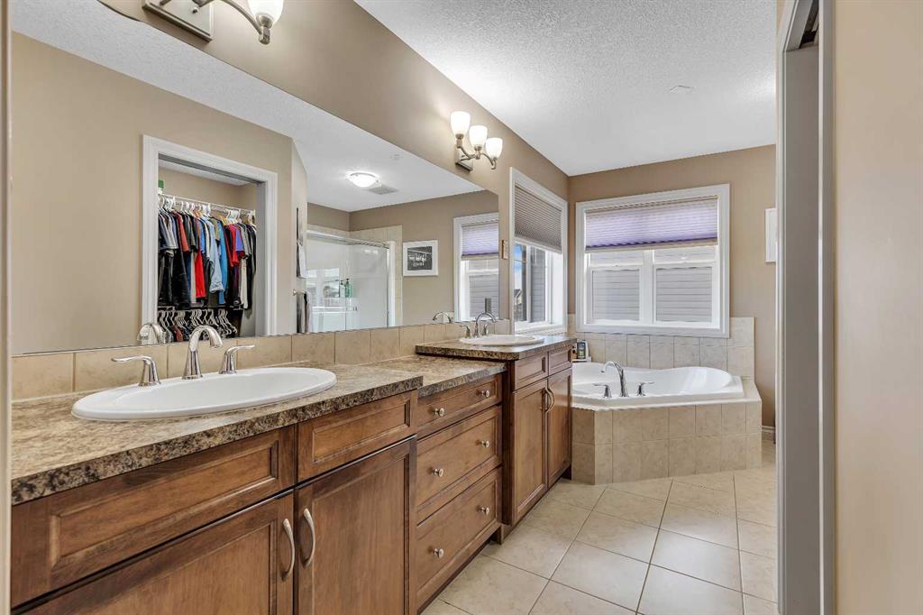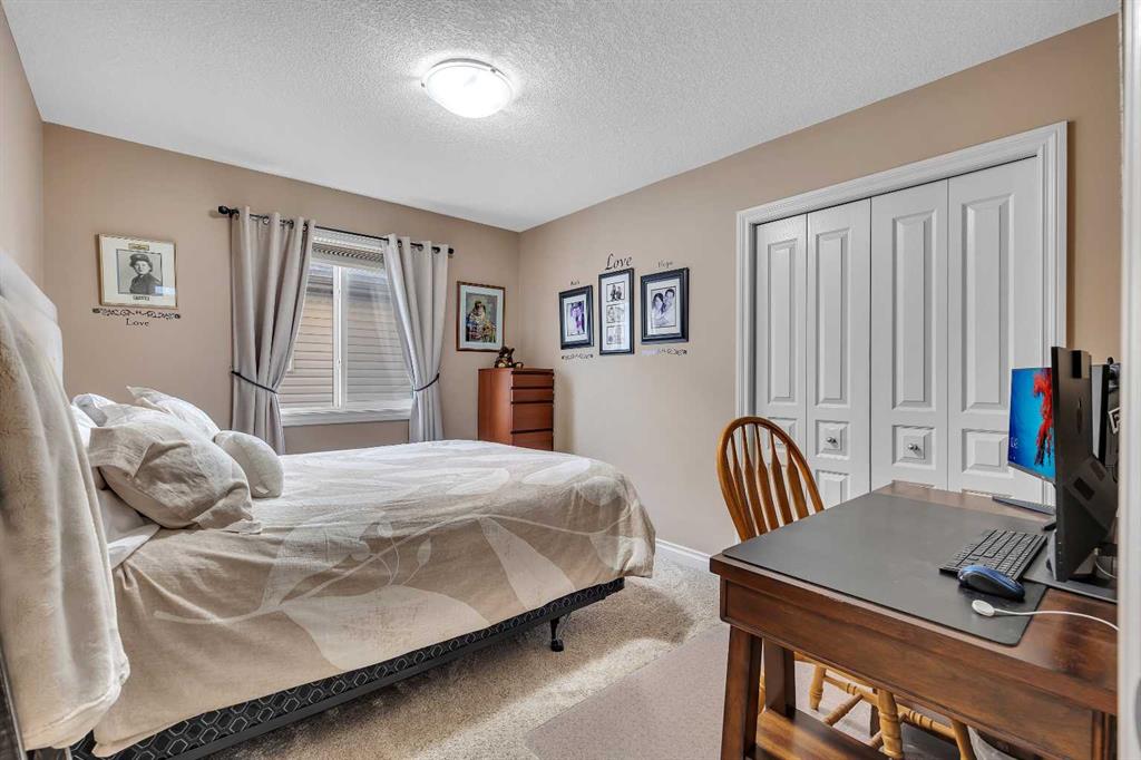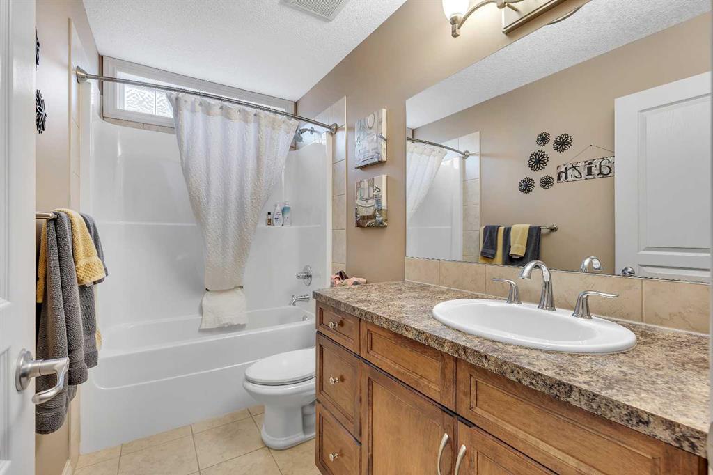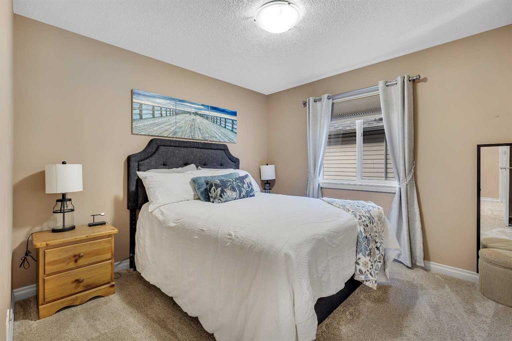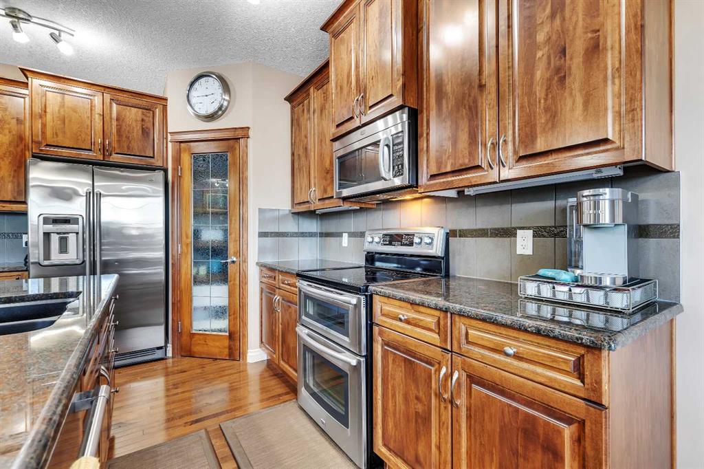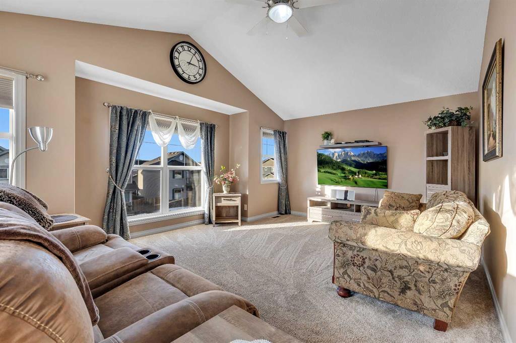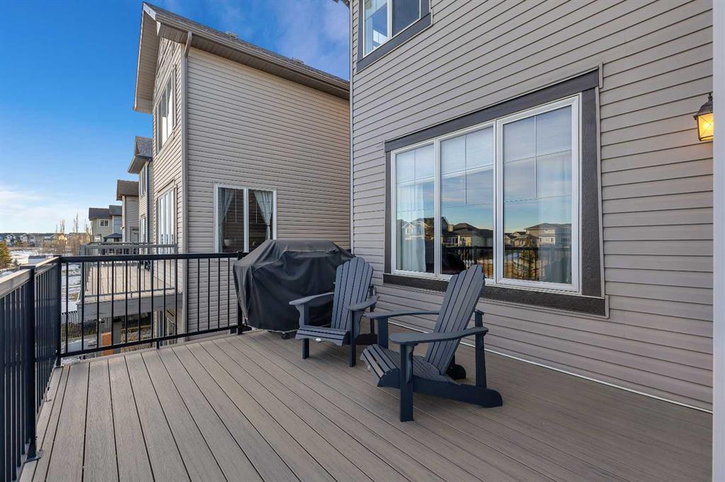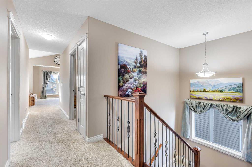 Location, Location, backing into the Canal & pathway. This original owner home offers numerous upgrades & features which include: 9' ceilings, vaulted bonus room, over 3300 sq ft of developed living space, total of 5 bedrooms & 3.5 bathrooms, walkout lower level, upgraded stainless steel appliances, newer composite deck, hardwood, granite in kitchen, wrought iron railings, 2 furnaces, upper furnace has air conditioning, R.I .for speakers on main & upper ensuite, gas line on deck, lower patio area from walkout, manual underground sprinklers in front yard & so much more. The main floor features a 2pc bath, flex room, laundry area, spacious great room with gas fireplace & a large kitchen that offers a pantry, island with eating bar & a nook that has access to the over sized deck that over looks the canal. The upper floor features a 4pc bath, vaulted bonus room & 4 good size bedrooms. The primary bedroom offers a walk in closet & full ensuite. The lower walk out features a bedroom, den, 4pc bath & a family room that has access to the patio/yard. This home shows pride of ownership & is located on a quiet street close to schools, shopping, green spaces & all other amenities. Click on link to view 3D walk through.