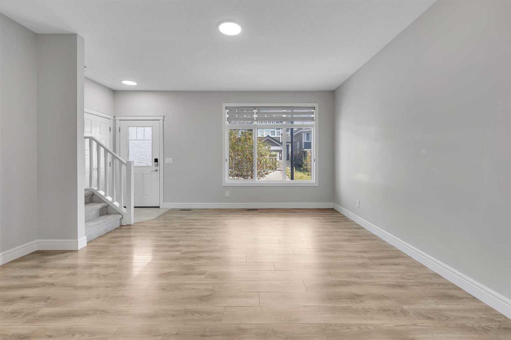 The main floor is designed with family living in mind. A generous living room provides the perfect place to unwind, while the dining area includes a built-in desk—an ideal spot for kids to finish homework or for a convenient home office setup.