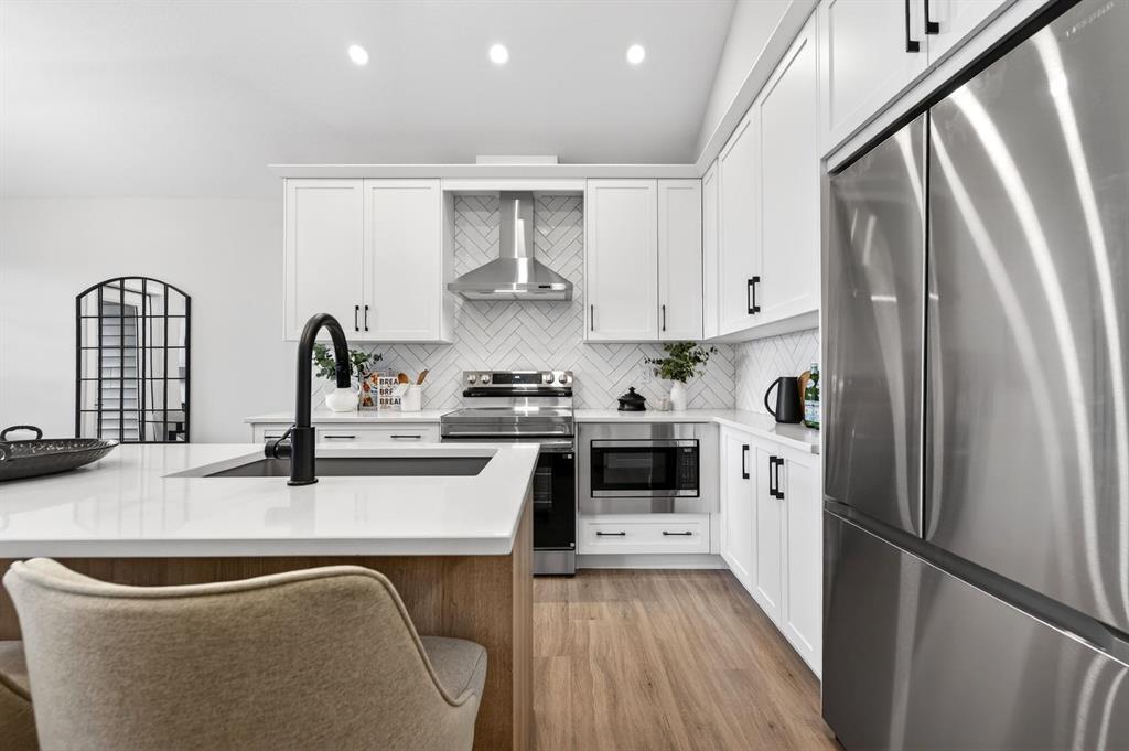 Welcome to 2242 Bayview Drive, a gorgeous 1500+ Sq Ft 3-bedroom 2.5 bathroom townhome with attached garage and no condo fees! The main level features a unique design with two bedrooms and a full bathroom, perfect for family members or guests, and direct access from the attached double garage. Upstairs, you’ll be impressed by soaring vaulted ceilings and a bright, open-concept layout that seamlessly connects the kitchen, living, and dining areas. The well-appointed kitchen showcases quartz countertops, stainless steel appliances, and a large central island, making it ideal for entertaining. The spacious primary bedroom includes a walk-in closet and a private en-suite bathroom with dual sinks and an oversized shower. Enjoy outdoor living with a full-width upper patio off the primary bedroom, plus an additional balcony off the dining room, perfect for relaxing or hosting guests. Complementing the upper level is a convenient laundry area and a powder room. The unfinished basement features 9’ ceilings and provides a blank canvas ready for your personal design ideas—a rare opportunity combining functionality, modern finishes, and exceptional value, all without condo fees. Bayview is a beautiful community with parks, benches and pathways that meander throughout the community and along the canals. Kids and adults alike will enjoy the outdoor basketball nets, gym, amphitheatre and tennis courts that will convert into a skating rink in the winter. Come and see all the amenities that Bayview has to offer for yourself! Area size was calculated by applying the RMS to the builder's blueprints