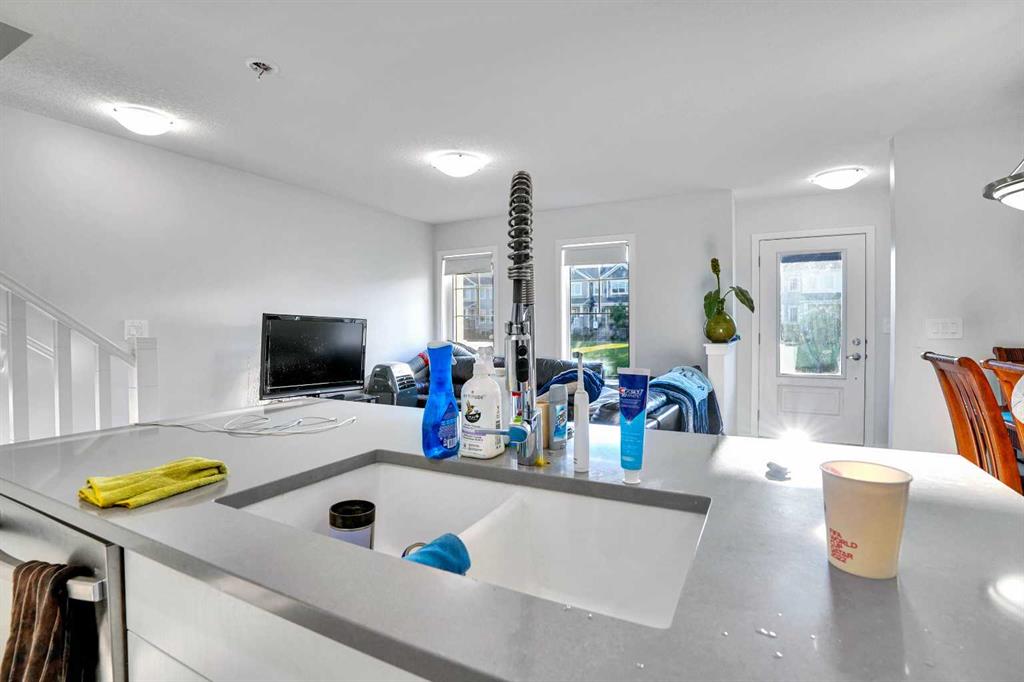 NO CONDO FEES – Discover exceptional value and stylish living at 216 Windbury Lane SW, a beautifully upgraded 3-bedroom, 2.5-bath townhome nestled in the heart of South Windsong, Airdrie. Perfectly positioned directly across from a park and scenic walking paths, this home offers the ideal blend of comfort, location, and modern design—with zero condo fees. Step into a bright and inviting open-concept main floor featuring luxury vinyl plank flooring, knock-down ceilings, and an abundance of natural light. The designer kitchen is the true showpiece, showcasing sleek quartz countertops, stainless steel appliances, upgraded cabinetry, and a large central island with bar seating, making it perfect for hosting or enjoying casual family meals. Upstairs, the spacious primary suite offers a tranquil retreat with a luxurious tiled ensuite shower, while two additional bedrooms provide ample space for kids, guests, or a home office. Both bathrooms are finished with high-end tilework and modern fixtures for a spa-like feel. Enjoy the convenience of an attached garage, a private driveway, and a fully landscaped exterior—all just minutes from top-rated schools, shopping, and quick access to Deerfoot Trail, CrossIron Mills, and North Calgary. Whether you're a first-time buyer, a growing family, or looking to downsize without sacrificing style, this move-in-ready gem delivers the perfect balance of function and flair—all with no condo fees. Don't miss this rare opportunity!
