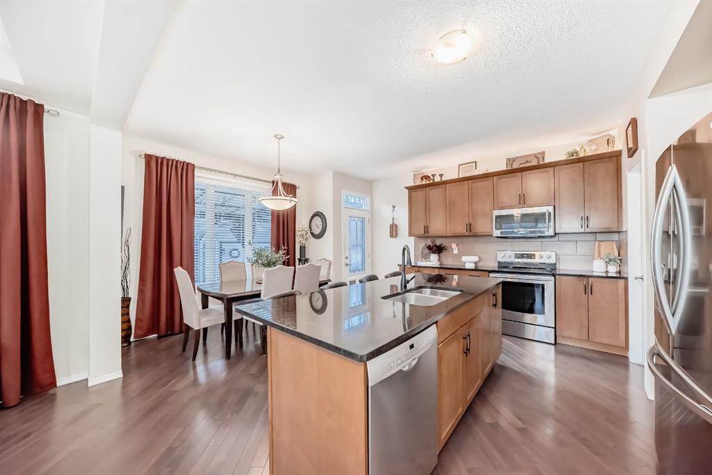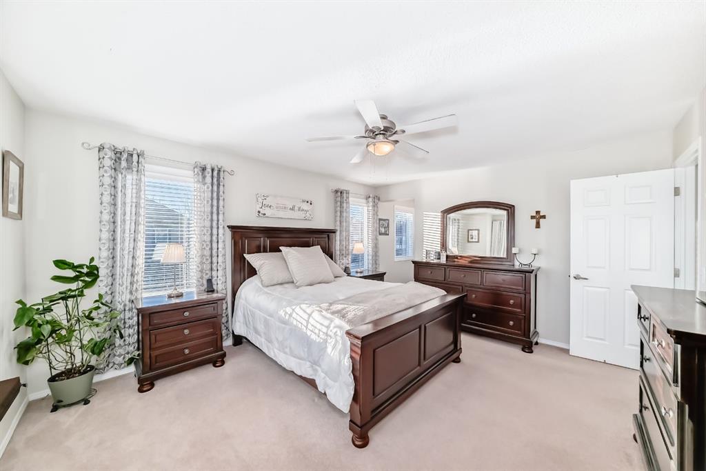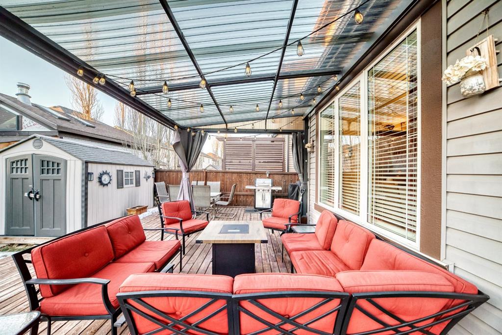 **OPEN HOUSE JAN 18 2-4PM** Situated on a sun-filled, SW facing corner lot in the desirable community of Windsong, this exceptionally well-maintained home offers outstanding curb appeal and 1952 sq ft of thoughtfully designed living space, ideal for families. From the moment you arrive, pride of ownership is evident, complemented by lush landscaping with numerous established perennials that enhance the home’s curb appeal and outdoor charm. Upon entry, you are welcomed by a bright, open foyer featuring a stylish wallpaper accent wall and an abundance of natural light. Just off the entrance is a main floor office with a pleasant view of the streets—perfect for working from home. French doors provide privacy when needed while still allowing light to flow through the space, creating a functional yet elegant work environment. The open-concept main floor is highlighted by 9’ ceilings and diagonally laid hardwood flooring, offering both warmth and visual appeal. The living room is bright and inviting, featuring multiple windows, charming built-in bench seating overlooking the street, and in-ceiling speakers for an enhanced entertainment experience. The space is anchored by a beautiful fireplace with a classic mantle and tile surround, making it the perfect gathering spot for family and guests. The adjacent spacious dining area easily accommodates a large table, ideal for everyday meals and entertaining. The kitchen is both stylish and highly functional, showcasing rich espresso cabinetry, granite countertops, and SS appliances. A large central island with seating provides ample prep space and a casual dining option, while the pantry ensures plenty of storage for a busy household. Upstairs, the home offers 4 generously sized bedrooms. The primary retreat is spacious and inviting, complete with a dedicated seating area, walk-in closet, and a 4pc ensuite. Three additional large bedrooms share a well-appointed 4pc main bathroom, and a convenient upper-level laundry room with countertop and built-in shelving adds everyday ease. The SW facing backyard is a true highlight, beautifully landscaped with numerous perennials and designed for both relaxation and entertaining. Enjoy a large ground-level deck off the kitchen, a gazebo complete with lighting and sun shades, and a second designated dining area for outdoor meals. Two gas lines are available—perfect for a BBQ and a fire table. The yard also includes a storage shed, gated access, and receives sunlight throughout the day. The unfinished basement provides excellent future potential, featuring a bathroom rough-in and ample space to add additional bedrooms, a recreation room, or a home gym if desired. Completing the property is a double attached garage, equipped with upper cabinets and shelving for excellent storage and organization. Ideally located close to Windsong Heights School (K-9), Chinook Winds Park, Splash park, and pathways, this home offers the perfect blend of location, functionality, and lifestyle.