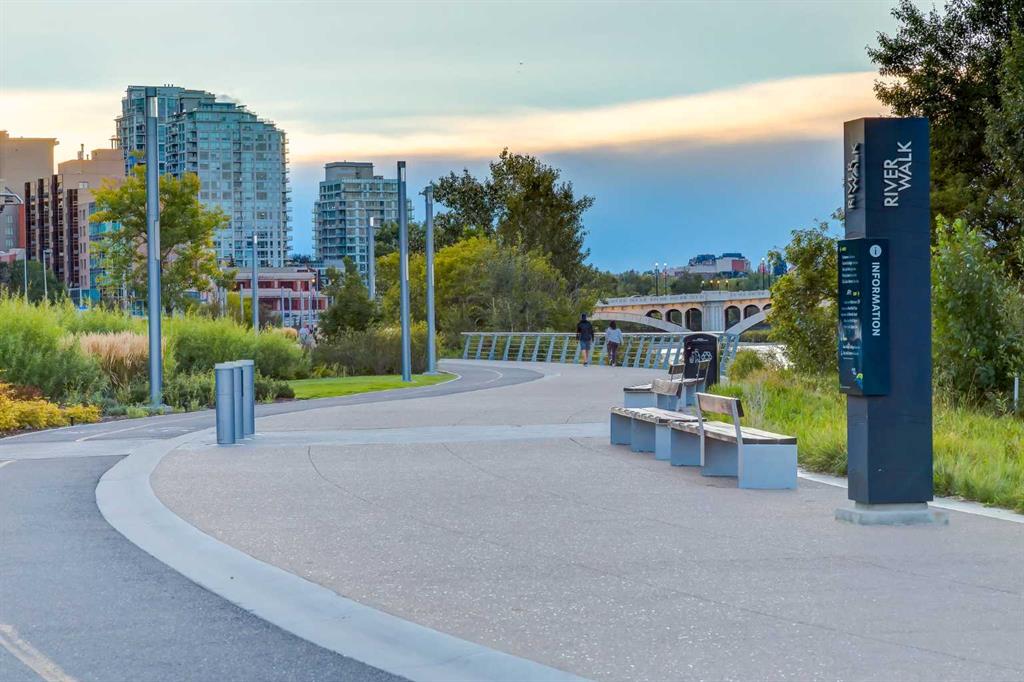 WELCOME to this AIR-CONDITIONED and FULLY FURNISHED 666.20 Sq Ft APARTMENT in the RIVERFRONT POINTE building with 2 Bedrooms, 1 Full Bathroom, 2 TITLED UNDERGROUND PARKING spots, including LOW Condo Fees, and an EAST-Facing Balcony overlooking the BOW RIVER in EAST VILLAGE!!! Entering this IMMACULATE unit with the OPEN-CONCEPT Floor plan, including 9' Ceilings, NEUTRAL colours, and MASSIVE windows allowing NATURAL Light throughout, shows off the CHARM you can call your own!! The Closet and Stacking Laundry are CONVENIENT for ACCESS and STORAGE by the front door. The GOOD-SIZED 2nd Bedroom will also convert to a DEN, a MUSIC room, or a PRIVATE Yoga room. RELAX in the Tiled 4 pc Bathroom while SOAKING in the tub after a long day to REJUVENATE yourself. The Primary Bedroom is a RESTFUL area to sleep, and also includes looking out the window at the CITY SKYLINE. This SLEEK Kitchen is the 'HEART of the HOME' and offers Wood Cabinetry, SS Appliances, GRANITE countertops, including the Breakfast Bar, and a COZY area for Dining. The Living room is GREAT for ENTERTAINING when FAMILY or FRIENDS come over, or having a QUIET time reading a book on the couch. There is a door to the Balcony that has PICTURESQUE VIEWS of the City including ST. PATRICK'S ISLAND, CENTRE STREET BRIDGE, SIEN LOK PARK, and RECONCILIATION BRIDGE!! Imagine sitting out on the balcony ENJOYING your morning coffee, using the BBQ when GUESTS come over to share a meal, or PEACEFUL star-gazing at night. The unit can be purchased FULLY FURNISHED at no extra cost -ideal for TURNKEY living or LONGTERM RENTALS. There are 2 TITLED Parking Stalls in the HEATED GARAGE, and the building offers a FITNESS CENTRE in Tower C, BIKE STORAGE, OUTDOOR PATIO, VISITOR PARKING, and a CONCIERGE with 24-hour SECURITY. This PRIME LOCATION is close to a Dog Park, Trendy Restaurants, Boutique Coffee Shops, Craft Breweries, Superstore, Confluence Historic Site & Parkland, Olympic Plaza, the Central Library, the University of Calgary Satellite Campus, the Saddledome, and the NEW arena. Whether you take in the NIGHT LIFE in the NEW Entertainment District, Stampede, or go to the YMCA, Fort Calgary, Chinatown, Eau Claire Market, Art Commons, CORE Shopping Centre, +15 Bridge access, Olympic Plaza, or the Studio Bell, you will EXPERIENCE the BEST that Calgary has to offer. It is EASY to get around with the City Transit, C-Train, or get your EXERCISE by WALKING/RUNNING/BIKE RIDING the Bow River Pathways. There are many Green spaces to DISCOVER INNER CITY BEAUTY, including the BIRDS and AQUATIC wildlife near the water. Communities around are Bridgeland and Crescent Heights with AMENITIES that have QUAINT shops, and more SHOPPING. It's all about LOCATION, and LIFESTYLE - this HOME is DESIRABLE with a QUICK COMMUTE to downtown. Book your showing TODAY!!!