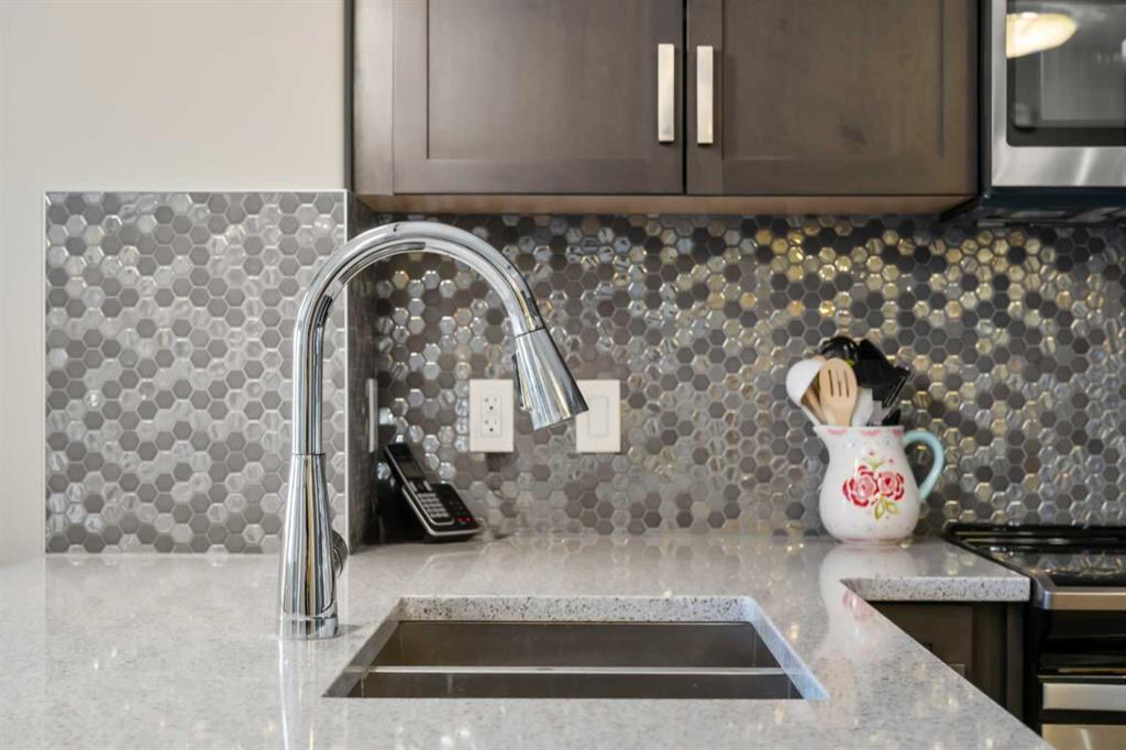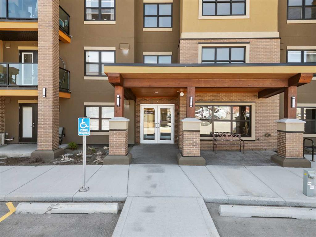 Welcome to The Chateaux! Airdrie's premier 55+ condo building in the wonderful community of Kings Heights known for its sophistication, exceptional pride of ownership and unbeatable access to nearby amenities. Upon entering this unit, you'll be impressed by the abundance of natural light, enhanced by its south-facing exposure. You're greeted by beautiful tile flooring that leads into a welcoming front entrance, where you'll find a spacious coat closet with built-in shelves, perfect for storing coats, keys and shoes. To your right is the kitchen, you will love not only the generous counter space but also the ample cabinetry this layout offers. The kitchen features granite countertops, a large sink, a lazy Susan in the corner cabinet, a garburator and a counter overhang for bar stool seating, ideal for casual meals. Stainless steel appliances and a well-appointed pantry with pull-out drawers complete this thoughtfully designed space. Moving into the living room, enjoy a spacious layout complemented by a beautiful custom California Closets media centre that is perfect for your TV, artwork and storage needs. Stay cool in the summer with a wall-mounted A/C UNIT! Your southwest-facing balcony offers year-round afternoon sun, making it the perfect place to enjoy your morning coffee, tea or an evening drink. This balcony was upgraded at the time of construction with glass panels and a gate, offering convenient direct access to the landscaped common areas, especially great for pet owners. The primary bedroom is a dream, with a large south-facing window and a spacious walk-through closet that leads into your ensuite bathroom. The ensuite features a walk-in shower with a built-in seat and elegant glass doors. The second bedroom is impressively sized and bright with custom built-in California Closet organizers that provide exceptional storage and organization. A second full bathroom is located just outside this room, complete with a beautiful vanity and a large bathtub. In-suite laundry is neatly tucked into a dedicated closet with room for storage and laundry supplies. This apartment also features a versatile den to the left of the front door that is ideal for a home office, additional storage or exercise space. For parking, enjoy the convenience of a titled underground stall located just steps from the elevator. In front of your stall, you’ll find a large, secure storage locker. Plus, there’s ample outdoor visitor parking for your guests. The Chateaux features a beautifully landscaped courtyard with a gas fireplace, and an amenity room available for private bookings where residents regularly gather here for social events and happy hours. There's also a secure underground workshop for woodworking enthusiasts. Located in Kings Heights, you’re within walking distance to Save-On-Food, Shoppers Drug Mart, banks, salons, restaurants and more meeting all your grocery, shopping and healthcare needs. Call for a private viewing today!