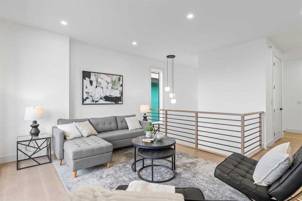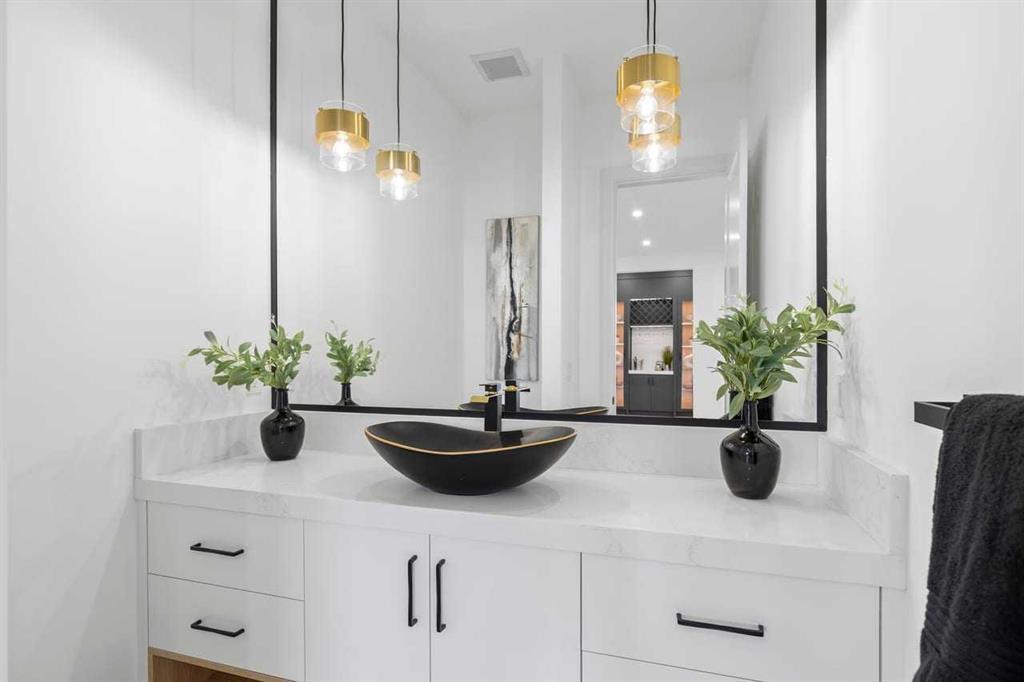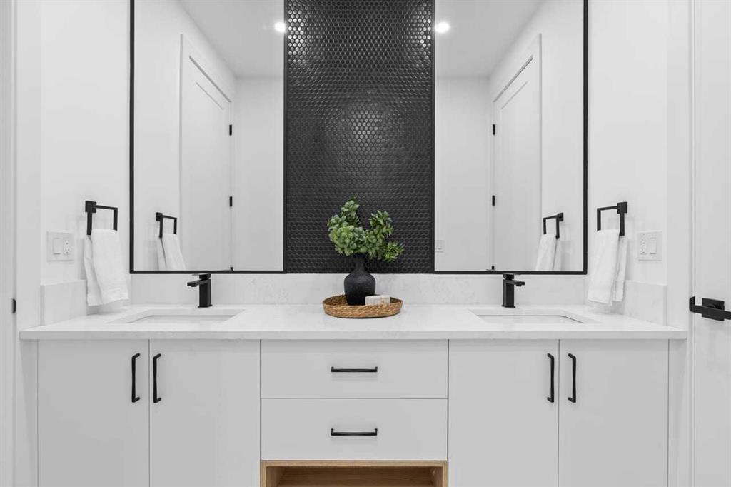 Set within the prestigious community of Patterson Heights – The Point - this exceptional luxury residence offers over 5,000 sq. ft. of elevated living designed for comfort and functionality. From the moment you arrive, the home makes a statement with a grand entryway highlighted by a floor-to-ceiling custom closet. Just off the entrance, a well-appointed mudroom features a walk-in closet and a striking full-height wall unit, providing direct access to the oversized double garage. The garage is fully outfitted with EV charging outlets, a gas heater rough-in, and hot and cold water taps. Completing this level is a full bathroom with quartz countertops and a floor-to-ceiling glass shower. The main living space is defined by 10-foot ceilings and wide vinyl plank flooring, creating a clean, modern flow throughout. The living room offers warmth and style with a custom wall unit and ambient LED lighting, while the dedicated bar area, complete with a bar fridge, is ideal for hosting. A private, light-filled gym with recessed lighting, floating shelving, and generous space for equipment. A striking open-riser staircase and a private elevator connect all 3 levels and lead to the stunning 2nd floor. Here, you’ll find a bright home office overlooking a large window, a sleek powder room, and a refined dining area anchored by a built-in LED-lit wall feature. Glass sliding doors open to a large East facing balcony, while the family room impresses with a coffered ceiling, art-block feature wall, and gas fireplace. Additional sliding doors lead to a fully landscaped backyard complemented by a composite rear deck with a gas line, backing onto peaceful green space, where nature and wildlife create a serene setting. The chef-inspired kitchen anchors the home with a quartz waterfall island, hidden cabinetry, two-tone modern cabinets, and high-end stainless steel appliances. A fully equipped spice kitchen allows for effortless entertaining, while a modern breakfast nook with a statement light fixture completes the space. The upper level is a private sanctuary, beginning with a grand primary suite set behind French doors. Enjoy a private balcony overlooking green space, a juice bar, in-floor heated ensuite, and a spa-style bathroom featuring a freestanding tub and a glass-enclosed steam shower with rainfall head and granite seating. Two additional bedrooms share a Jack & Jill bathroom with quartz countertops, while a fourth bedroom offers its own full bath and walk-in closet. A thoughtfully finished laundry room enhances everyday convenience. A bonus room with downtown views and an additional wall unit completes the upper level, which continues the home’s open feel with 9-foot ceilings throughout. Additional highlights: basement under-slab heating rough-in, a 75-gallon hot water tank, two high-efficiency furnaces, two central A/C units, and extensive built-in cabinetry. Don't miss the opportunity to own this exceptional luxury home. Book your private showing today!