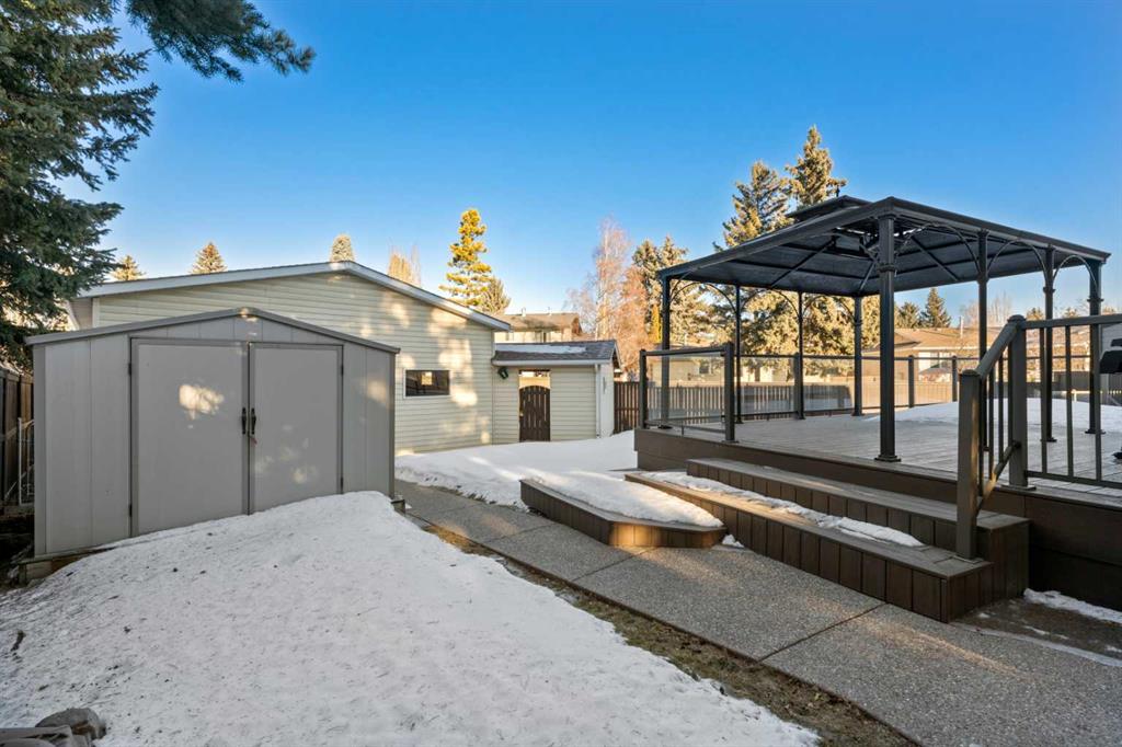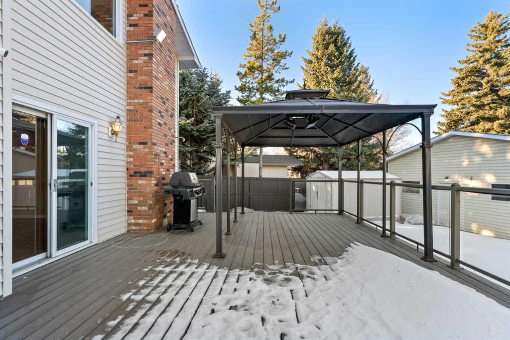 This beautifully maintained home is perfectly situated on a QUIET CUL-DE-SAC, just STEPS FROM FISH CREEK PARK, offering over 2,300sq ft of developed living space. From the moment you arrive, you will notice the pride of ownership and the warm inviting atmosphere throughout. You will discover how this home has been lovingly cared for throughout the years, including newer windows in the living room, dining room, and all upper bedrooms. The main floor features a sun filled living and dining area, updated kitchen with plenty of cabinetry, and sliding doors that open onto a spacious 31’ x 17’ back deck - ideal for morning coffee or relaxed evening entertaining. The LARGE 8,191SQ FT LOT includes a COVERED BBQ area under the oversized gazebo, perfect for year-round grilling. Just a few steps down from the kitchen is the cozy family room, complete with a brick gas fireplace and patio doors leading directly to the backyard. Also, on this level, you’ll find the laundry area, a 3-piece bathroom, and a 5th bedroom or office. Upstairs there are 3 generous sized bedrooms, each with excellent closet space. The primary suite offers a 4-piece ensuite, while a bright main bathroom serves the additional bedrooms. The basement showcases a large recreation room, 5th bedroom and 3-piece bathroom and plenty of storage areas. Additional highlights of this home include an INSULATED OVERSIZED DOUBLE DETACHED GARAGE measuring 27.5’ x 25.4’ x 12 FEET HIGH with built-in cabinets, 2 ELECTRIC OVERHEAD GAZEBO HEATERS, NEW DURADEK, Cement Fire PIT on the lower deck, EXPOSED AGGREGATE PATHWAYS, AIR CONDITIONING and NEW HOT WATER TANK in 2023, DOG RUN, just to name a few. Families will love being just a short walk from both Prince of Wales and Saint Phillips Elementary schools, as well as the Parkland community hall. Residents also enjoy exclusive access to Park 96, a private park for Parkland homeowners, featuring a splash pad, tennis courts, disc, golf, playgrounds, skating rinks, and more. If you have been dreaming of a home that combines location, lifestyle and lasting value, this Parkland gem truly has it all! Book your private showing today.