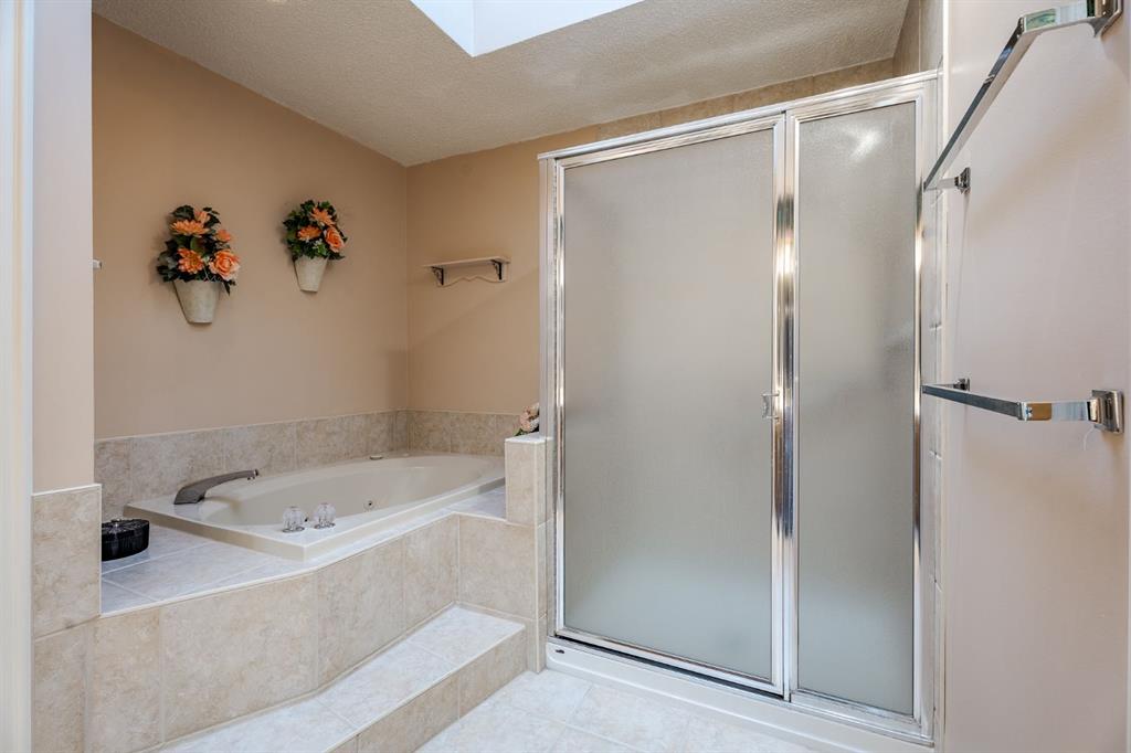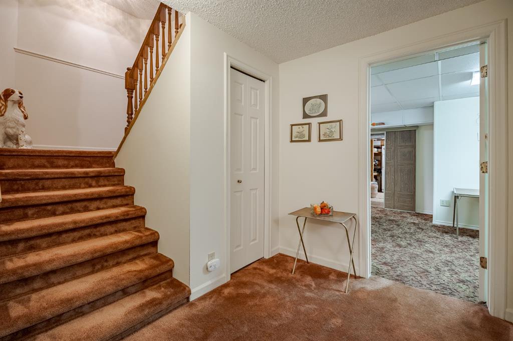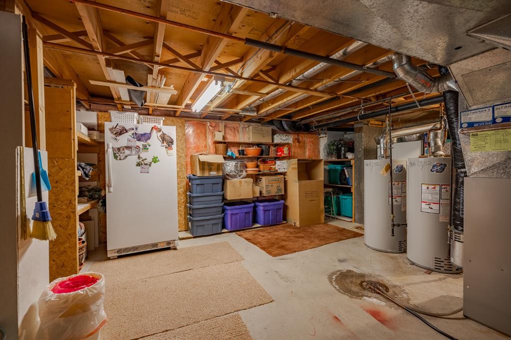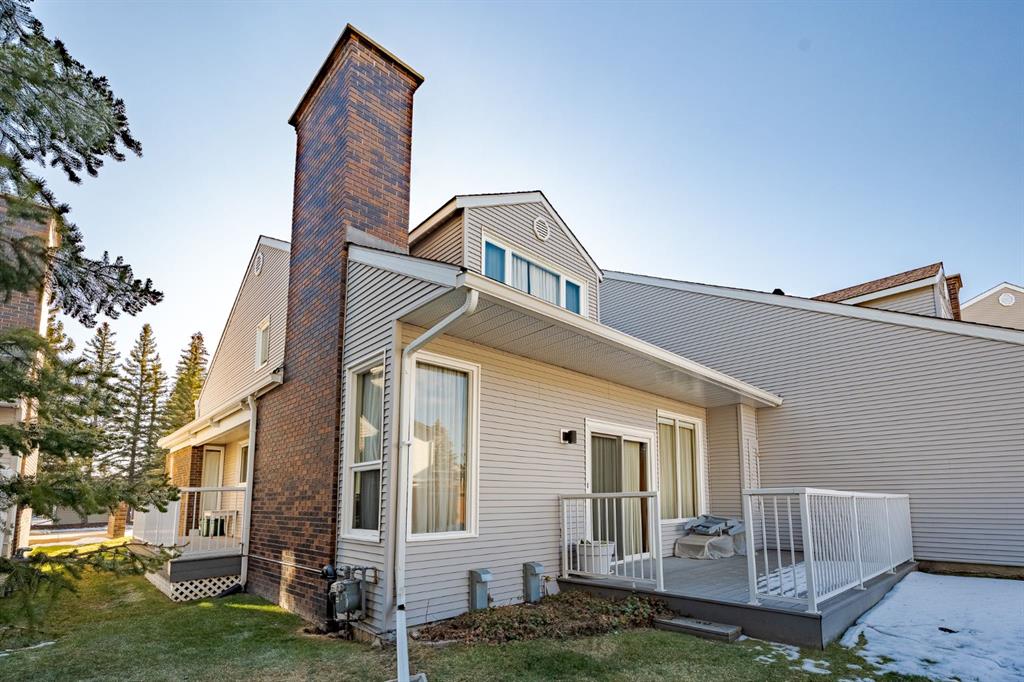Welcome to Woodridge Estates; ideally nestled alongside the parks and pathways of beautiful Fish Creek Park, this inviting two-storey semi-detached townhome offers over 1,960 sq. ft. of above-grade living space plus a fully developed lower level. You are promptly welcomed by a large foyer with gleaming parquet floors that adjoins a versatile office or flex room. The functional kitchen offers ample counter space for meal prep and entertaining, along with a bright breakfast nook that opens onto a deck—perfect for BBQing or enjoying your morning coffee. The kitchen also provides easy access to the formal dining room. Just a few steps down, the generous family room features a charming brick fireplace and access to a second deck, ideal for hosting family and friends. A two piece bathroom completes this level. Upstairs, the expansive primary bedroom includes a sitting area, walk-in closet, and a five-piece ensuite with jetted tub. The second bedroom is generously sized. A four-piece main bath and convenient upper-level laundry complete this floor. The developed lower level offers a games area, additional flex space, and a three-piece bathroom, along with a large storage and utility room. The double attached garage is drywalled and insulated for added comfort. This home has excellent bones and offers a fantastic opportunity for updates to suit your style. Located in a quiet, upscale townhome community, it provides easy access to schools, transit, Anderson Road, Stoney Trail, Fishcreek Park and all the amenities—making it a wonderful place to call home.