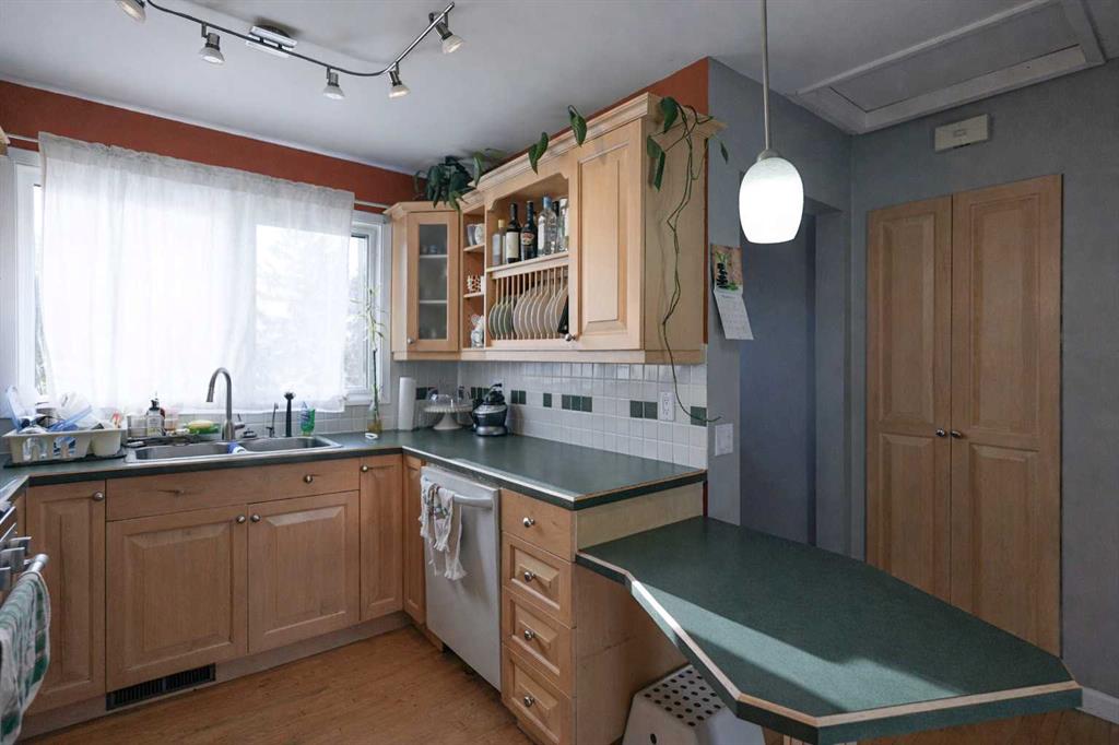 Open House: Jan 24th 1:00-4:00 pm.HUGE CORNER LOT | FUTURE BACKYARD SUITE DP APPROVED | WALKOUT BASEMENT | MOVE-IN READY| An exceptional opportunity to own a bright, updated 4-level split situated on a massive corner lot, featuring an illegal suite with a walkout basement. The expansive, south-west facing backyard feels like your own private, treed oasis—quiet, serene, and perfect for relaxing or future development. The main floor showcases beautiful oak hardwood flooring and oversized windows that flood the home with natural light. The spacious dining area features a large picture window, ideal for hosting family dinners. The well-appointed kitchen offers ample cabinetry and storage, under-cabinet lighting, a gas stove, dishwasher, garburator, a convenient desk area, a large pantry, and a picturesque view from the window above the double sink. Main-floor laundry adds everyday convenience. Upstairs, you’ll find hardwood floors throughout the generous primary bedroom and another bedroom. The third level features two more bright bedrooms with large windows, cozy carpeting, and a 3-piece bathroom. The fourth level completes the home with a second laundry room, a 4-piece bathroom, utility room, a fifth bedroom with glass pocket sliding doors, and a spacious second kitchen with living/dining area that opens directly to the backyard via a walkout—ideal for extended family or rental potential. Outside, the large, private south west-facing backyard is incredibly peaceful, where you can enjoy birdsong and nature. Parking is abundant with a detached double garage, additional parking in front of the garage, and street parking. Alternatively, take advantage of the DP-approved backyard suite, with approved drawings available in the supplements. Located just 5 minutes walking to Dalhousie C-Train Station, shopping plaza, schools, Northland Village Mall, parks, and scenic walking trails—this home offers outstanding convenience, flexibility, and long-term value.